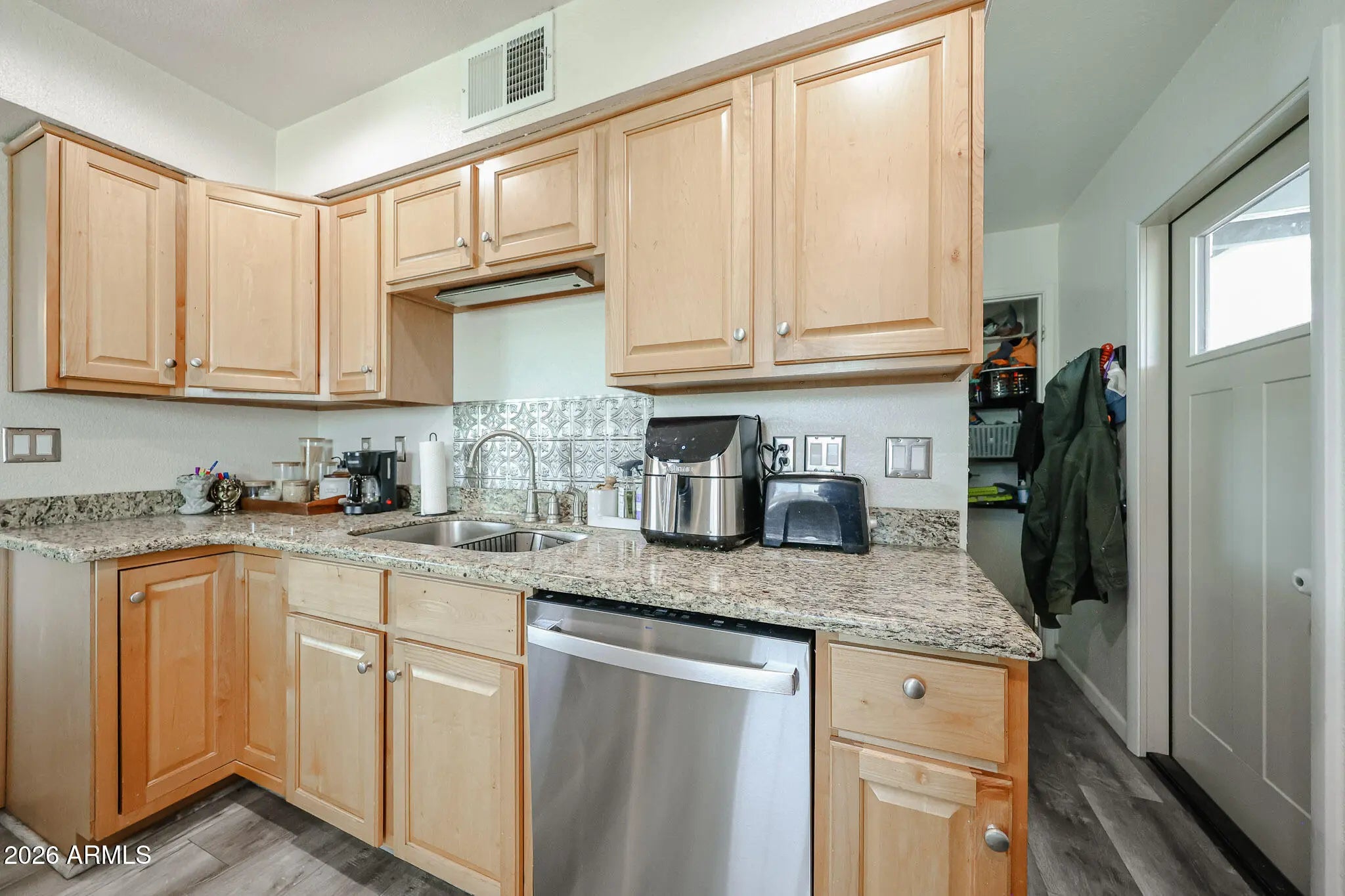 A THREE BEDROOM HOME FOR UNDER $400,000! This three-bedroom Mesa home has all of the important major updates that otherwise could hit a new owner hard: the roof was replaced in 2021, dual-pane windows were installed in 2023 and a new air conditioning unit was installed in 2025! The kitchen was renovated in 2021 with granite countertops and maple cabinets and new flooring was installed. The refrigerator, dishwasher and washer/dryer all are four years old or newer. Tuff Shed Pro Series shed with interior/exterior electric in back yard offers extra storage. McAfee Heights is a non-HOA community located close to schools, shopping and a public park.