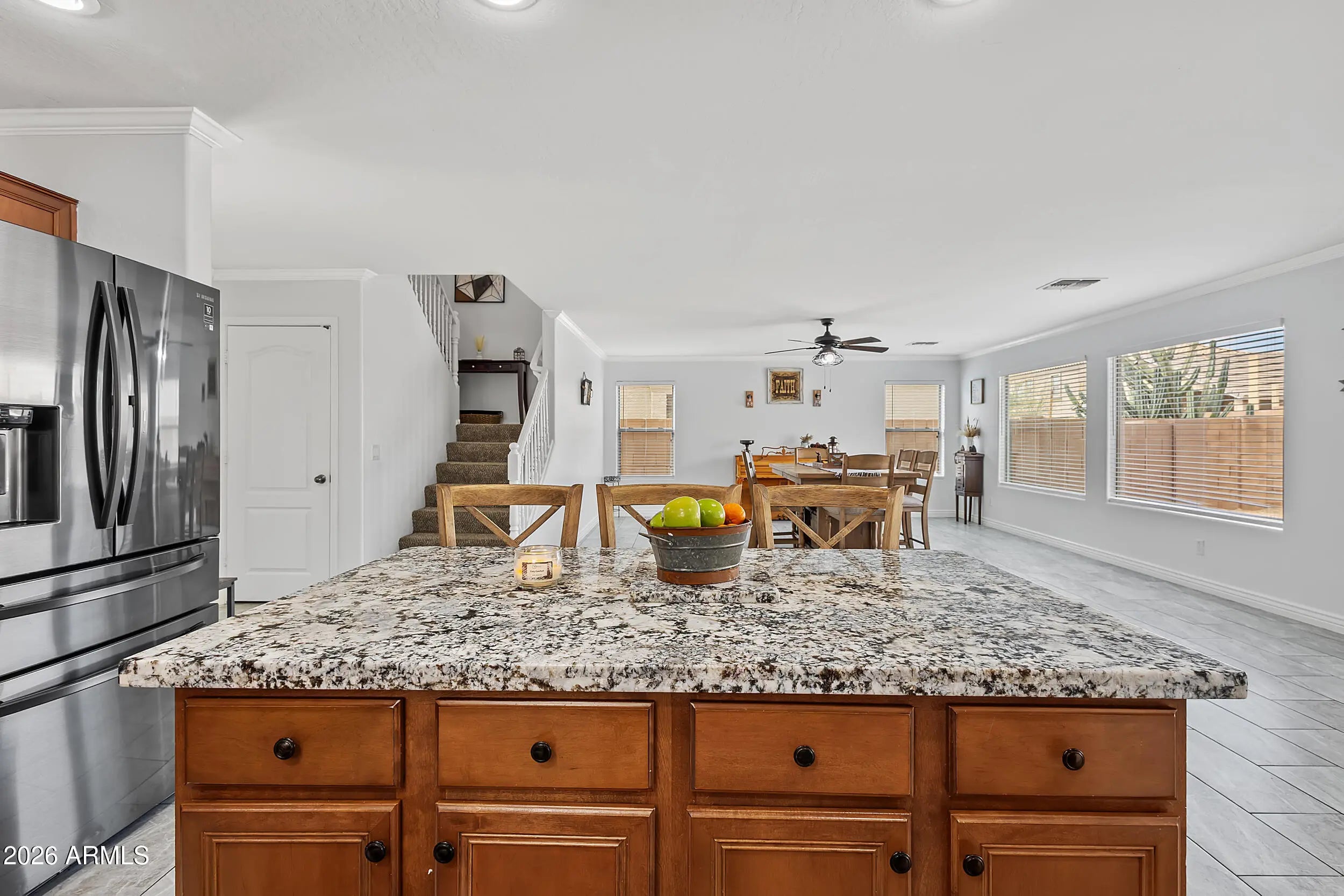 (Seller may offer a credit toward a temporary rate buydown with an acceptable offer; buyer to verify terms with their lender) Located in the desirable Johnson Ranch community in San Tan Valley, this beautifully updated two-story home offers space, comfort, and flexibility. The home features 3 bedrooms, 2.5 bathrooms, a spacious loft, and a versatile den that can easily be converted into a fourth bedroom. The open floor plan showcases soaring vaulted ceilings and a bright living space that flows into the kitchen, making it perfect for entertaining. The interior has been nicely updated, and the home features brand new interior and exterior paint, designer tile flooring, newer carpet, crown molding, upgraded baseboards, granite countertops, and updated kitchen appliances. Upstairs, you'll find generously sized bedrooms, plenty of storage, and a loft with its own private balcony. The large owner's suite offers vaulted ceilings, a separate shower and tub, and a spacious walk-in closet. The backyard provides a great space and an open canvas to create your dream backyard, and the home also enjoys a desirable north-south exposure. Johnson Ranch is known for its excellent amenities, including multiple community pools and spas, parks, playgrounds, walking and biking trails, tennis and basketball courts, catch-and-release fishing ponds, and the popular Johnson Ranch Golf Club. Conveniently located near shopping, dining, schools, and everyday conveniences, this home offers both comfort and lifestyle in one of San Tan Valley's most established master-planned communities. Schedule your private showing today.