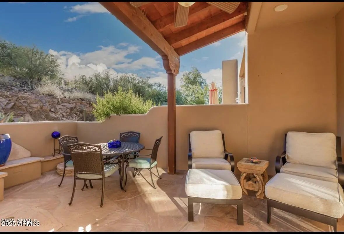 TIRED OF YOUR AVERAGE CONDO BOX TO RENT! Welcome to the Knolls at Cave Creek. This territorial styled casita home offers a great room floor plan. 2 bedrooms, 2 baths ,and an office nook. SPACE GALORE!! Updated kitchen with Kitchen Aid appliances and Samsung washer and dryer. 2 car garage with epoxy floor. Fabulous one of a kind yard with gated courtyard entry. Professionally landscaped terrace, built-in BBQ, bar seating, fireplace and flagstone patio. Situated on a corner lot near open space and community pool and spa. Located in the heart of the quaint town of Cave Creek. Walk to main street attractions and easy access to shopping, dining and trails. Minutes to Rancho Marana golf. Perfect full time paradise.