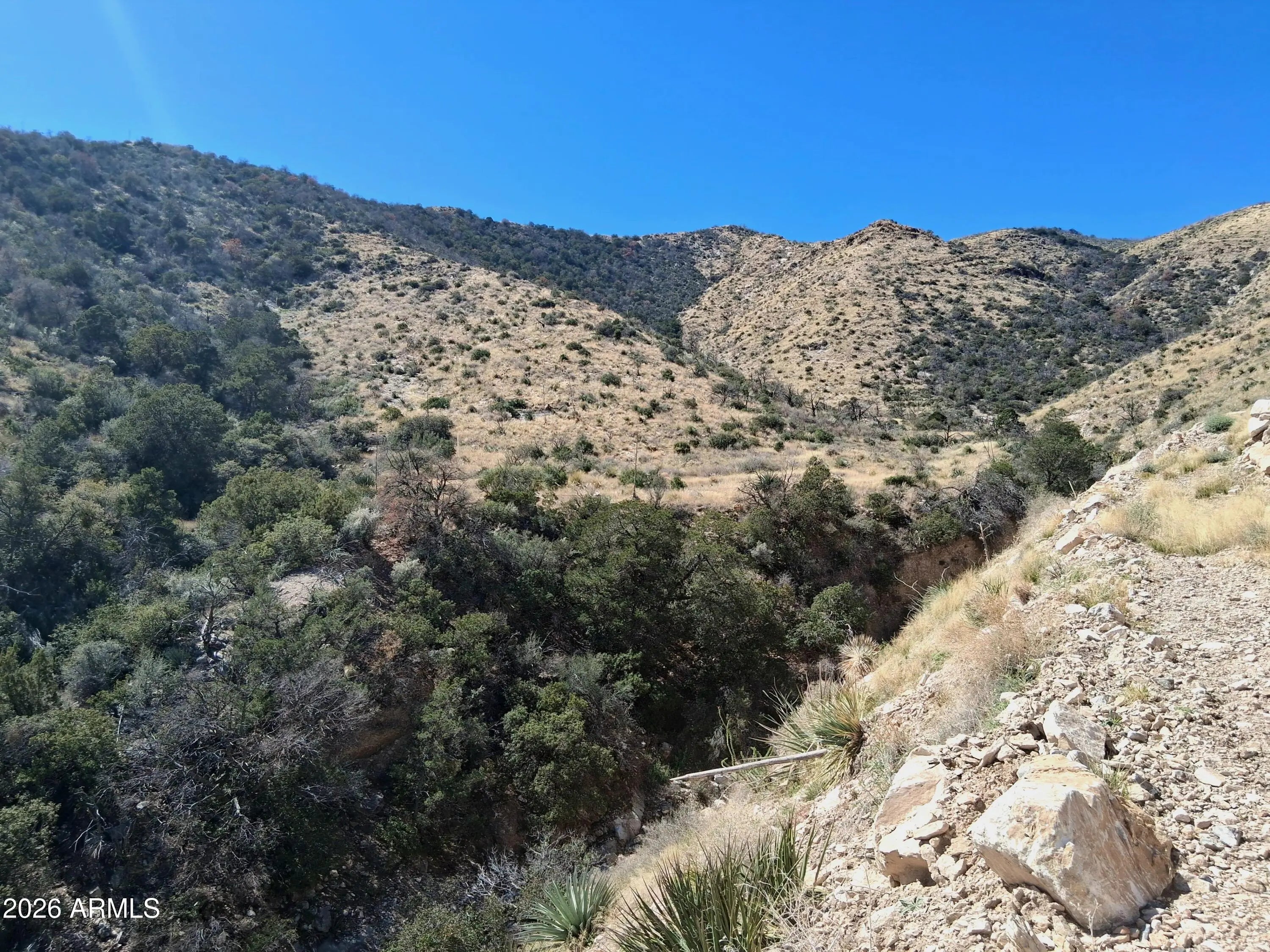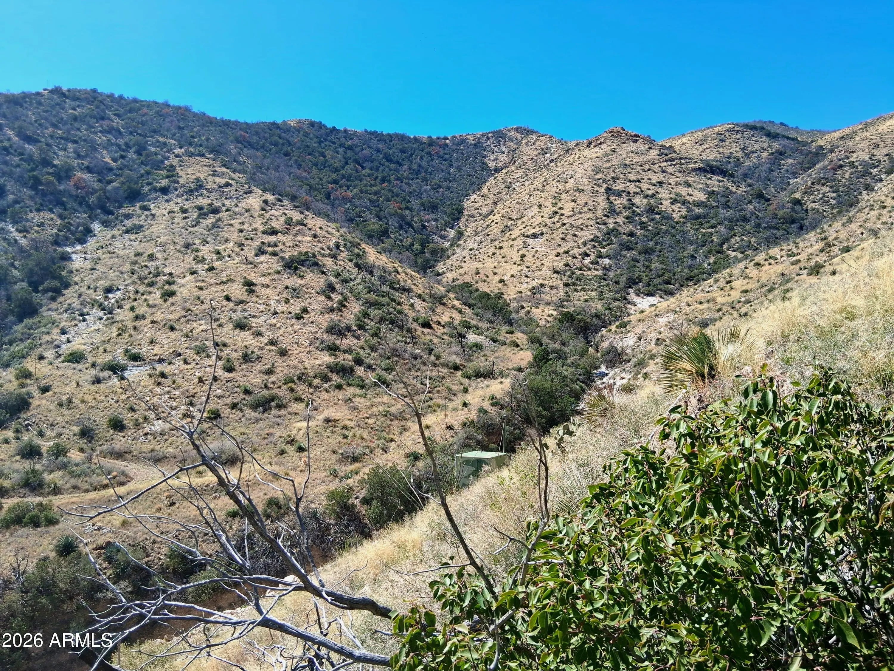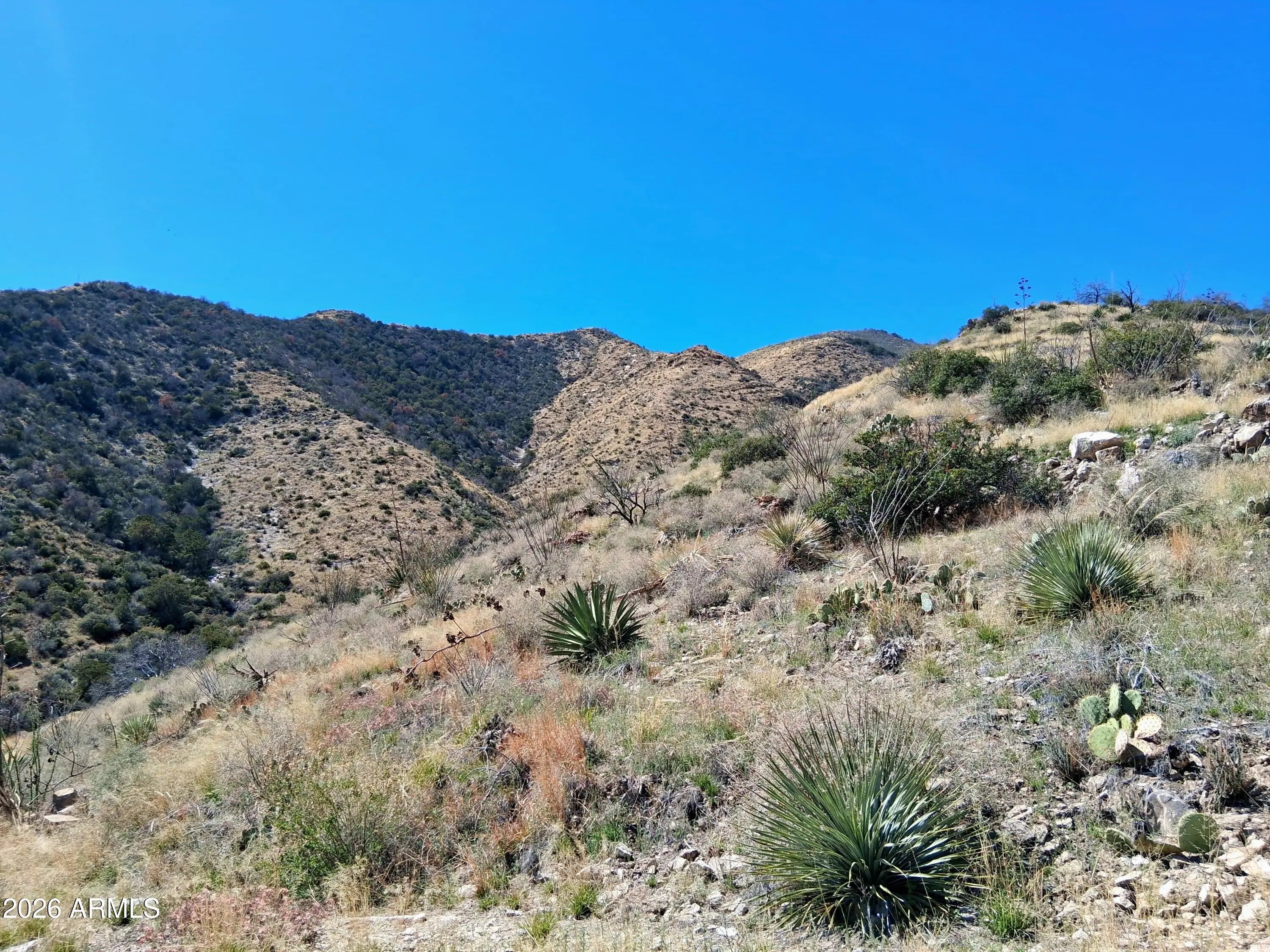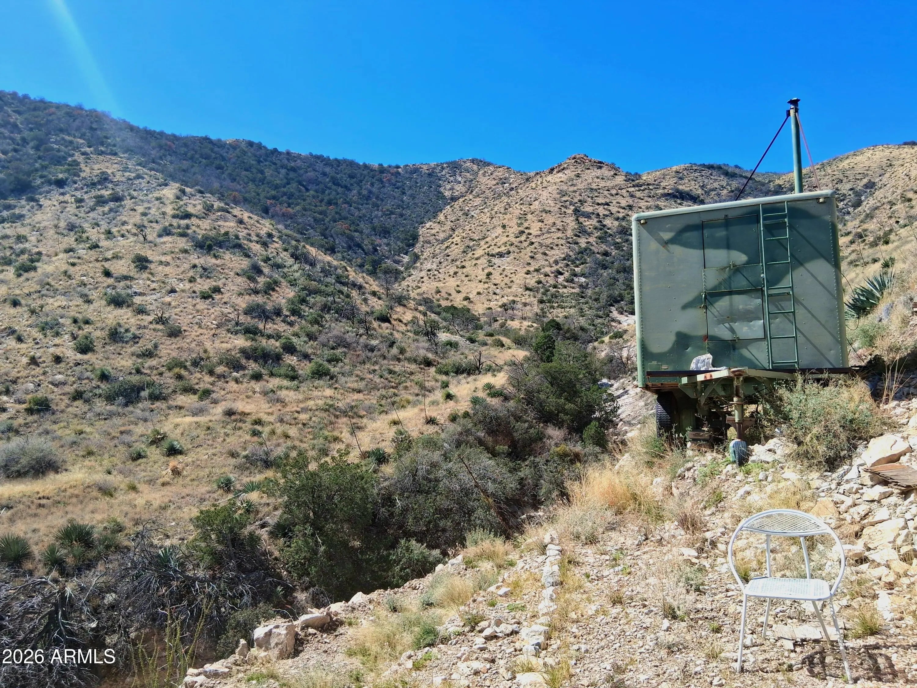 Here's your chance to own over 40-acres in the Cochise Stronghold that is completely enveloped on all sides by National Forest. Mineral rights and a patented mine claim convey with the sale. There is also a US Army trailer converted into a hunting cabin. Arizona hunting zone 32b. RU-4 zoning allows for the most versatile use: dig a well, run cattle, raise horses, build a house, or just use as your seasonal recreational getaway. The land itself is a dynamic and vast landscape that incorporates deep gullies, mountain faces and ridges, rich geology, a seasonal spring, and various exploratory mineshafts. One of the highest elevation private parcels in the county. Over 50 miles of visibility from the driveway. Very rugged terrain throughout but access easily with a 4x4 vehicle. Seller may carry