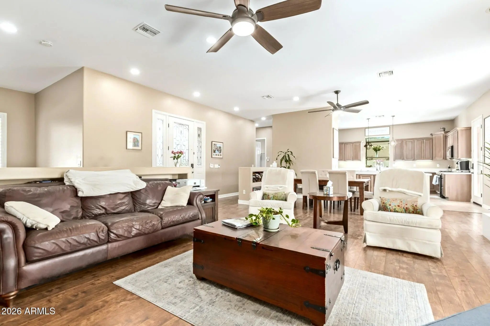 Exquisitely updated and truly move-in ready, this exceptional home is located in the desirable Camelback East neighborhood of Rancho Ventura. A rare Arcadia-area basement residence, it offers nearly 3,600 sq ft with 4 bedrooms, 3.5 baths, two primary suites, two spacious living areas, and 9+ ft ceilings throughout. The open floor plan is ideal for comfortable living and entertaining. The chef-inspired kitchen features gas cooking, quartz countertops, and abundant cabinetry. Step outside to a resort-style backyard with an oversized covered patio, outdoor kitchen with built-in gas grill, saltwater pool and spa with swim jets, putting green, and beautifully designed low-maintenance turf. Welcome Home!