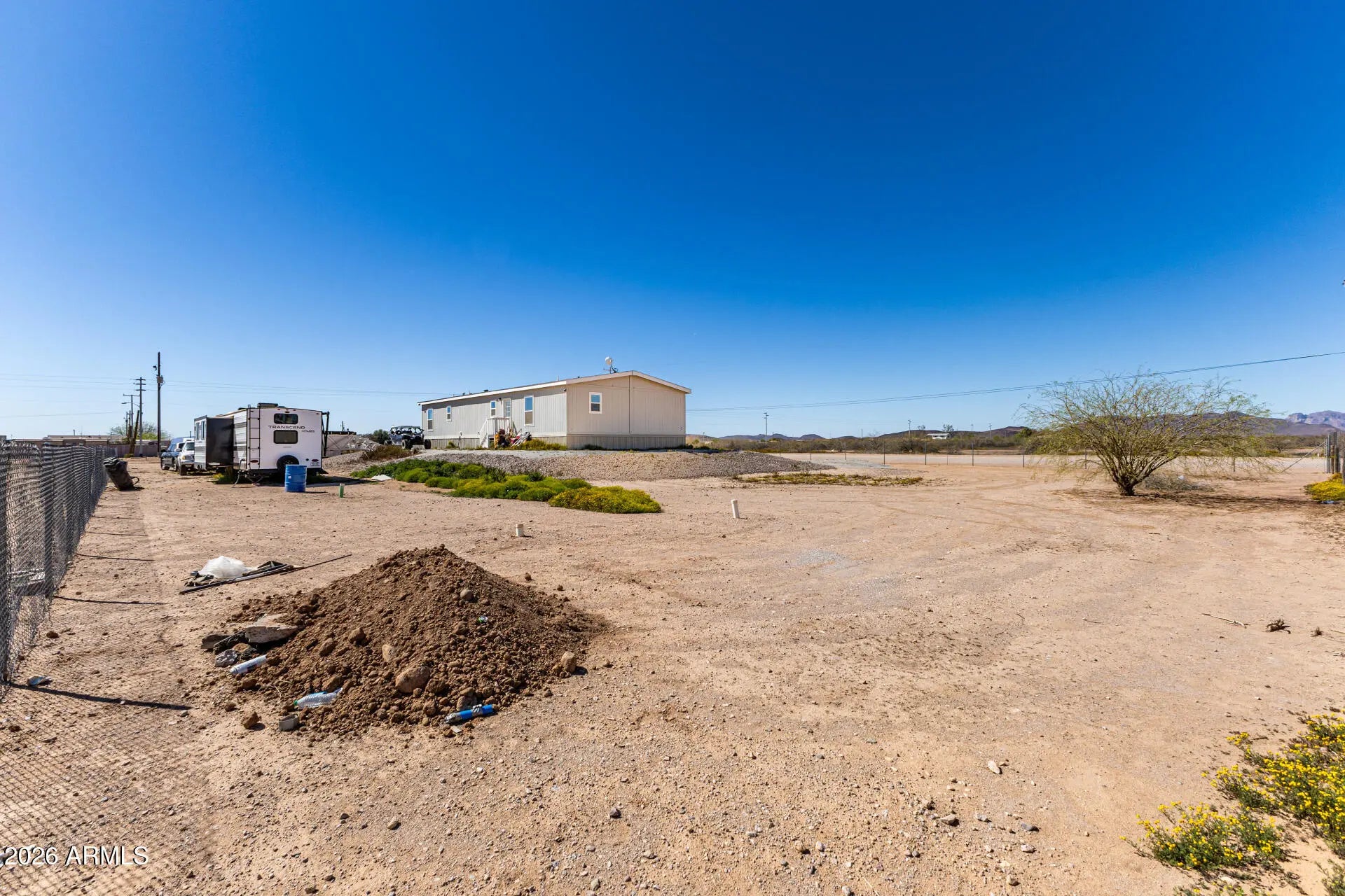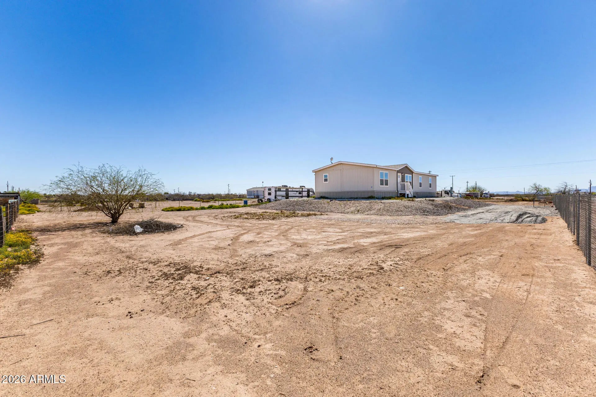 Imagine ending your day watching unbelievable Arizona sunsets stretch across wide open skies and mountain views right from your own yard. Set on just over an acre of fully fenced land with no HOA, this home offers the space, freedom, and peaceful country living many dream about. Inside, the thoughtfully designed layout features 3 bedrooms, 2 bathrooms, a dining area, and additional hallway linen storage for convenience. A versatile office or family room can easily serve as a fourth bedroom, hobby space, or home office. The kitchen is designed for gathering, with a large island, 42'', and a walk-in pantry. The spacious primary suite offers a relaxing retreat with a spa-like bathroom and walk-incloset. Outside, the acre-plus property provides room for RVs, trailers, toys, animals, or.... future additions. With wide-open space, stunning mountain views, and breathtaking sunsets, this property offers the kind of comfortable Arizona living that's becoming harder to find.