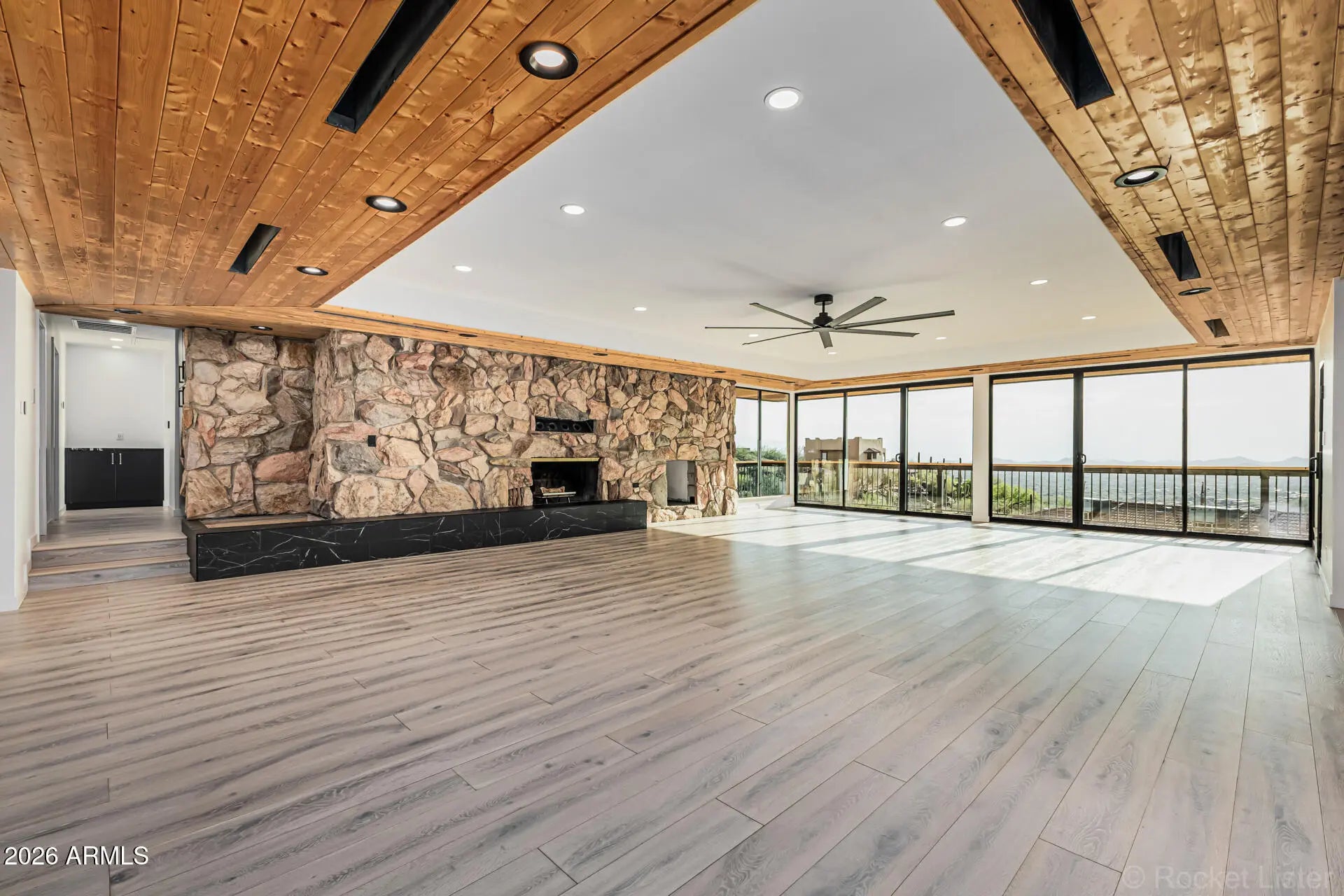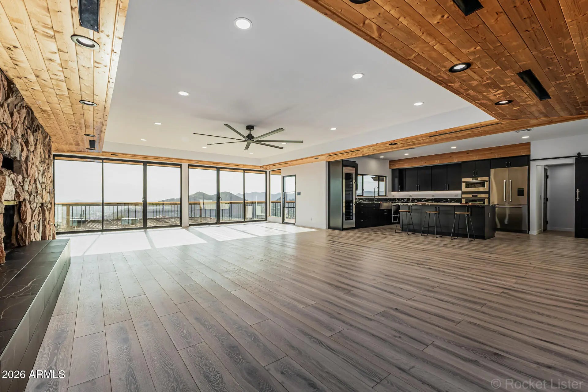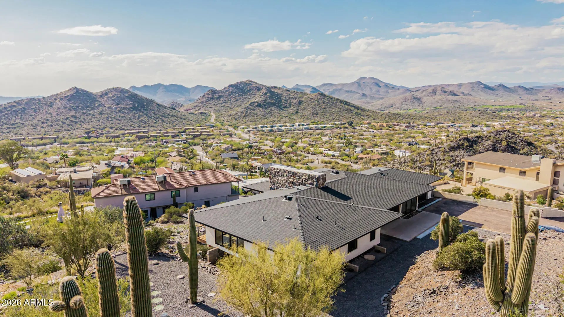 Perched on dramatic view piers high on Black Mountain in Cave Creek, this rare, fully remodeled Desert Contemporary retreat offers a true open-concept layout, panoramic 360° mountain vistas, expansive floor-to-ceiling windows protected by deep overhangs for energy efficiency. Seamless indoor-outdoor living designed to capture light, privacy, and breathtaking Arizona desert views from every angle. Gorgeous new designer kitchen features luxury Fisher & Paykel appliance suite, Namibia granite counters, and sommelier-level wine storage. Unique wine cellar in living area featuring wooden floors and custom LED lighting. Luxurious new bathrooms appointed with premium Japanese TOTO water-saving toilets that blend advanced technology with sleek, spa-inspired designs. Read on for more: NOTE: New outdoor decking, new driveway, and new exterior walls will be completed on this exceptional property by mid-April 2026. Home was fully reimagined with a design by Spry Architecture, completed in 2026, featuring beautiful hardwood and Italian tile throughout, high end designer finishes, new roof, two new HVAC units (plus one new mini-split system for garage), all new windows, nearly all-new plumbing and electrical. The clean, minimalist lines of this striking home accentuate the magnificent views from every room. Large glass sliders on both sides of the home help create a feeling of openness, allowing you to fully appreciate the peaceful, beautiful desert surroundings. Sit and relax on your private outside deck and take in truly awe-inspiring sunsets. The spacious two car garage with expansive views, glass coat epoxy floors, air conditioning, and LED light package is ideal for the car enthusiast or hobbyist. The home is perfectly located close to hiking trails on Black Mountain, as well as in nearby Spur Cross Ranch Conservation Area, ideal for those seeking outdoor adventure. Unique shopping and entertainment close by in Cave Creek and Carefree, both locations enhancing your unique desert living experience in this truly exceptional property.