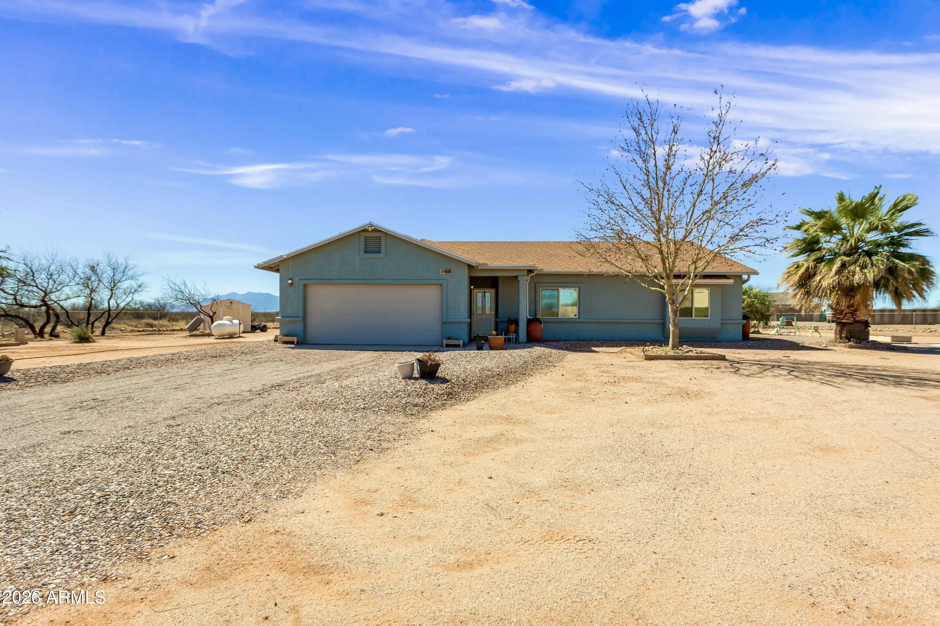 Welcome to simple country living, with breathtaking mountain views! This charming 3-bedroom, 2-bath home situated on a full acre offers the perfect blend of privacy, space, and the beauty of Southern Arizona. With plenty of room to spread out, this property is ideal for those who need space for RVs, recreational vehicles, trailers, or all your outdoor toys. Best of all, no HOA, giving you the freedom to truly enjoy your land. Conveniently located with close proximity to Ft Huachuca and many wonderful Southern Arizona destinations. You can enjoy both quiet country living and easy access to nearby amenities.