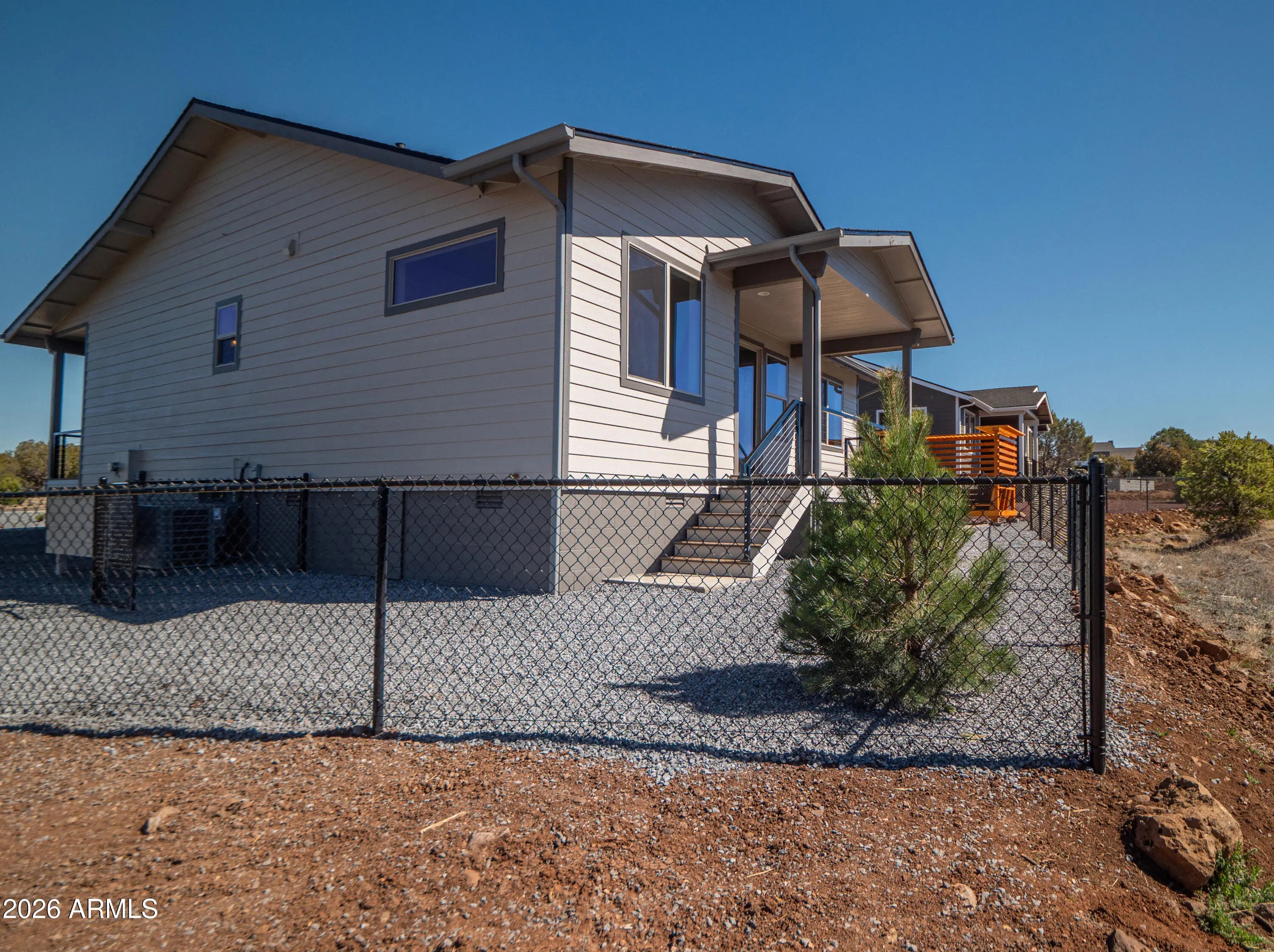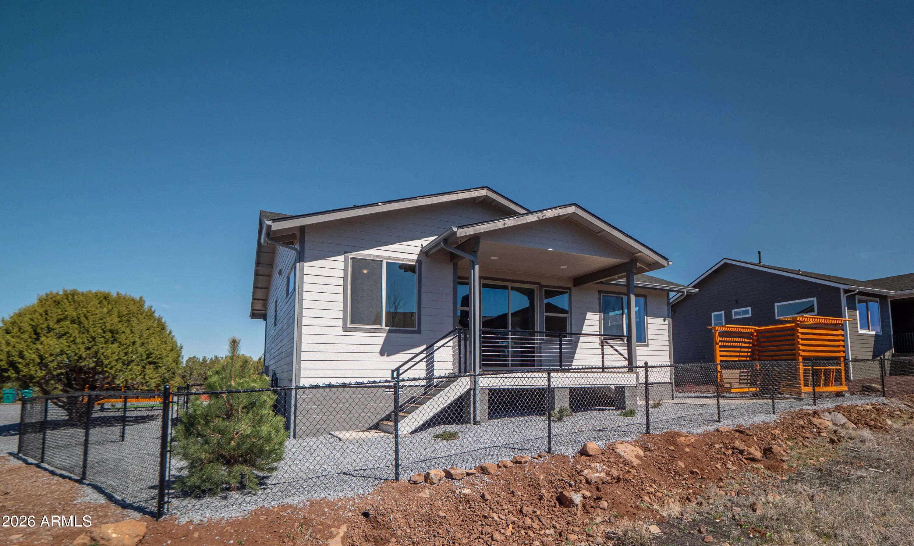 Welcome to this beautiful new construction home in the highly desirable Show Low Bluff neighborhood in Show Low. Thoughtfully designed with high-end finishes and modern mountain charm, this home offers comfort, style, and functionality throughout. Step inside through the impressive 8-foot front door into a spacious great room featuring a stunning tongue-and-groove (T&G) ceiling that adds warmth and character. The open living area flows seamlessly into the dining space, highlighted by pine wainscoting that brings a touch of rustic elegance. The home features a split floor plan, providing privacy between the primary suite and additional bedrooms. The kitchen comes fully equipped with brand-new stainless steel appliances, and the home includes a washer and dryer, making it truly move-in ready. Outdoor living is just as inviting with a Trex deck perfect for relaxing or entertaining while enjoying the mountain air. The property boasts an extended paver driveway, beautiful landscaping, and a charming gazebo, creating a welcoming outdoor retreat. The fully fenced backyard offers privacy and space for pets, gatherings, or peaceful evenings. Additional upgrades include stone accents on the exterior and a stylish cable railing system, giving the home a clean, modern mountain aesthetic. This exceptional property blends quality craftsmanship, thoughtful upgrades, and a prime location in one of Show Low's most sought-after neighborhoods.