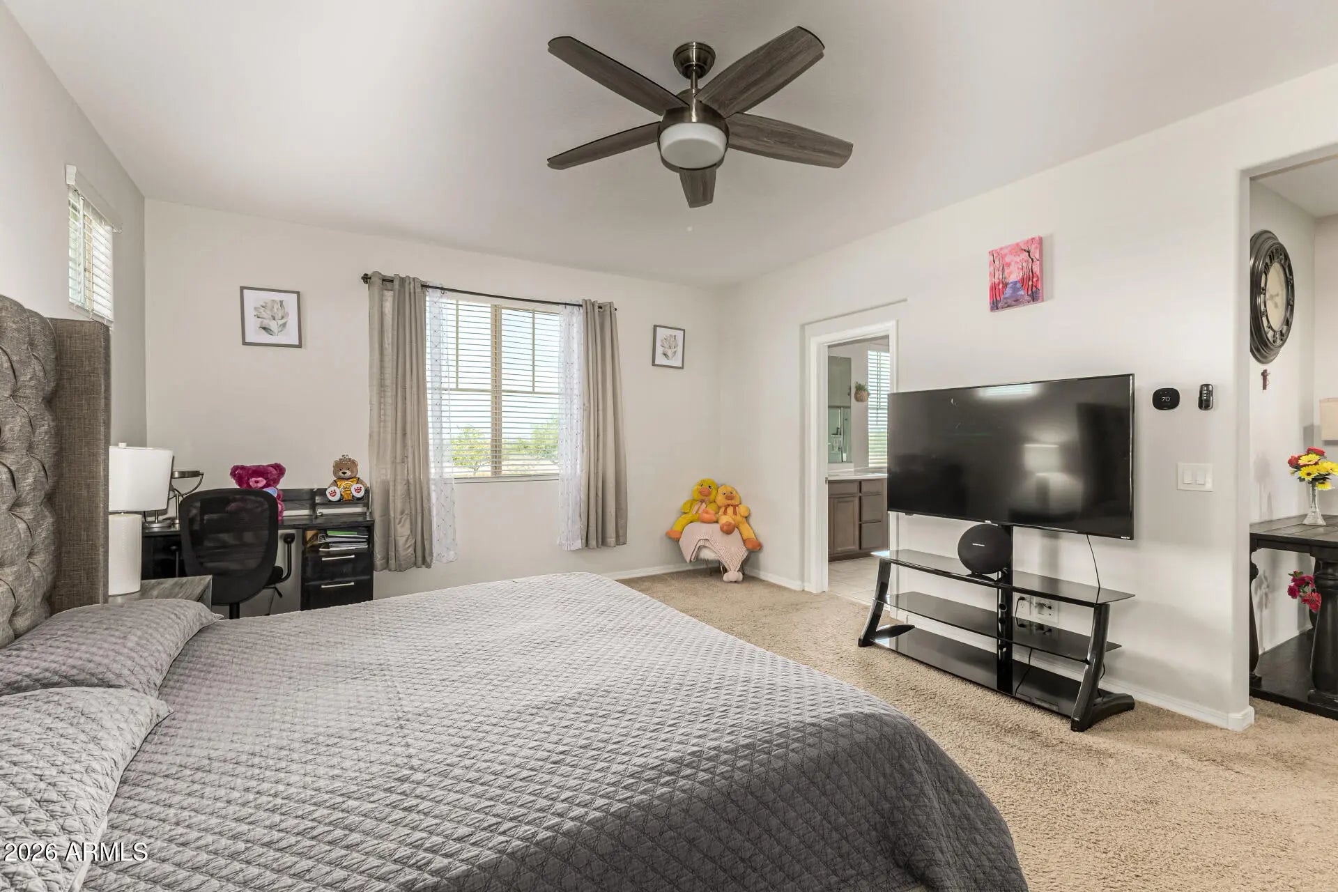Welcome to this two-story home located in a gated community just minutes from Westgate and the Football Stadium. This spacious residence features 4 bedrooms and 3.5 bathrooms, offering the perfect blend of comfort and functionality. The home includes a 3-car tandem garage, providing plenty of space for vehicles. Inside, you'll find a open kitchen with granite countertops, ample cabinetry, and generous counter space--perfect for cooking, entertaining. Upstairs, the expansive primary suite offers a relaxing retreat with plenty of room to unwind. An additional upstairs bedroom includes its own private bathroom. Step outside to enjoy the beautifully landscaped backyard, complete with pavers and low-maintenance synthetic grass. Don't miss the opportunity to make this home yours