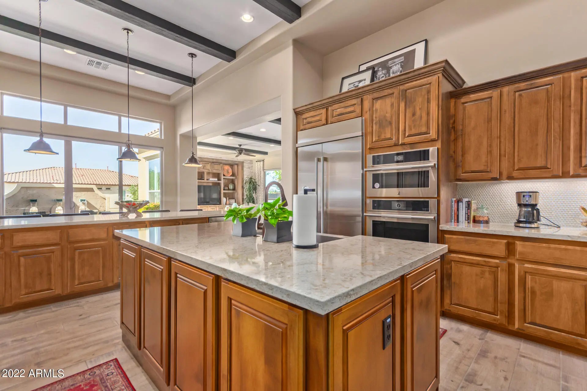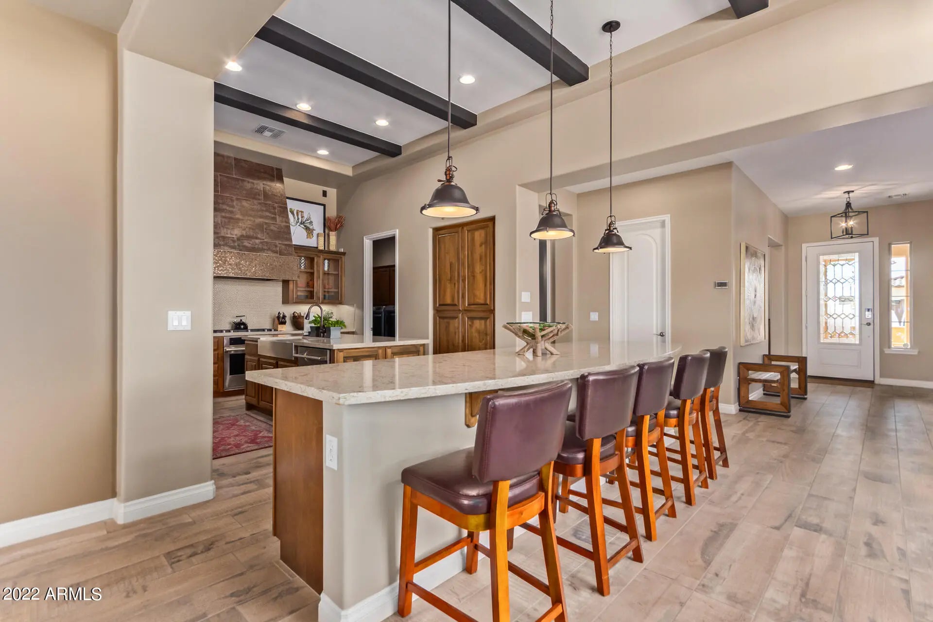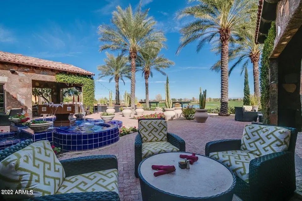 This former model is stunning. This professionally decorated home sitting on the Golf course is the perfect Luxury home away from home. This home is stylish and comfortable. The gourmet kitchen with granite countertops high end appliances, wine refrigerator and fully stocked kitchenware it is a chef's delight. The large island is perfect for entertaining, or if you prefer a quiet night the outdoor table in the courtyard is a romantic way to enjoy the gorgeous desert nights. The back patio is a great spot to watch the sunset on the Superstition Mountains, take a dip in the private pool, or maybe just sit by the outdoor fire with a glass of wine. The primary suite has large comfortable bed with luxury bedding, Both a large soaking tub and walk in shower.