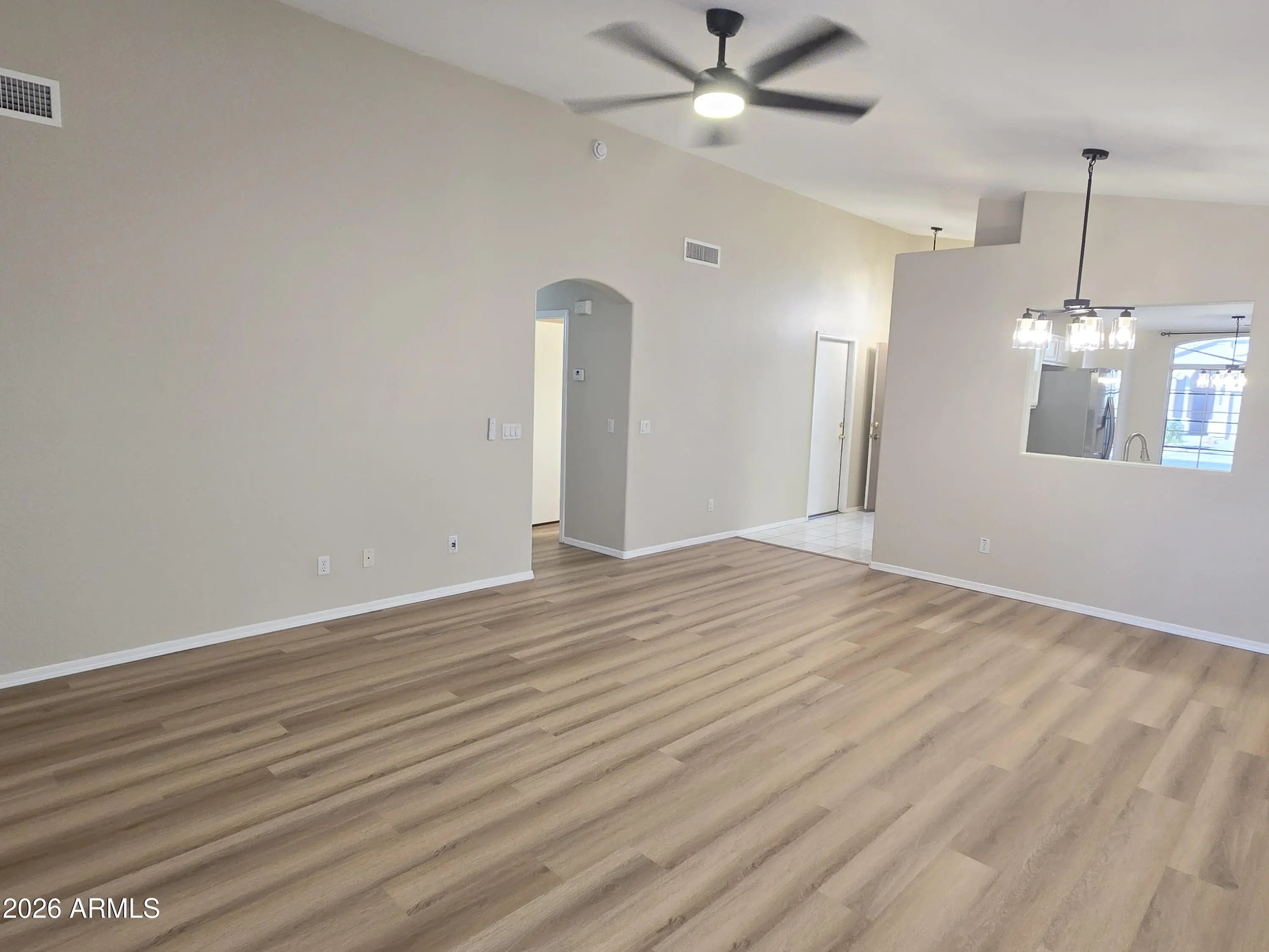 Owners just completed a fantastic makeover with upgrades thru out. New vinyl plank flooring, new paint thruout, new light fixtures, new blinds, new stainless appliances (to be installed by 3/12/26). More photos to come. Lease can begin March 12. Vaulted ceilings make home feel spacious. Easy-to-maintain landscape, no grass. 2-car garage. Washer/dryer included. $2350/month base rent + 2% tenant admin fee ($47) = $2397 total monthly rent. $2450 security deposit/cleaning fee. $40 application fee per adult. Proof of income required should show income of at least 2.5 times the rent ($6000). Good Rental history required with no past evictions or rental collections on record. No pets allowed.