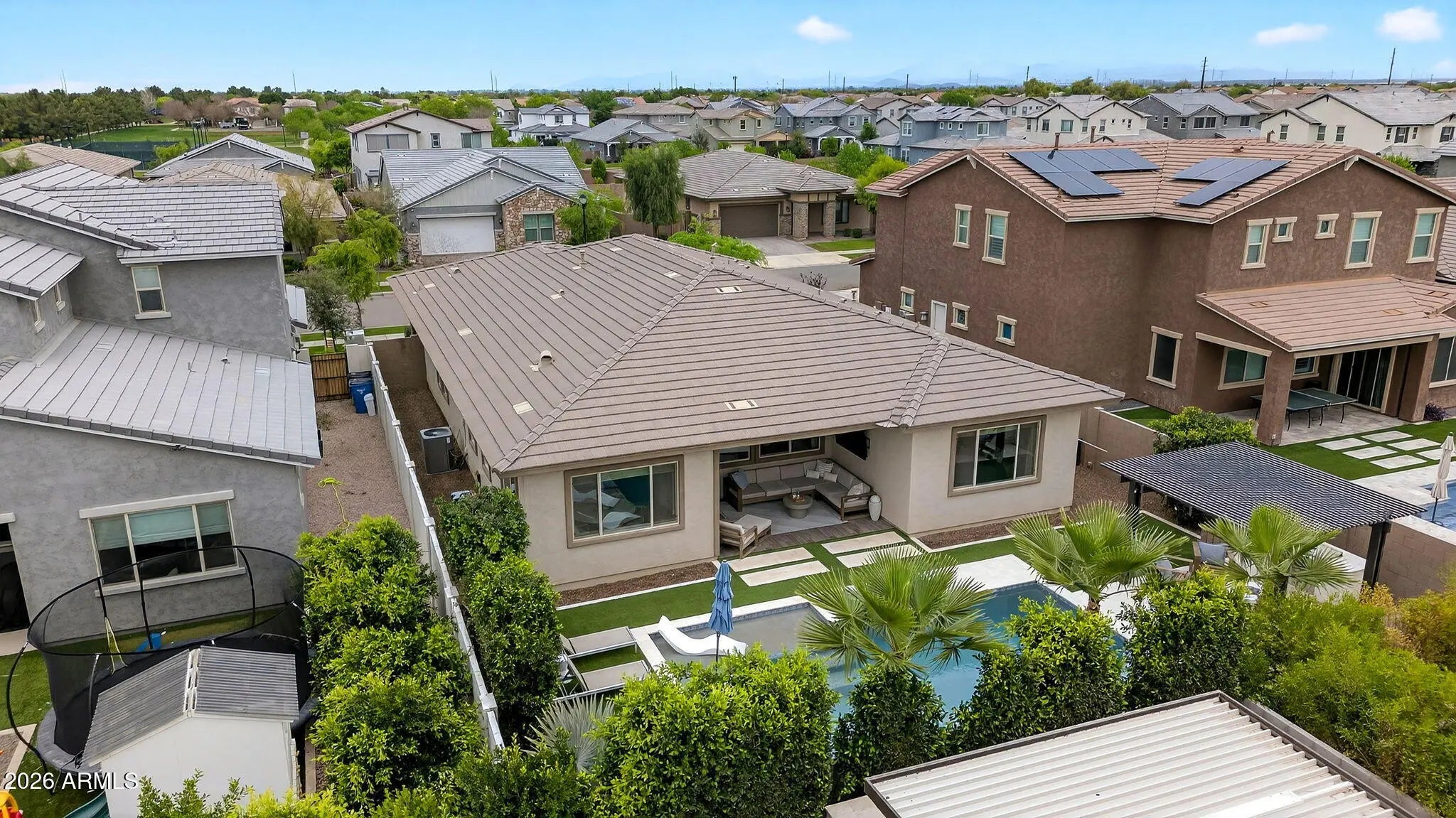 SELLER PAID RATE BUYDOWN AVAILABLE Prime luxury in coveted Lakeview Trails South at Morrison Ranch! This pristine 2021-built home offers 4 bedrooms, a flexible den, 3 full baths, and ~2,293 sq ft of sophisticated, open-concept living. The heart is the gourmet, upscale kitchen with expanded custom cabinets and premium finishes--perfect for entertaining. Unwind in your professionally designed backyard oasis featuring a sparkling pool, soothing hot tub, and elegant covered pergola. Enjoy an unbeatable location surrounded by lush community greenbelts, just 50 feet from neighborhood parks, and within easy walking distance to shopping, award-winning restaurants, and top-rated schools. Resort-style amenities in Gilbert's most desirable master-planned community. Move-in ready!