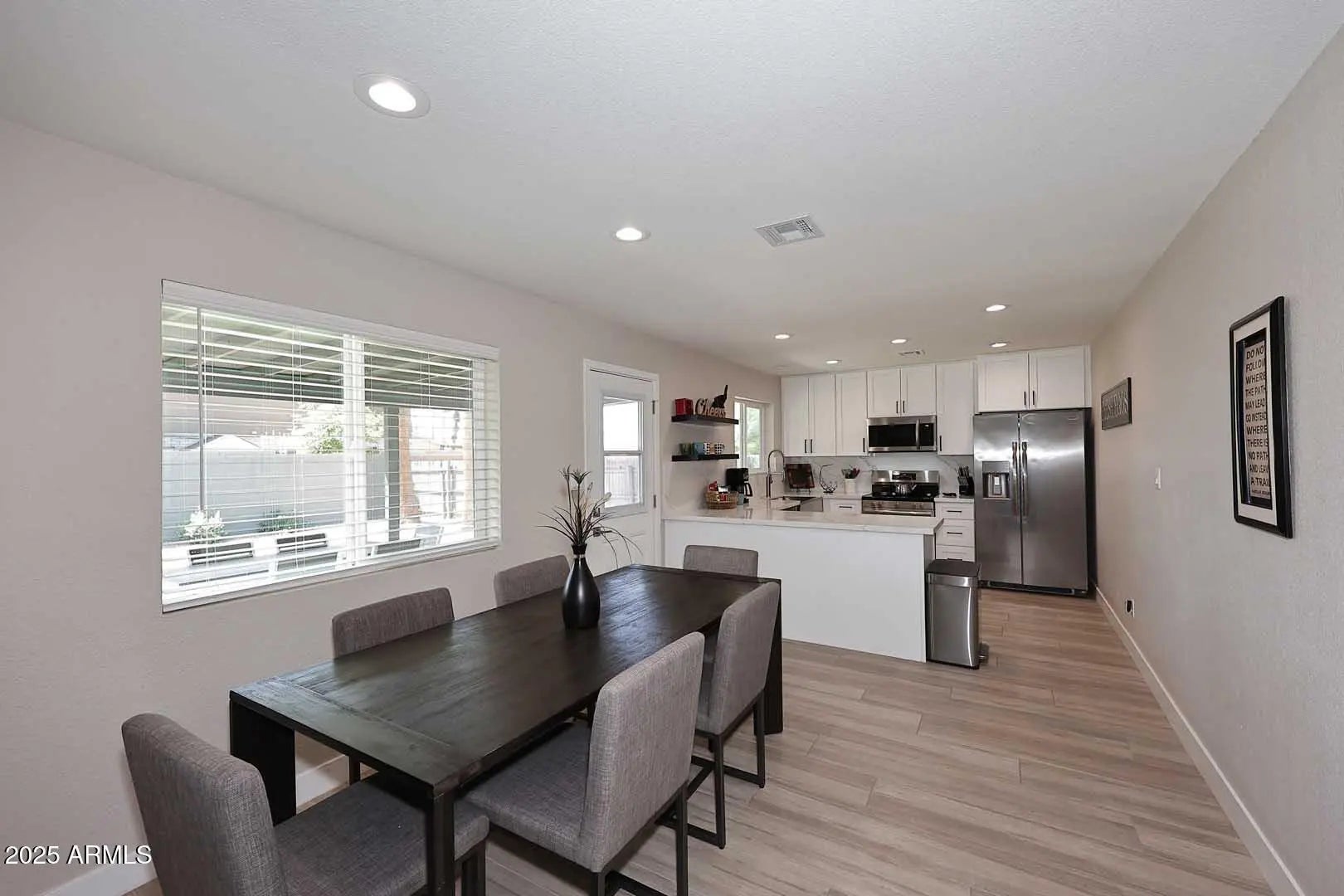REMODELED, NEW NEW NEW...flooring (2024), Roof (2023), Kitchen (2024), Baths (2024), Landscaping (2024), window treatments (2024). This single story, 3 bed/2 bath adjacent to Gilbert's historic downtown is perfect for the winter visitor, year round resident or investment property. Features include: brick accents, N/S facing, stainless steel appliances, recessed lighting, Quartz countertops, newer windows, interior and exterior paint. MOVE IN READY! Enjoy your time in the Gilbert Fun Zone on San Angelo!