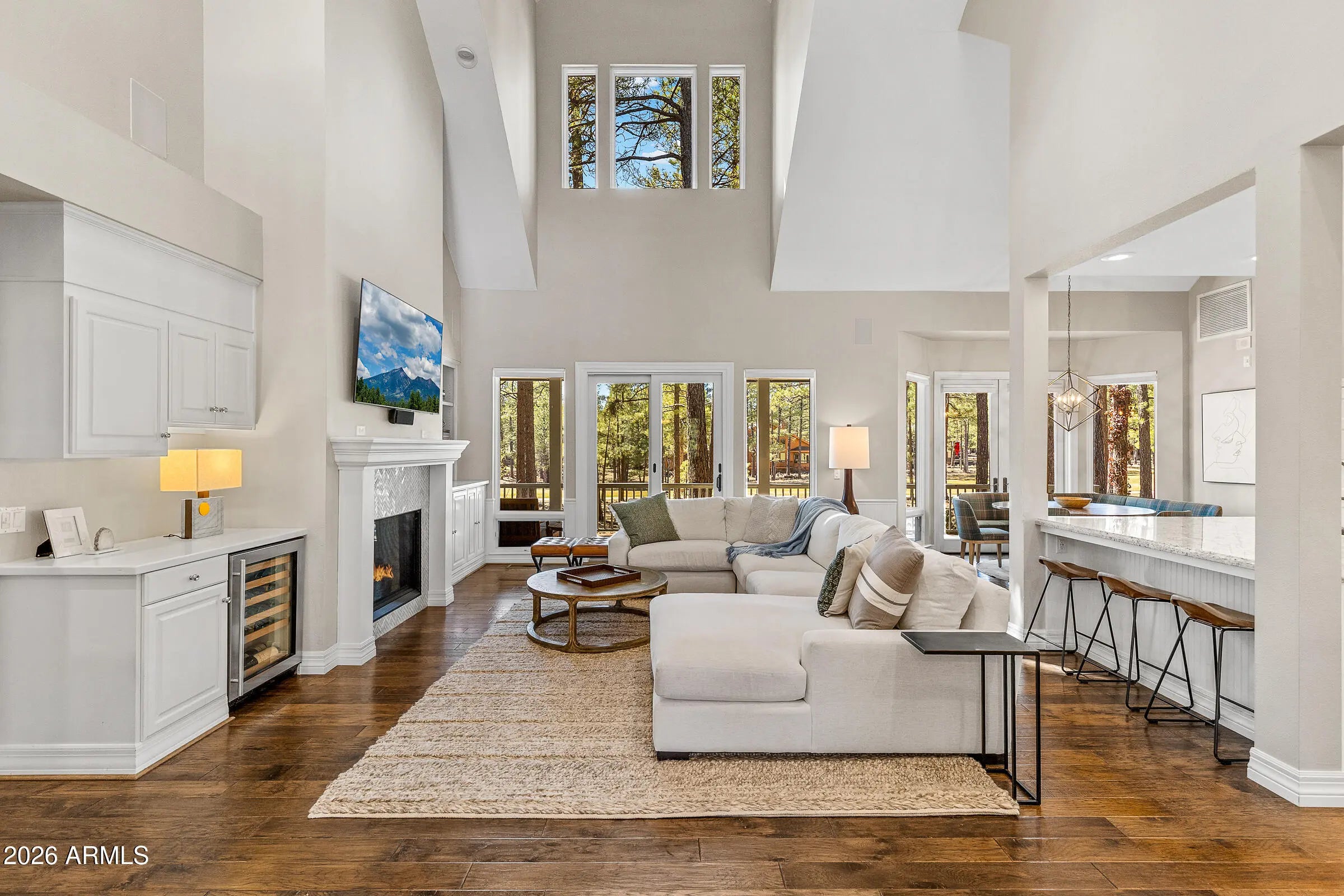 Set along the 11th fairway of the Canyon Course in the guard-gated community of Forest Highlands, this timeless mountain retreat offers the golf course setting buyers hope to find but rarely do. The split floor plan features a spacious great room, formal dining, dedicated office, oversized primary suite, and three ensuite guest bedrooms, ideal for hosting family and friends. Vaulted ceilings and hardwood floors frame the living spaces, complemented by an updated kitchen and massive primary bath. A gas fireplace, bar area, and refrigerated wine storage enhance the entertaining appeal. The covered back veranda features a wood-burning fireplace, built-in BBQ, and fairway views, perfect for summer evenings. Walk to the Stonehouse. Furnishings included.