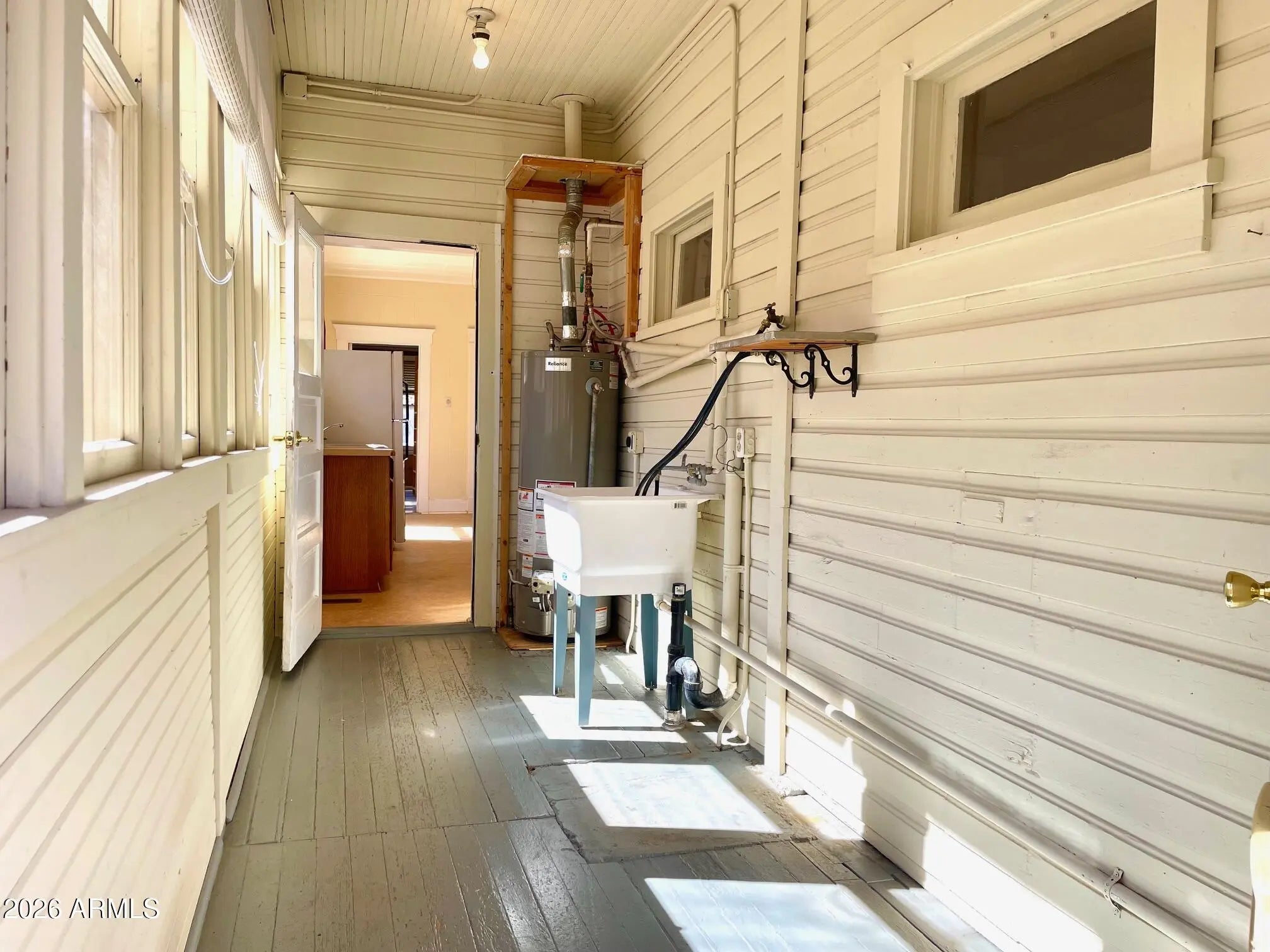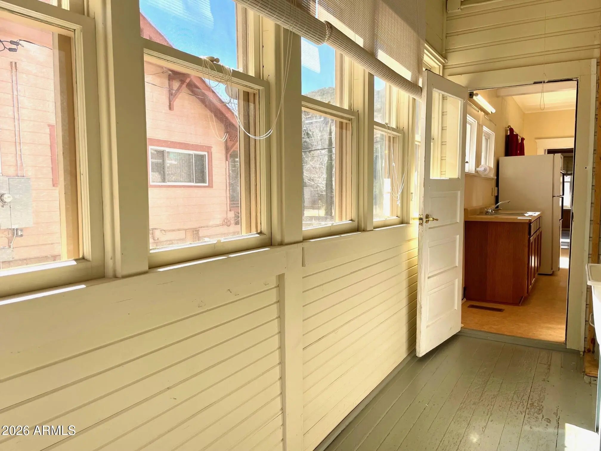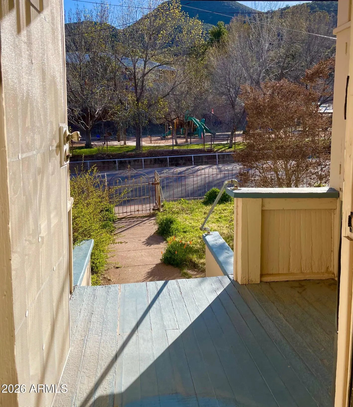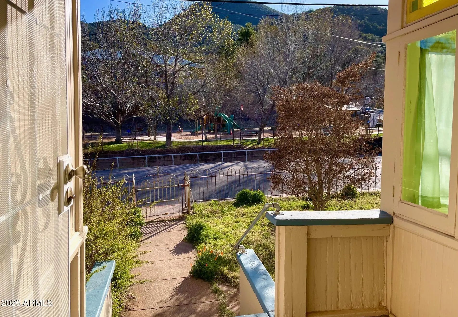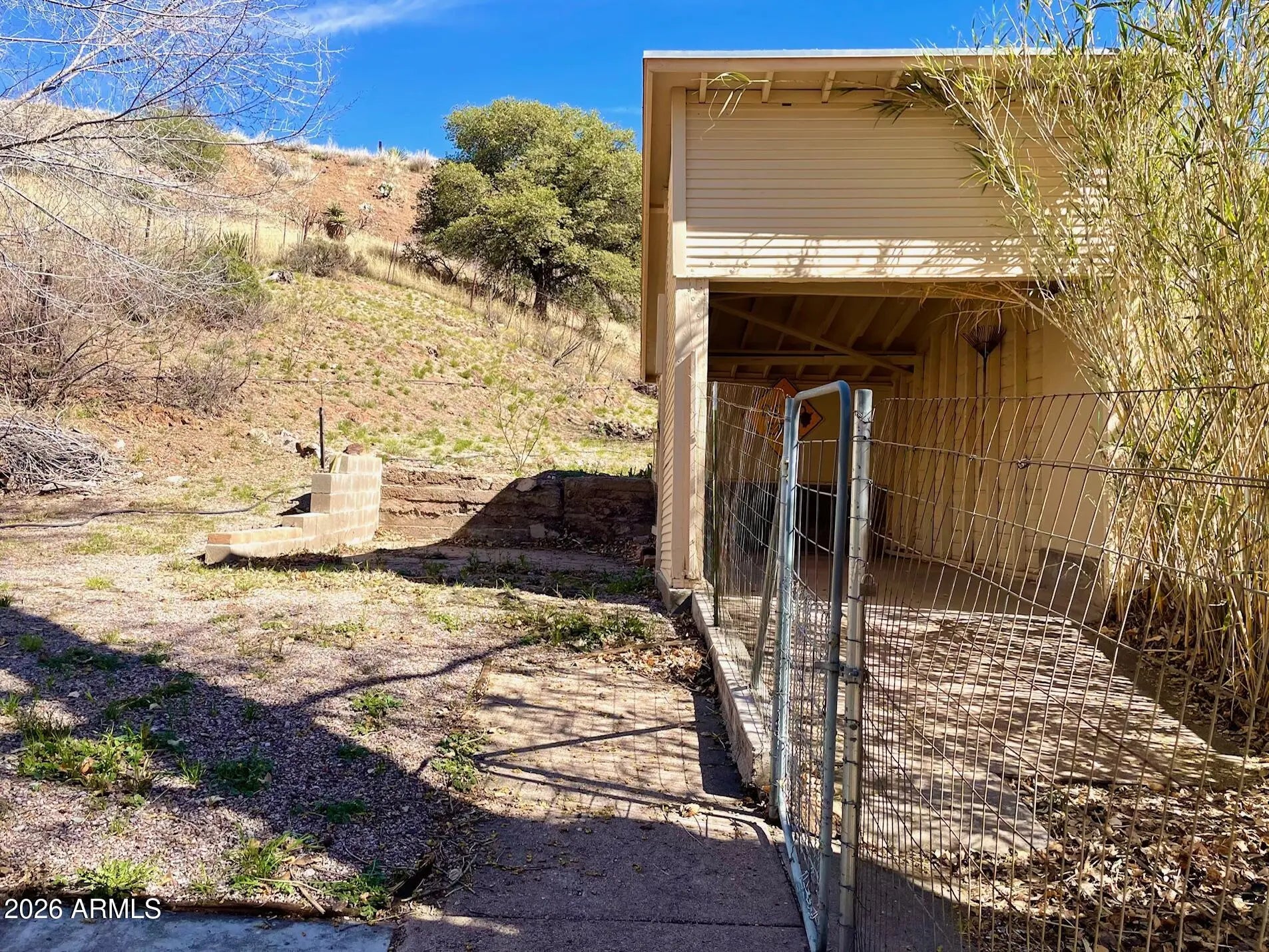 Substantial, wonderfully solid home for sale with unique history and unique features. This home was originally a parsonage - and so was built to a higher standard: solid construction, capped-off stone fireplace, 9+ ceilings, spacious rooms, and a contemplative vibe that extends to the large, peaceful, oak-studded and fenced yard. The interior features 3 bedrooms, an Arizona room, central heat, ample living room, huge kitchen with bonus room, large primary bedroom, gas furnace heat, and Douglas fir flooring under the carpet. Home also qualifies for historic property tax discount. Outside is newer exterior paint and roof, storage shed, carport and additional parking, all on over half an acre of land in a great Old Bisbee location across from Garfield Park. Buyer to verify all facts/figures.