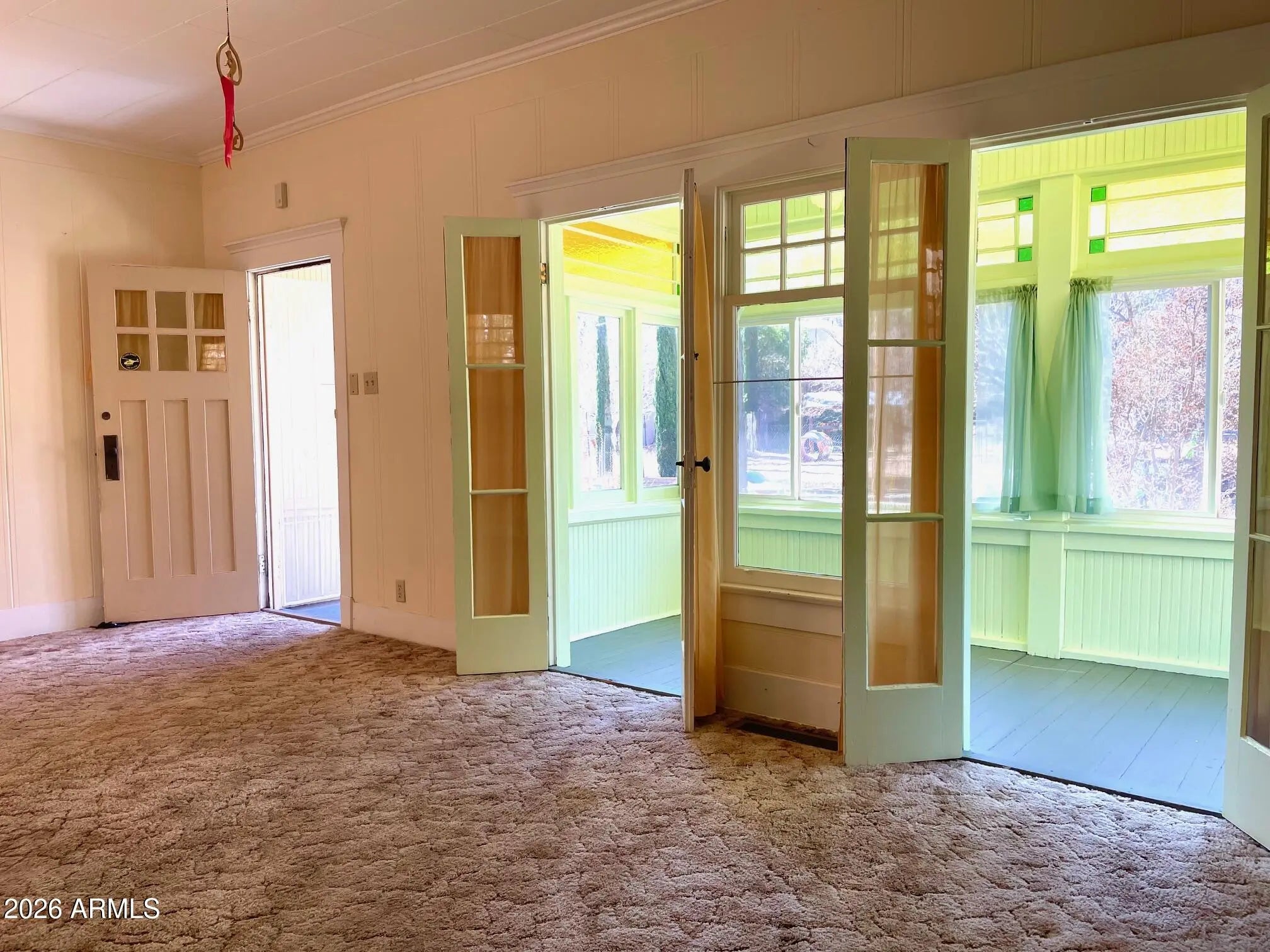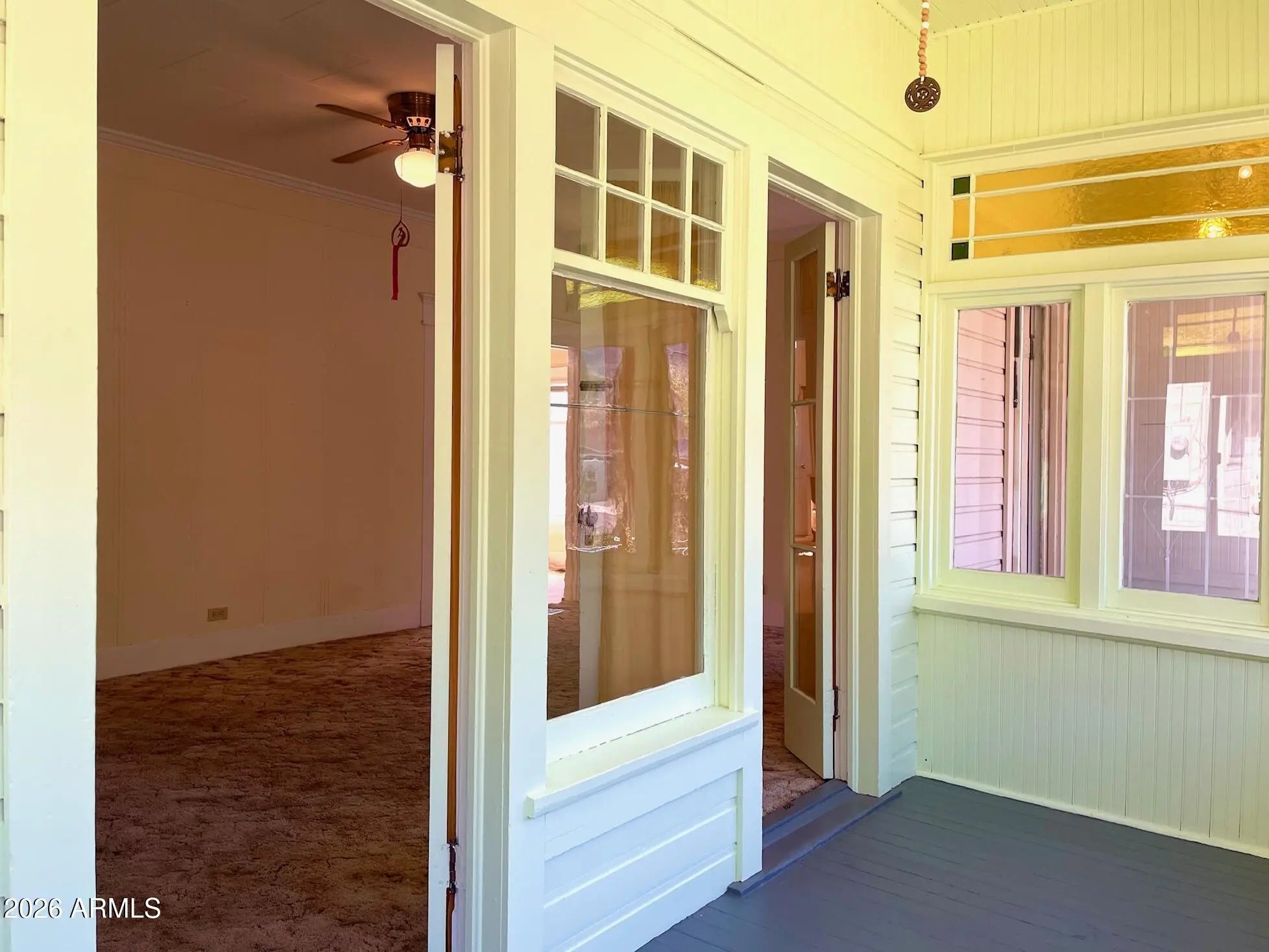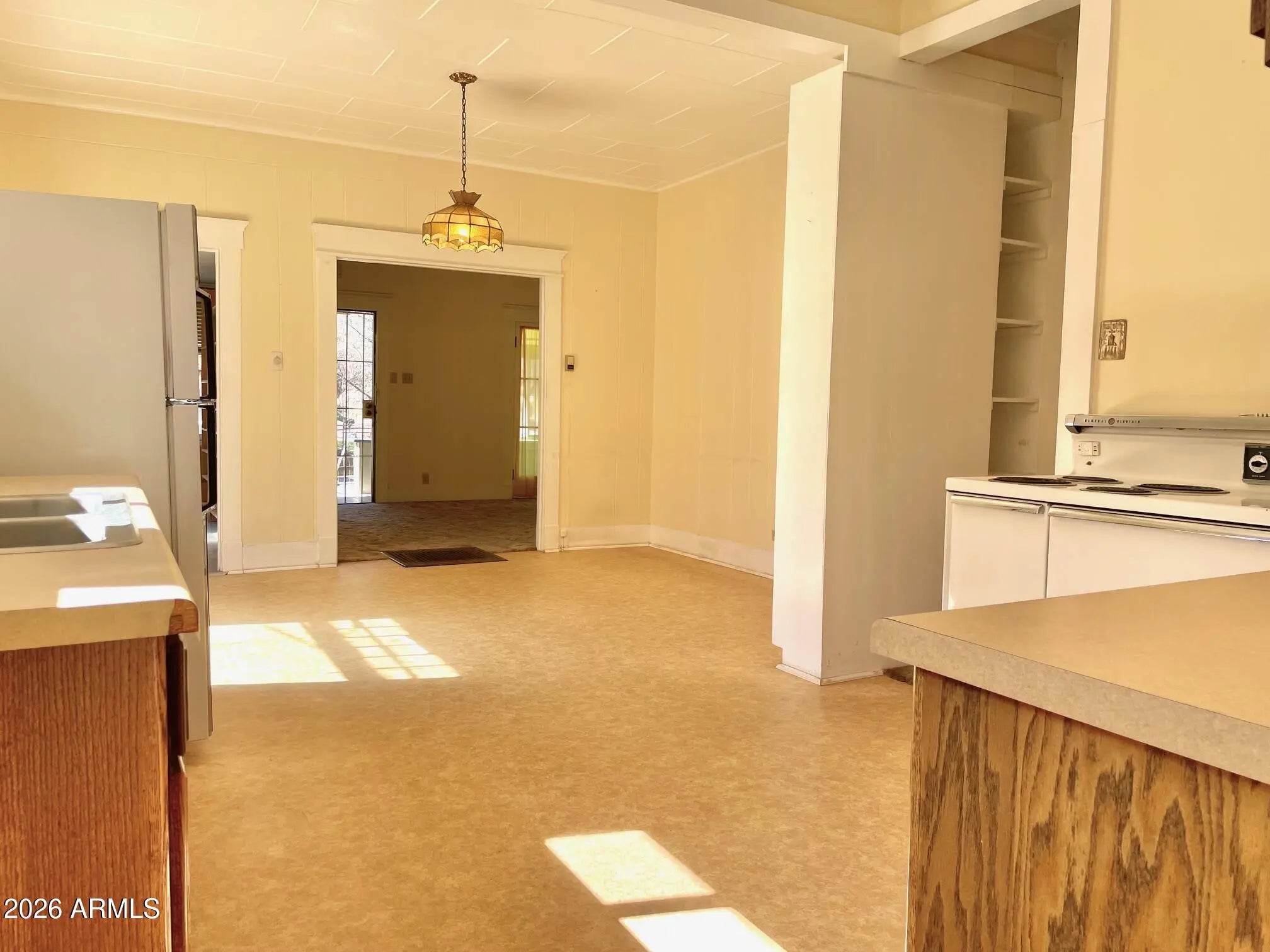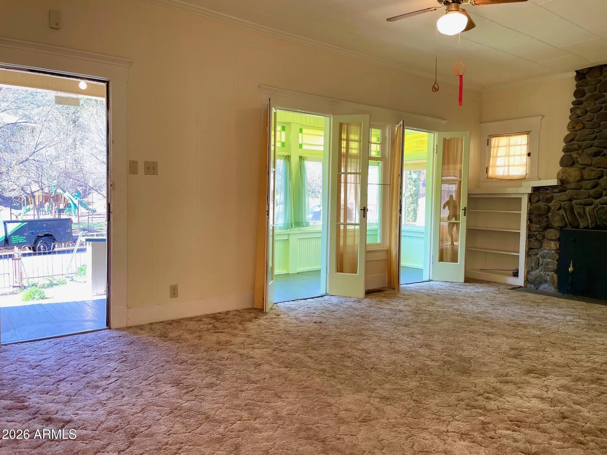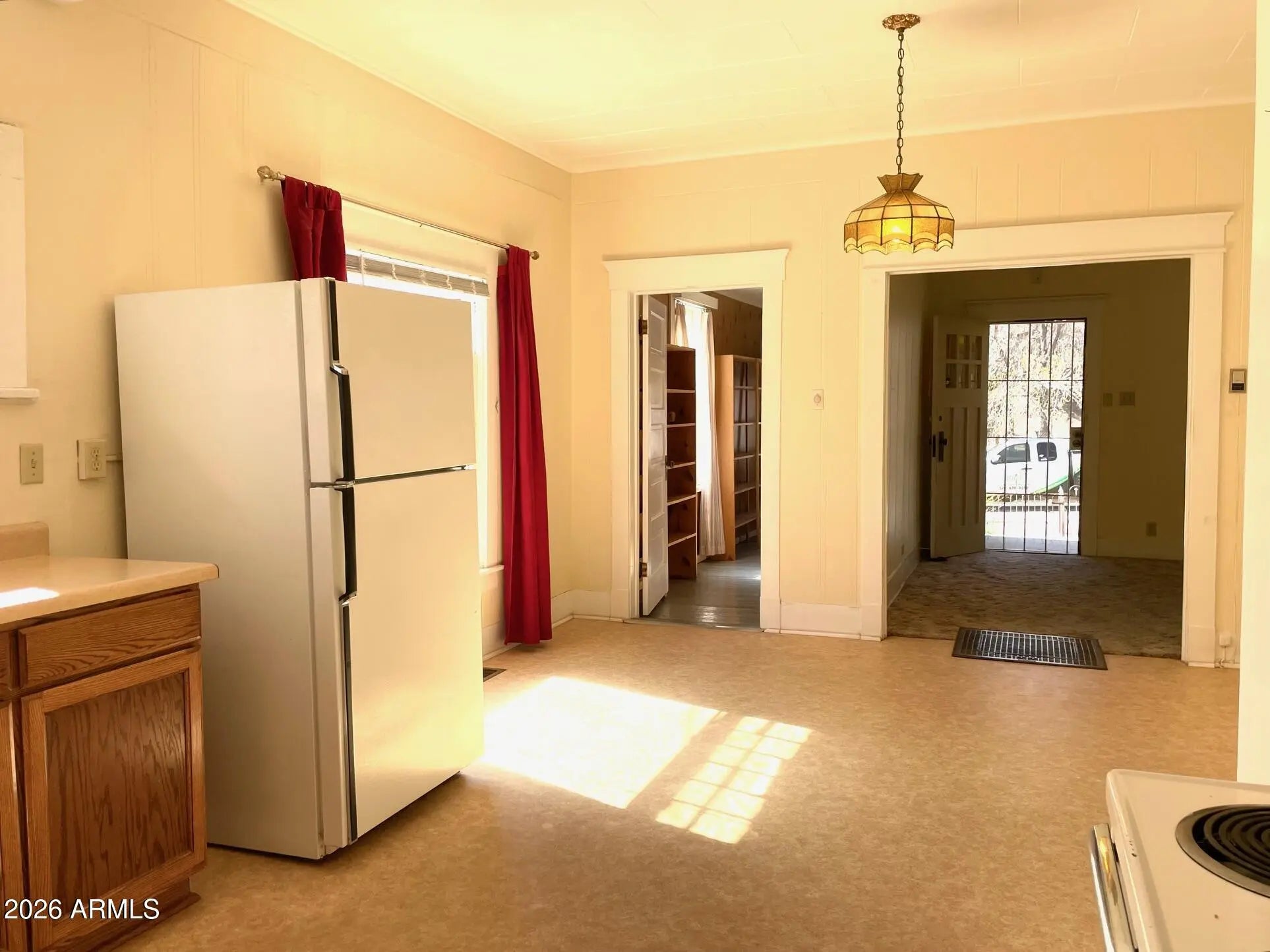 Substantial, wonderfully solid home for sale with unique history and unique features. This home was originally a parsonage - and so was built to a higher standard: solid construction, capped-off stone fireplace, 9+ ceilings, spacious rooms, and a contemplative vibe that extends to the large, peaceful, oak-studded and fenced yard. The interior features 3 bedrooms, an Arizona room, central heat, ample living room, huge kitchen with bonus room, large primary bedroom, gas furnace heat, and Douglas fir flooring under the carpet. Home also qualifies for historic property tax discount. Outside is newer exterior paint and roof, storage shed, carport and additional parking, all on over half an acre of land in a great Old Bisbee location across from Garfield Park. Buyer to verify all facts/figures.