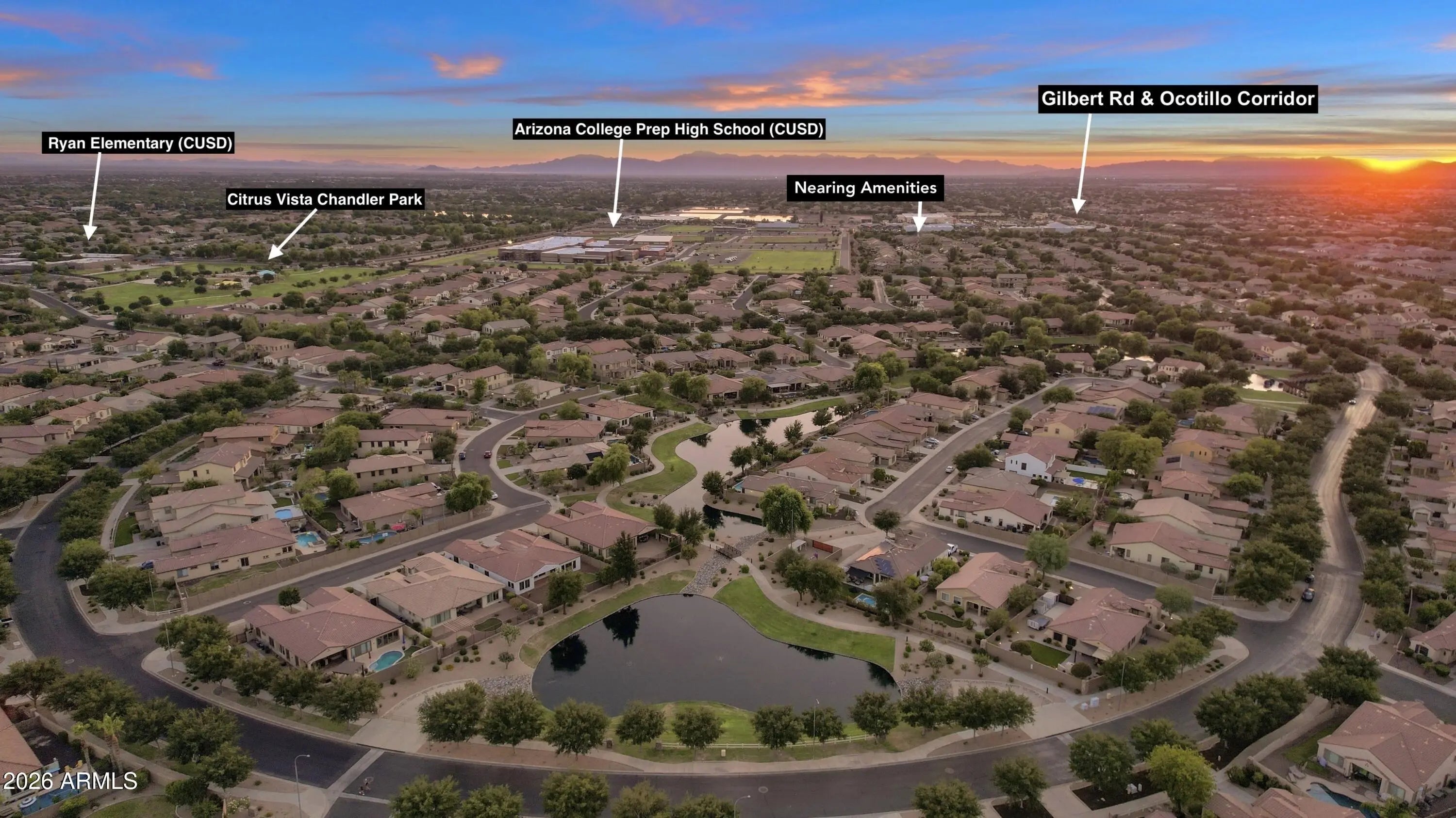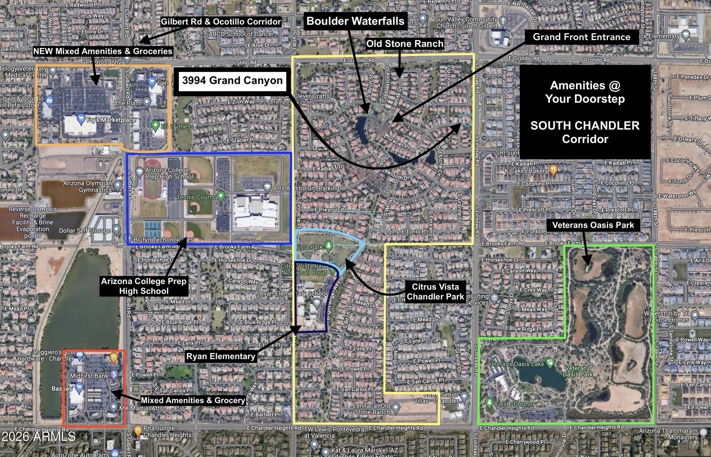 Consider Centralized Destination Living in South Chandler's Premier Lake community... Old Stone Ranch. This UPGRADED MOVE-IN READY SHEA HOME RESIDENCE is sure to check all your boxes... Prime South Chandler Proximity w/all new must-have attractions surrounding your doorstep, Scenic Lake Master Plan with endless walking/biking trail systems, San Tan Mtn Views, Excelling School Options, Desired ''Tortola'' Great Room Floor Plan influencing everyday functionality & featuring 3 beds (all downstairs) + Flex Room (could be your 4th bedroom) + a sizeable upstairs GAMEROOM/LOFT Space with separate storage room, Open Kitchen Layout models unique backsplash windows, Kitchen Island w/Breakfast Bar, SS Kitchen Appliances including Gas Oven Range, Owner's Retreat offers a Full Primary Bath with both Shower & Soaking Tub, Large Walk-in Closet + Separate Entry to Backyard, Private Backyard is complete with Extended Paver Patio, Mature Flowering Plants/Trees/Citrus & further outdoor space to create, Cul-de-sac corner homesite with ideal North Backyard Exposure & ample distance between the one neighboring roof line, Open Air Views with no surrounding multi-level properties, Finished 2.5-Car Garage w/Premium Organizational Features, Epoxy Flooring & Service Door to side yard, Recent Community High Floor Plan Comparable sold for $779k, establishing a significant value ceiling to further create your own home/backyard canvas as you please! Old Stone Ranch has become a destination community known for its picturesque scenery and neighborhood charm. It's warm and inviting, full of friendly neighbors, engaging lifestyle and exceptional educational opportunities. Featuring Lakes, Streams, Fountains, Scenic Water Lined Walking Trails & Bridges, Scenic Canopy Elm Lined Streets, Multiple Parks & Children Play Areas, Covered Picnic Tables, White Picket Fences w/Elm Tree Lined Streets. Ryan Elementary and NEW Arizona College Preparatory High School (ACP) a short walk away within the community. Citrus Vista Chandler Park steps away & don't miss Veterans Oasis Nature Preserve & Lake Park. RESIDE AT ONE OF ARIZONA'S MOST DESIRABLE ADDRESSES... WHERE CHANDLER MEETS GILBERT. Nestled between the thriving City of Chandler & Town of Gilbert (both nationally recognized as "Best Places to Live in America") residents take advantage of what's Beyond the Front Door. Vaquero Palm Lined Community Drive Entry & Central Park, Scenic San Tan Mountains Views, Open Greenbelt Spaces & Playgrounds, Excelling School Options, Close access to VETERANS OASIS LAKE PARK & NATURE PRESERVE for all your outdoor walking, running & biking adventures, COMING SOON... Lifetime Fitness Gym (Platinum Point) just to the East, Ocotillo & Gilbert Rd - Mixed-Use/Grocery Corridor, Nationally Acclaimed Gilbert Regional Park, Close San Tan 202 Freeway Access, Crossroads Towne Center includes Target/Harkins Theatre, San Tan Village - Outdoor Upscale Shopping & Dining, New & Established Southeast Valley Business Corridors and Mix-Used Developments, Chandler Municipal Airpark w/Runway for Midsize Private Jets, Vibrant Downtown Chandler & Old Town Gilbert's Heritage District Festivities, Phoenix-Mesa Gateway Airport - Second Growing Hub to Phoenix Sky Harbor... this is just the start!