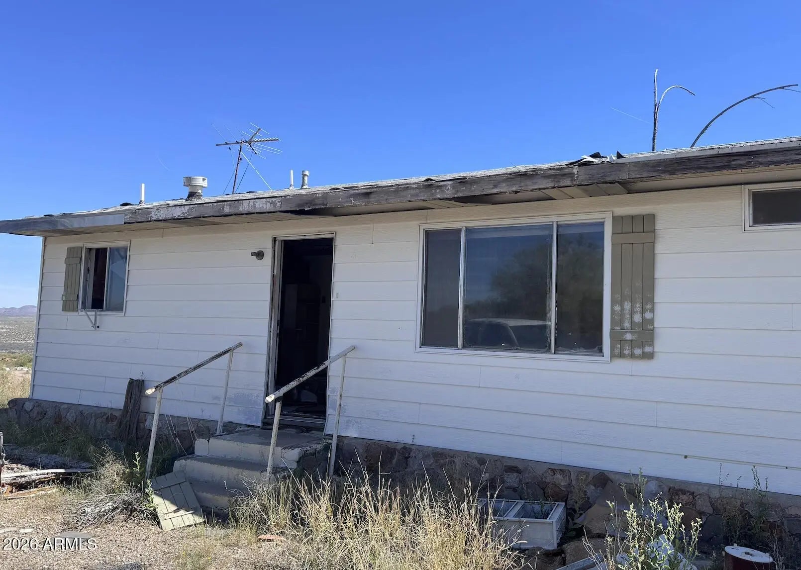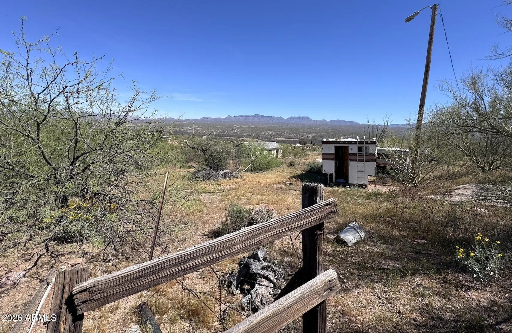 THE VIEW ALONE IS WORTH IT!! Land backs up to Government Land!!!! 2 Bedroom 1 Bath on over 3.472 Acres. There is a separate 1 car garage and Ready for your Farm Animals! WELL IS ALREADY DUG (pump is broken), and Electricity is on the side of the manufactured home with a fireplace!