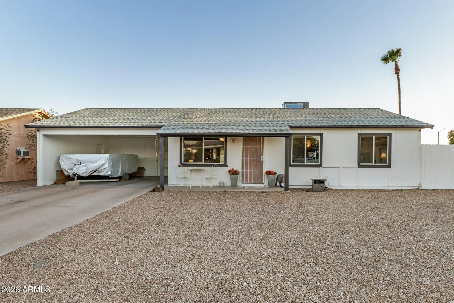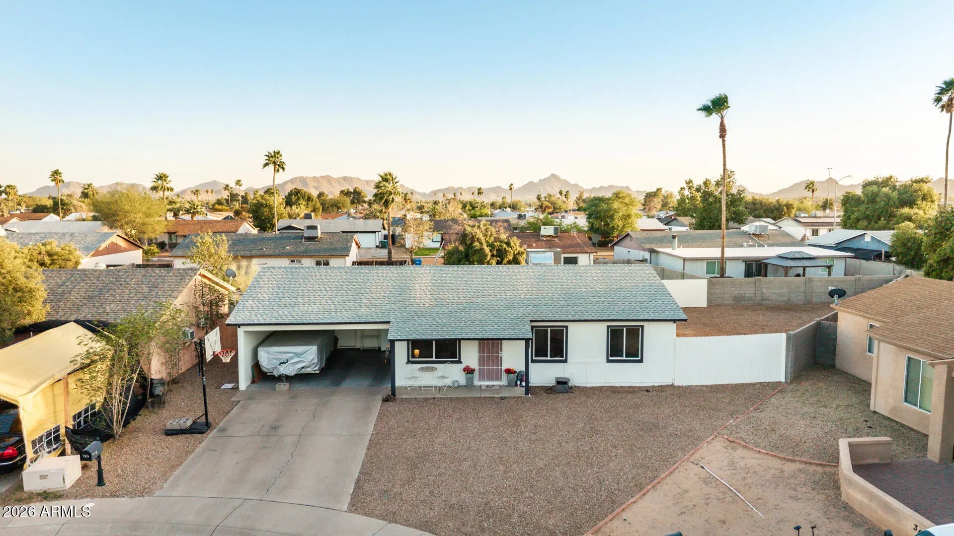 Fantastic opportunity to own this lovely 3-bedroom home on a peaceful cul-de-sac! You're greeted by an attached carport, a low-maintenance yard, and an inviting front patio. Inside, you'll find a serene living room with a fresh palette and stylish wood-look flooring. The eat-in kitchen comes with granite counters, crisp white shaker cabinetry with crown moulding, a tile backsplash, and stainless steel appliances for a delightful cooking experience. All bedrooms are cozy and well-sized, offering plush carpeting and a private retreat for all inhabitants. Enjoy breathtaking sunsets in the charming backyard, featuring a covered patio and pristine artificial turf for outdoor activities. Don't miss on out on your chance to own this incredible gem!