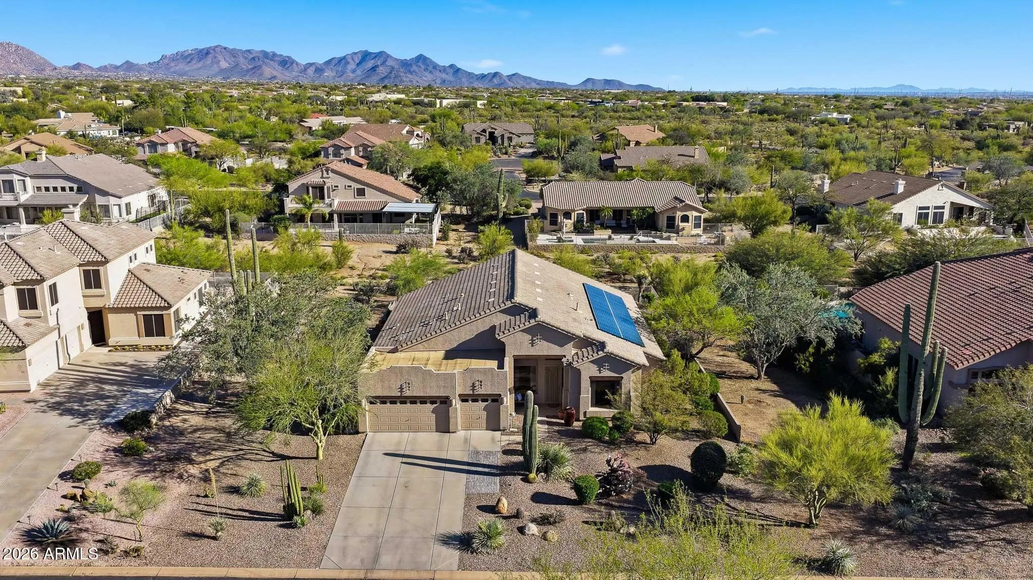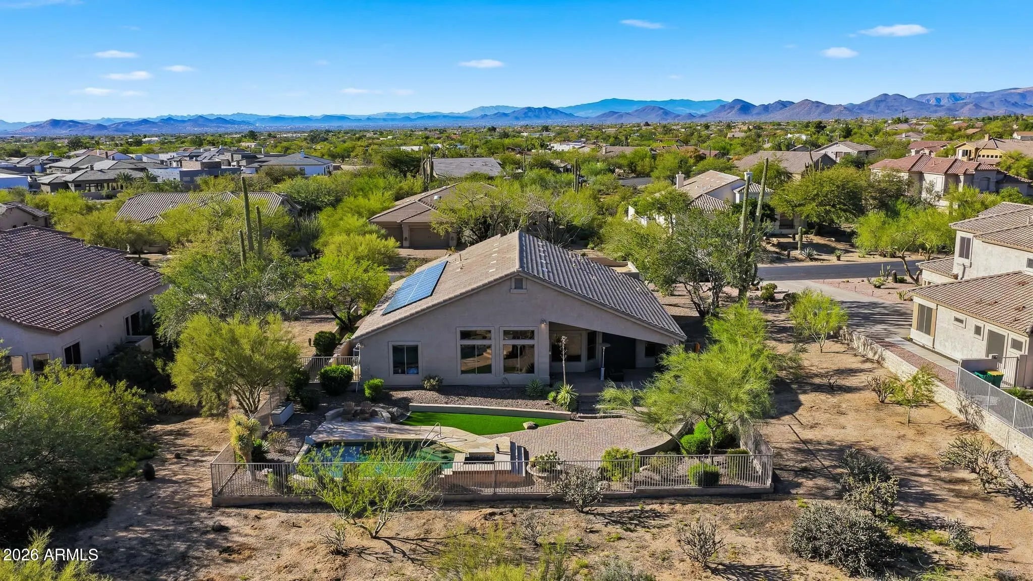 **Stunning Single-Level Home in Cave Creek** Welcome to your dream home! This exceptional single-level residence features four spacious bedrooms, each with its own walk-in closet, ensuring ample storage for the entire family. Additionally, enjoy the versatility of a front room bonus that can serve as an extra bedroom, office, or workout space, perfectly accommodating your lifestyle needs. The home boasts unique architectural details and designer finishes throughout, including elegant ceiling fans and specialty lighting that create a warm and inviting atmosphere. The heart of this home is the amazing chef's kitchen, equipped with top-of-the-line appliances, wine refrigerator, beautiful cabinetry, and generous counter space--perfect for culinary enthusiasts and entertaining guests. Enjoy the spacious layout that caters to all your family needs, with a gated entry providing added privacy and security. The unique design of this community features large lots and significant space between homes, offering a serene and tranquil environment. Additional highlights include a three-car garage and an extra parking space for your convenience. Don't miss out on this incredible opportunity to own a home that combines luxury, comfort, and functionality in the beautiful Cave Creek area!