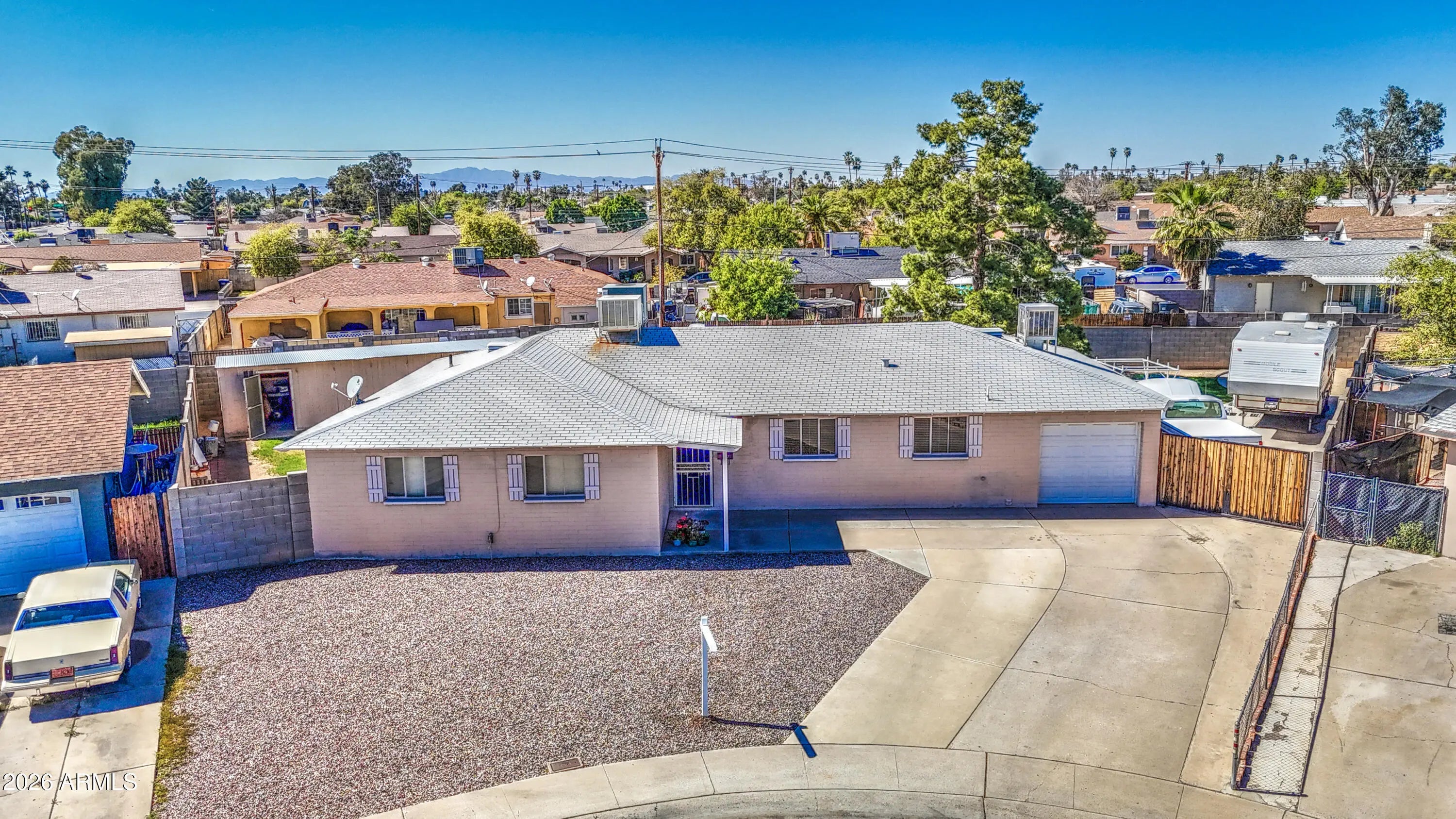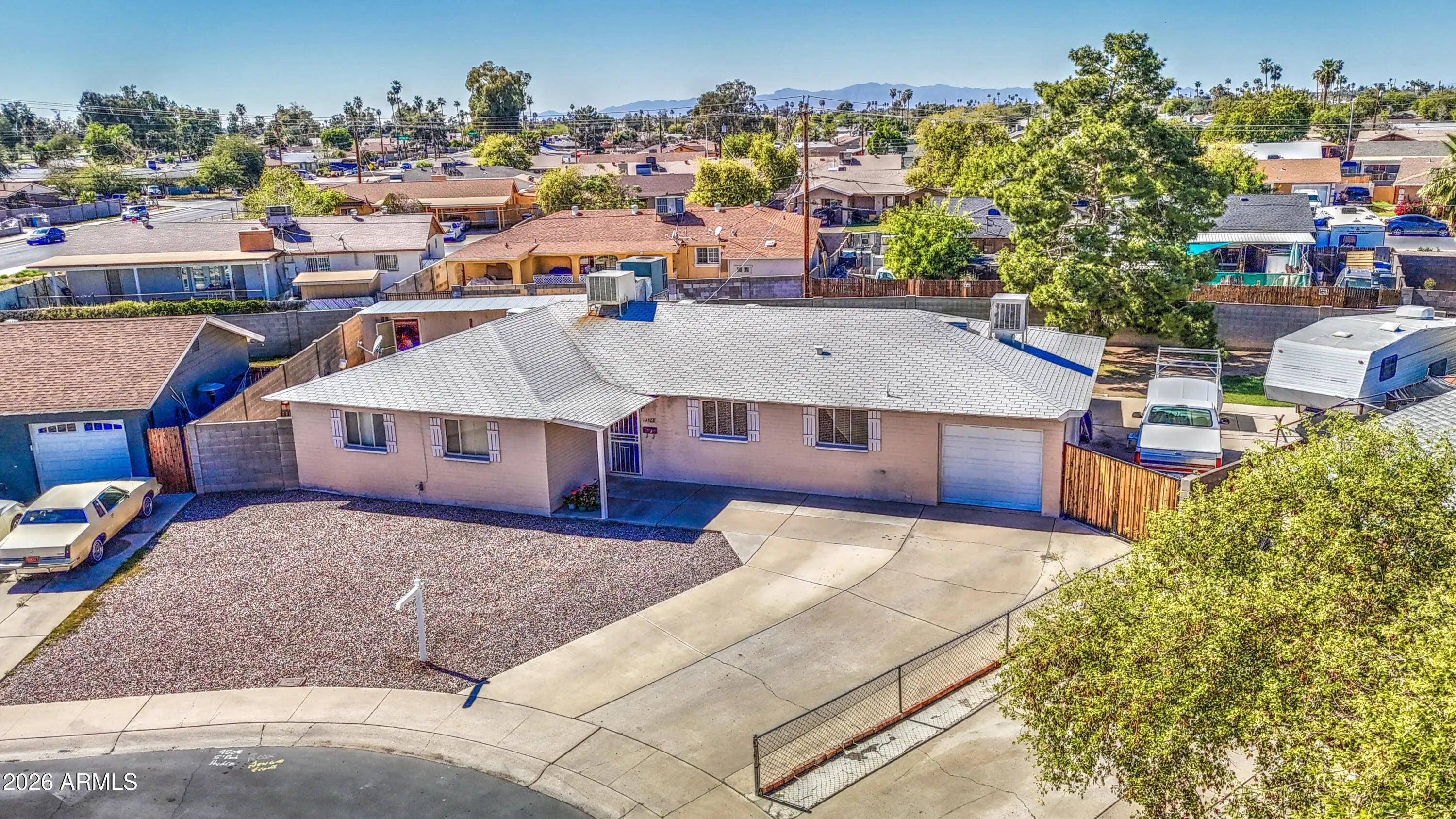 Beautiful home located in the heart of the Maryvale area, close to shopping, restaurants, schools, and with easy access to major freeways. This well-maintained home has been lovingly offering true pride of ownership throughout. The home features a remodeled kitchen with newer cabinets, partially updated bathrooms, and neutral colors throughout, creating a warm and inviting space ready for its next owners. The interior is extremely clean and well preserved. Situated on a quiet cul-de-sac, the property sits on one of the larger lots in the neighborhood, offering plenty of outdoor space and privacy. The property also features an RV gate, a covered carport, and an additional detached garage/storage space in the backyard for vehicles, workshop, and much more... First time home Welcome !!
