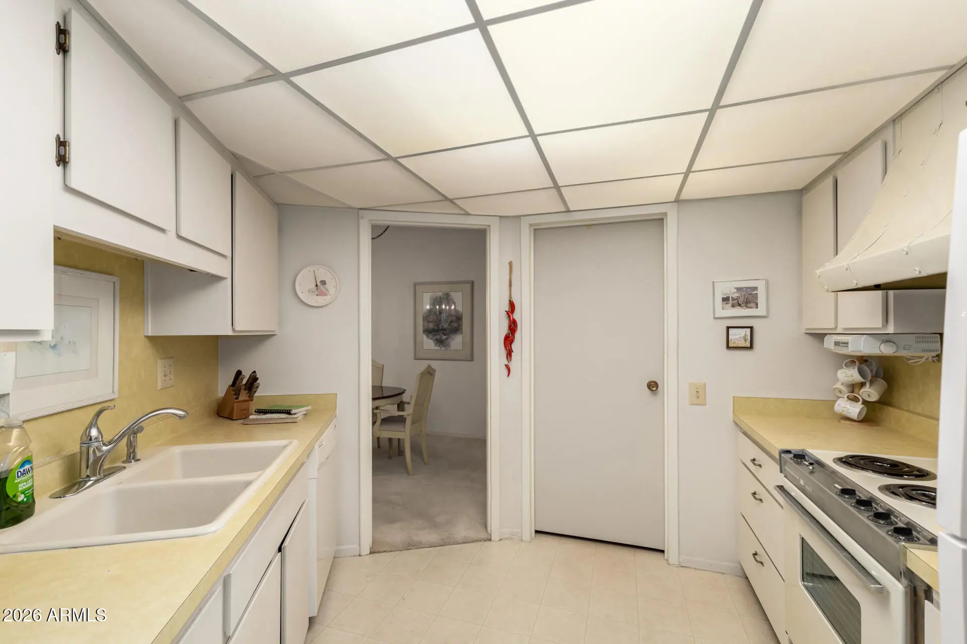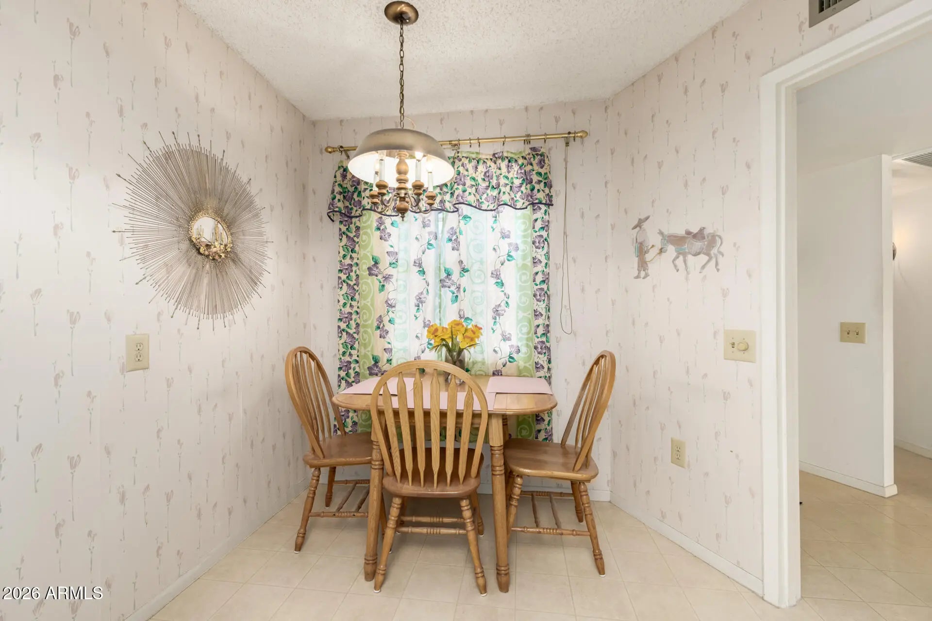 Don't miss this charming townhome in Aleppo Court within the 55+ community of Sun City! Rare floor plan featuring 1.5 bathrooms and a bonus Arizona room, a combination not commonly found in the community. Inside offers a bright, open living and dining area with high ceilings that create an airy feel. Neutral paint and a mix of tile and carpet throughout. The kitchen features built-in appliances, white cabinetry, and a breakfast nook. Spacious bedroom plus laundry room with storage cabinets. The Arizona room provides additional living space and opens to a private patio, perfect for relaxing or BBQs. Includes a 1-car garage. Enjoy Sun City's golf, recreation centers, pools, fitness facilities, and vibrant activities.