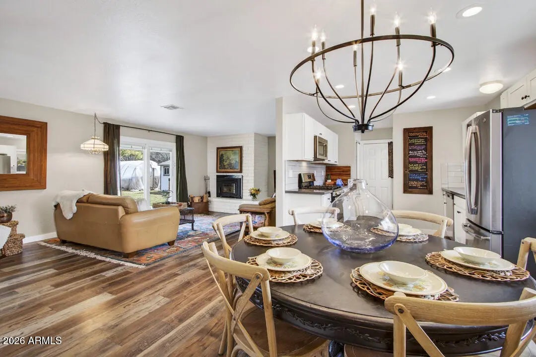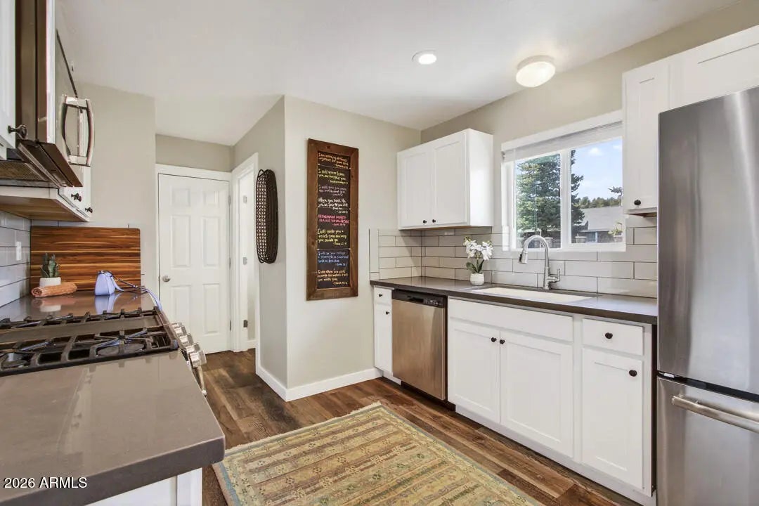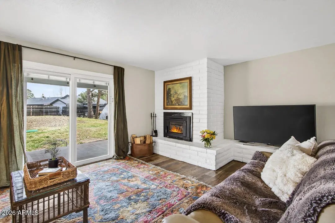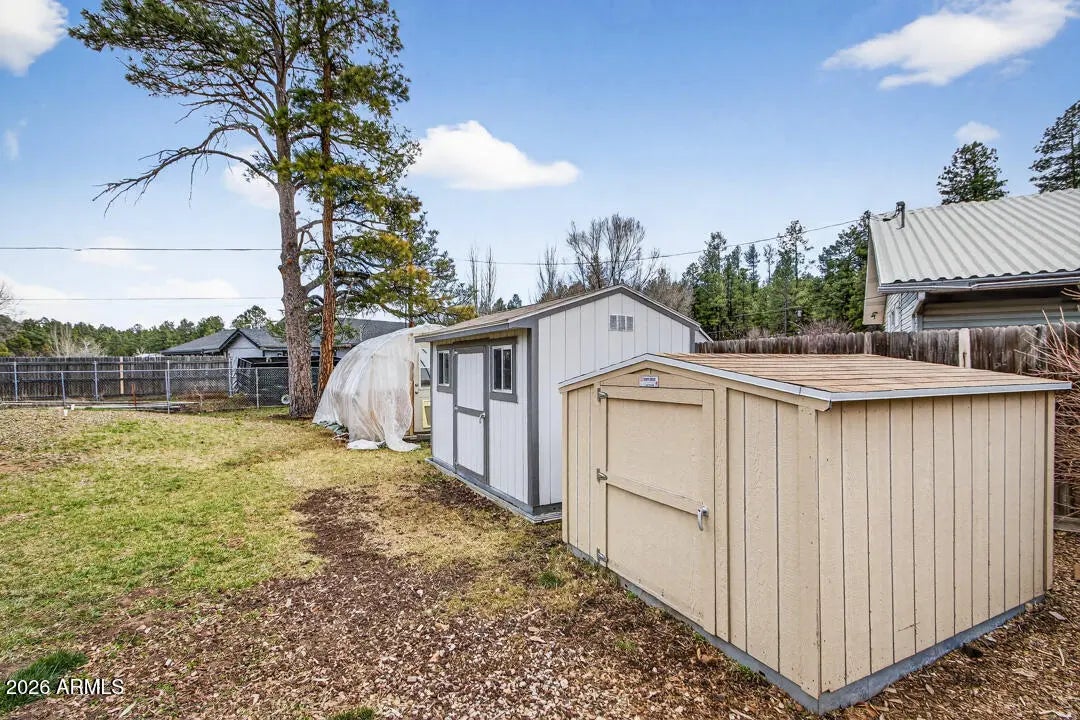 A sweet property on a larger lot in the coveted tree lined Pine Del neighborhood. This updated home has interior improvements that give true value: bright kitchen & bathrooms, LVP flooring, modern doors & windows, whole house water filtration system & stainless appliances. Two car level entry garage (read: no sliding on an icy hill in the winter!) plus covered back porch, water catchment, multiple sheds, & a fenced yard where all the birds sing to draw you home. Open a book, put your feet up, soak in the heat cranked out by that wood burning stove, & make this Flagstaff charmer yours.