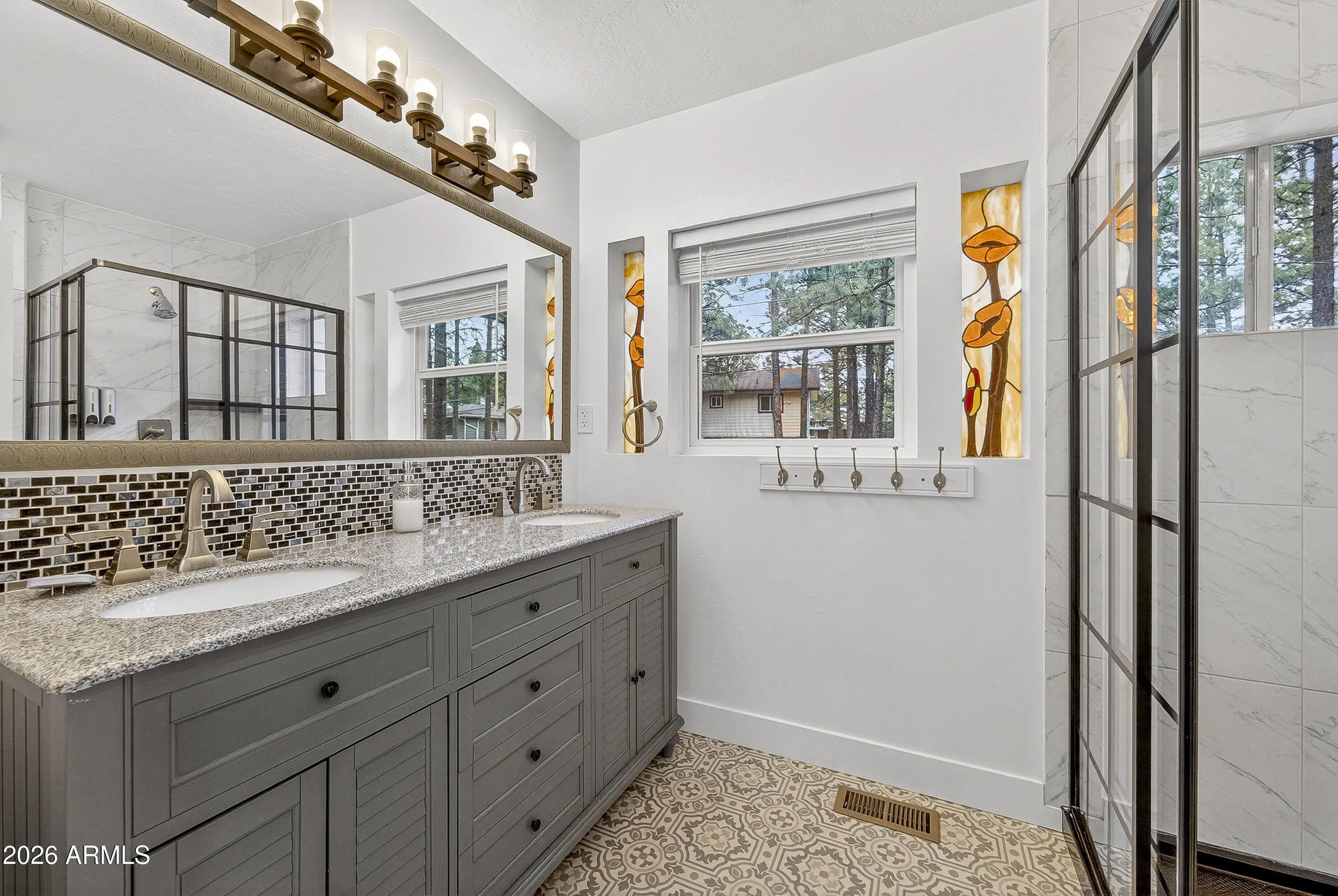 RARE CHERRY HILL OPPORTUNITY. Discover the perfect blend of historic character and modern luxury in this 6-bedroom 4-bathroom mountain retreat. Nestled among ponderosa pines just steps from Downtown Flagstaff, Wheeler Park, and the Urban Trail system, this home offers the ultimate mountain lifestyle. MODERN UPDATES: Features updated flooring, designer lighting, updated cabinetry, and refreshed baths. The timeless soul of the home remains through the charming stained glass and 3 cozy fireplaces. DUAL-LIVING POTENTIAL: The upper level boasts a private MOTHER-IN-LAW SUITE with its own interior/exterior entrance, a updated kitchen, and a private patio. Whether you need a multi-generational setup, a premium 2nd home, an investment property, this layout delivers something for every buyer.