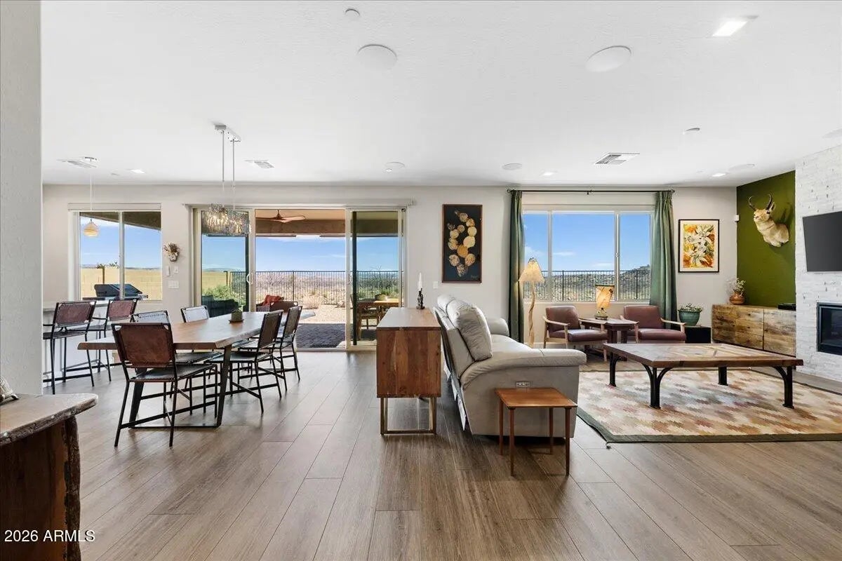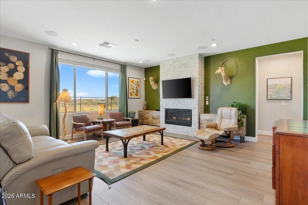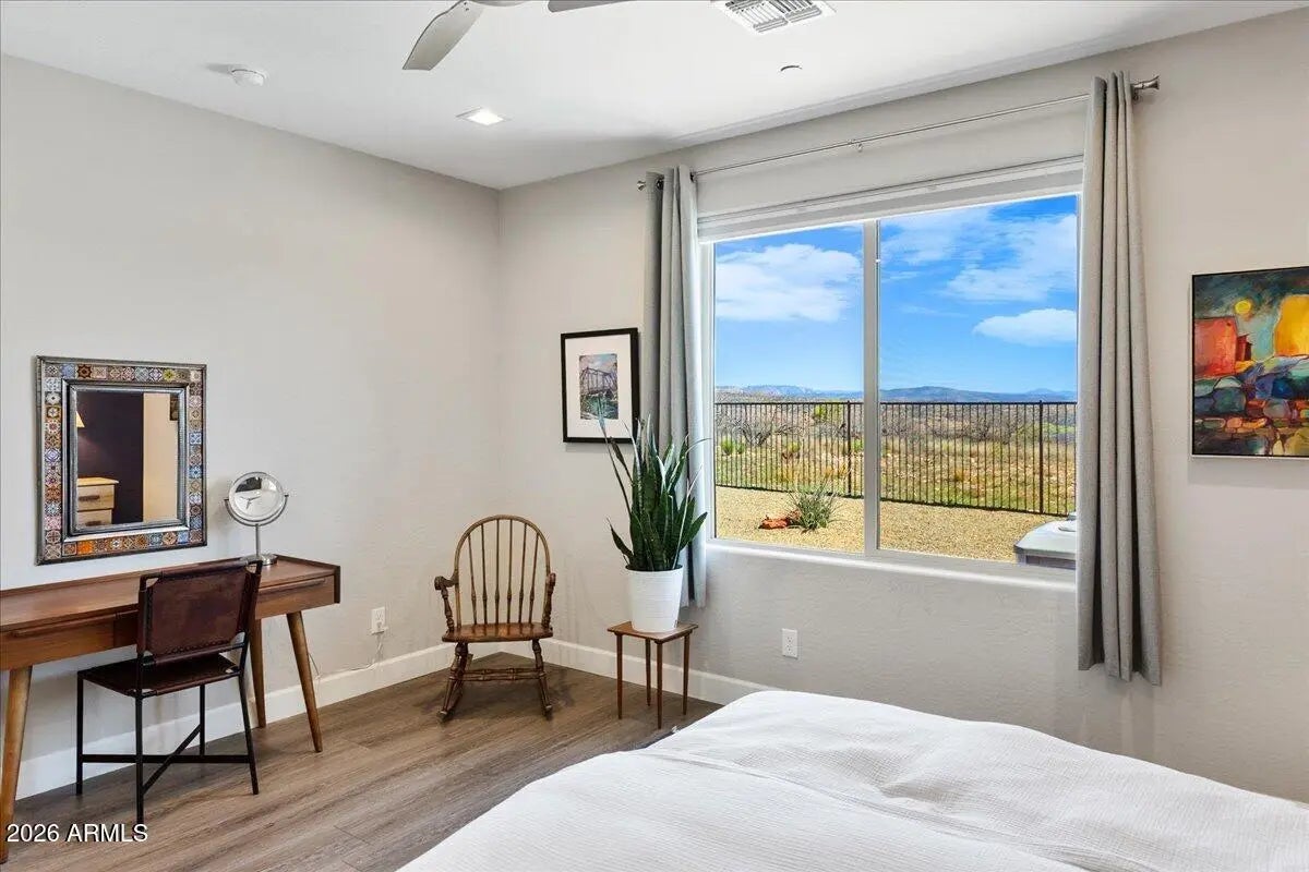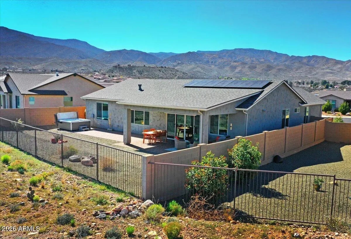 Perched on what is arguably the premier view lot in the entire Verde Valley, this rare Highlander plan delivers a level of luxury, privacy, and panoramic scenery that is almost impossible to find. Perfectly positioned on an expansive .17-acre cul-de-sac homesite, the property captures breathtaking, unobstructed hillside views that stretch across Sedona's iconic red rocks and the cottonwood-lined Verde River Valley from the rear, while showcasing sweeping vistas of historic Jerome and majestic Mingus Mountain from the front. The rear vista also offers an opportunity to enjoy and observe the vast wildlife in the area, including javelina, mule deer, coyotes, and a variety of birds--especially raptors--creating a natural sanctuary just steps from your home. Adding to the property's exceptional livability, the yard has been thoughtfully enhanced with perimeter animal fencing and gated closure, allowing pets to safely enjoy the outdoor space while preserving the clean aesthetic and expansive views of the landscape. Inside, the highly sought-after Highlander design lives far larger than its footprint thanks to its bright, open, and beautifully separated split floorplan. Even more rare is the four-bedroom configuration paired with an extended three-car garage, offering exceptional flexibility for guests, home offices, or multigenerational living. Walls of glass frame the extraordinary scenery, highlighted by a 12-foot sliding glass door that opens to an extended outdoor great room, creating seamless indoor-outdoor living against a breathtaking natural backdrop. The interior showcases nine-foot ceilings, eight-foot interior doors, a modern linear fireplace, and luxury vinyl plank flooring throughout, along with a true gourmet kitchen featuring a built-in gas cooktop and expansive workspace--thoughtfully designed for both everyday living and elegant entertaining. This Mandalay iON Home is built for the future with advanced efficiency and technology, including solar and energy storage readiness, a REME HALO whole-home air purification system, and a Prometheus solar system with 24 panels installed in 2024. A new CertainTeed shingle roof installed in 2025 adds long-term peace of mind. Luxury details continue throughout the home with a Rachiele custom stainless farmhouse sink, reverse osmosis water system, Container Store Elfa custom closet systems, integrated security system, and a whole-great room audio system with surround sound extending to the outdoor living space. The home is also equipped with custom wiring service panels ready for a future hot tub and sauna. The extended insulated three-car garage with epoxy flooring is equally impressive, featuring eight-foot garage doors, keyless entry, a service door, and a utility wash sink. Set at the end of a quiet and private cul-de-sac with an oversized driveway, this exceptional property combines rare design, cutting-edge upgrades, and one of the most spectacular panoramic view settings in the entire Verde Valley. A truly extraordinary opportunity to own a home that stands in a class of its own.