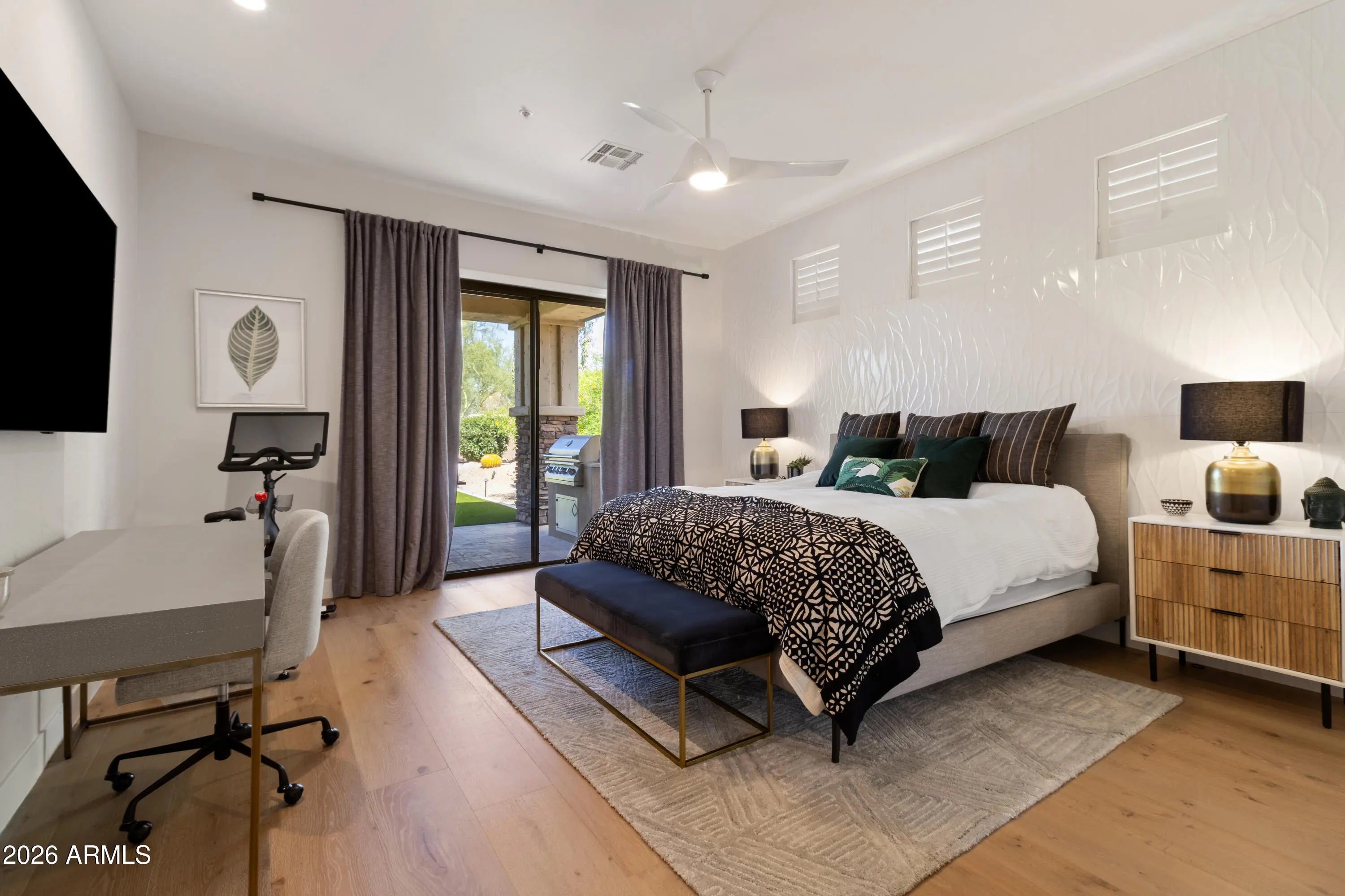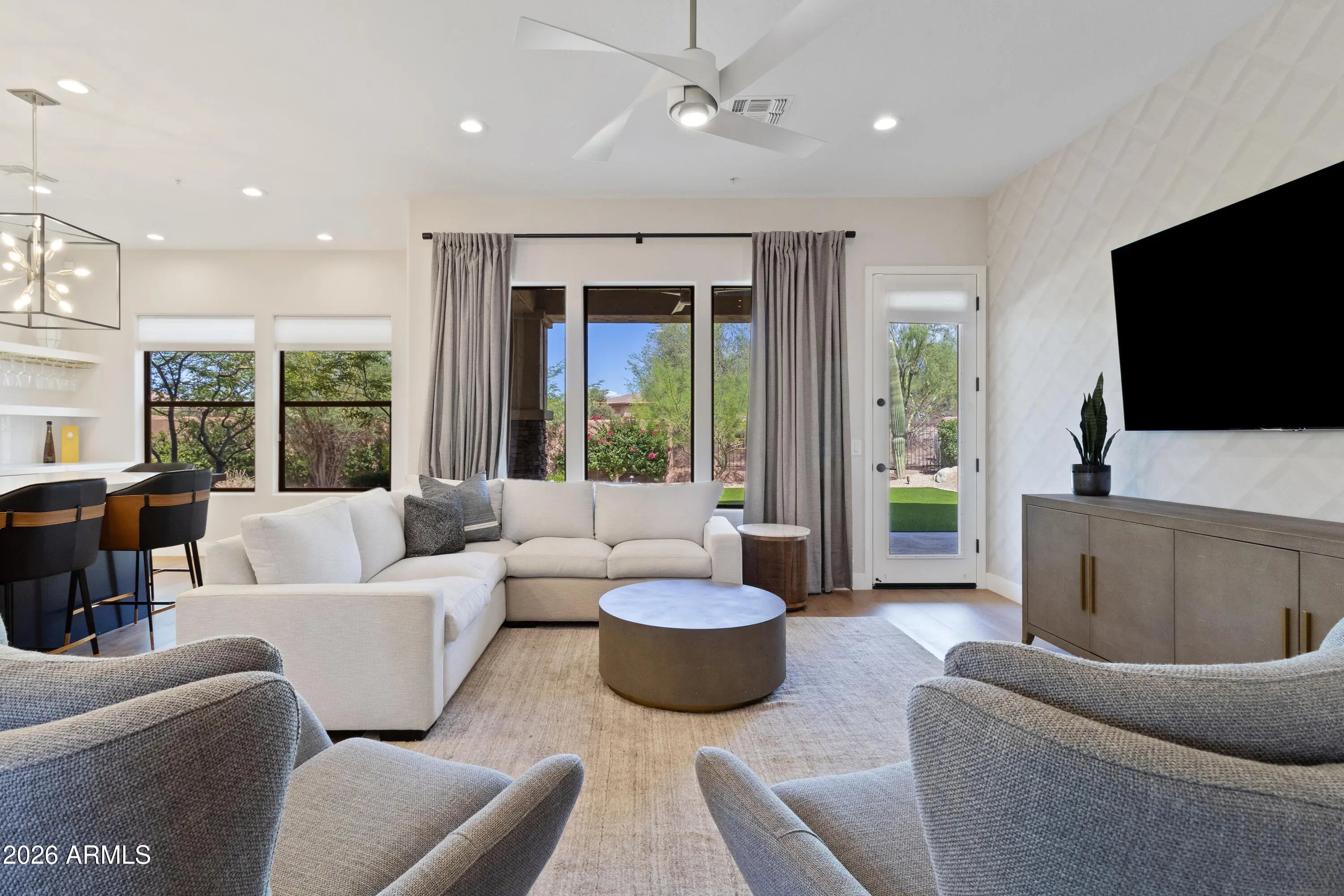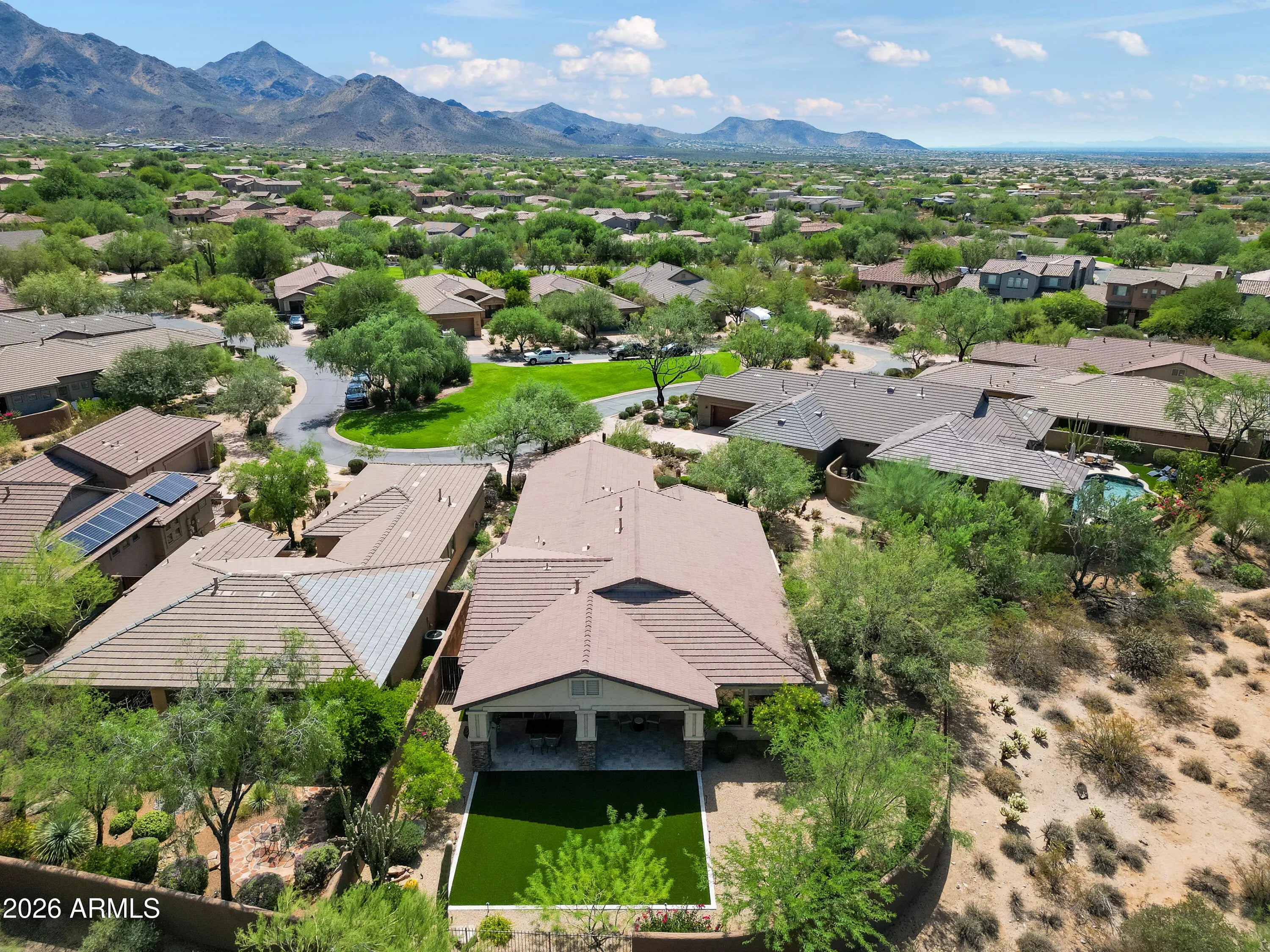 Discover luxury living in the highly sought-after DC Ranch community. This fully renovated, fully furnished 3-bedroom, 2-bath home offers 2,093 square feet of beautifully designed living space and is available for a long-term 12-month lease. The open-concept floor plan features wood flooring, abundant natural light, and a spacious living area ideal for both relaxing and entertaining. The upgraded kitchen includes stainless steel appliances, a Jura ENA8 coffee machine, wine refrigerator, wet bar, and ample counter space. The kitchen flows seamlessly into the family room with direct access to the private backyard. The primary suite offers a comfortable retreat and includes a Peloton bike. The renovated primary bathroom features a spa-style layout with a glass-enclosed shower and soaking tub Two additional bedrooms are fully furnished and thoughtfully designed for guests or additional occupants. The backyard is professionally landscaped with desert plants, artificial turf, and a built-in grill - perfect for outdoor entertaining. The garage includes built-in storage cabinets and an EV charging station. Located on a quiet private lot within DC Ranch, residents enjoy access to the DC Ranch Community Center, which offers a heated pool and spa, fitness center, playground, tennis courts, basketball courts, and pickleball. The community also features approximately 12 miles of walking and hiking trails. Conveniently located near North Scottsdale's premier shopping, dining, and entertainment. Fully furnished rental - minimum 12-month lease required.