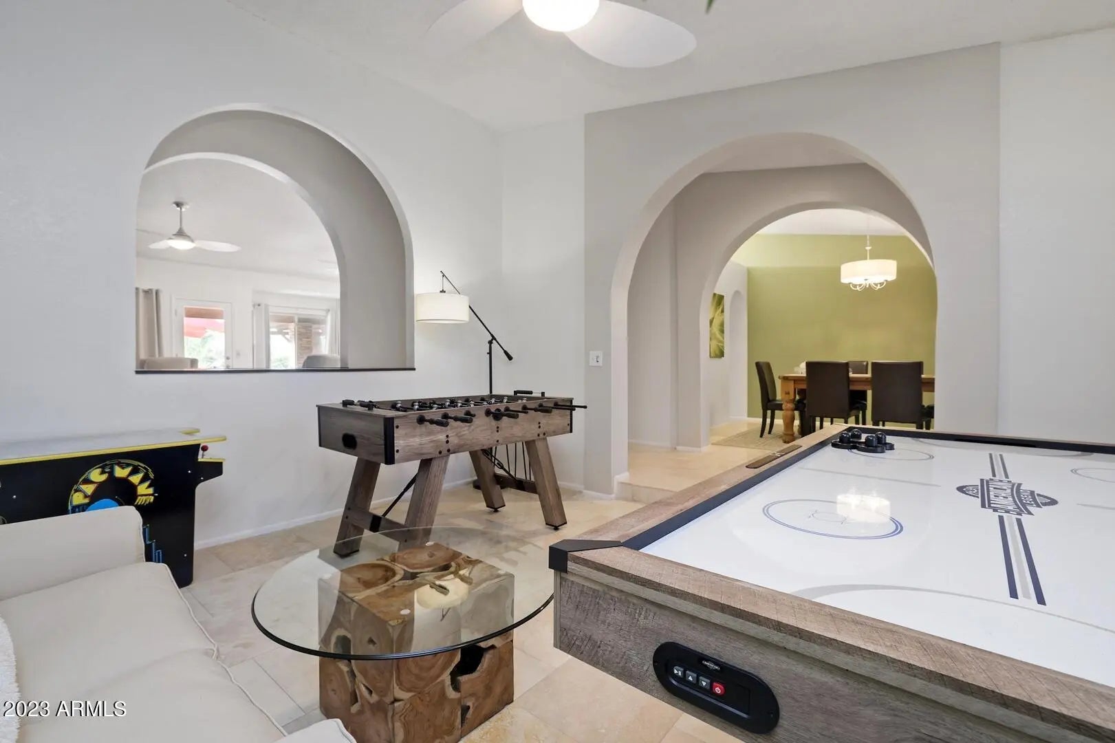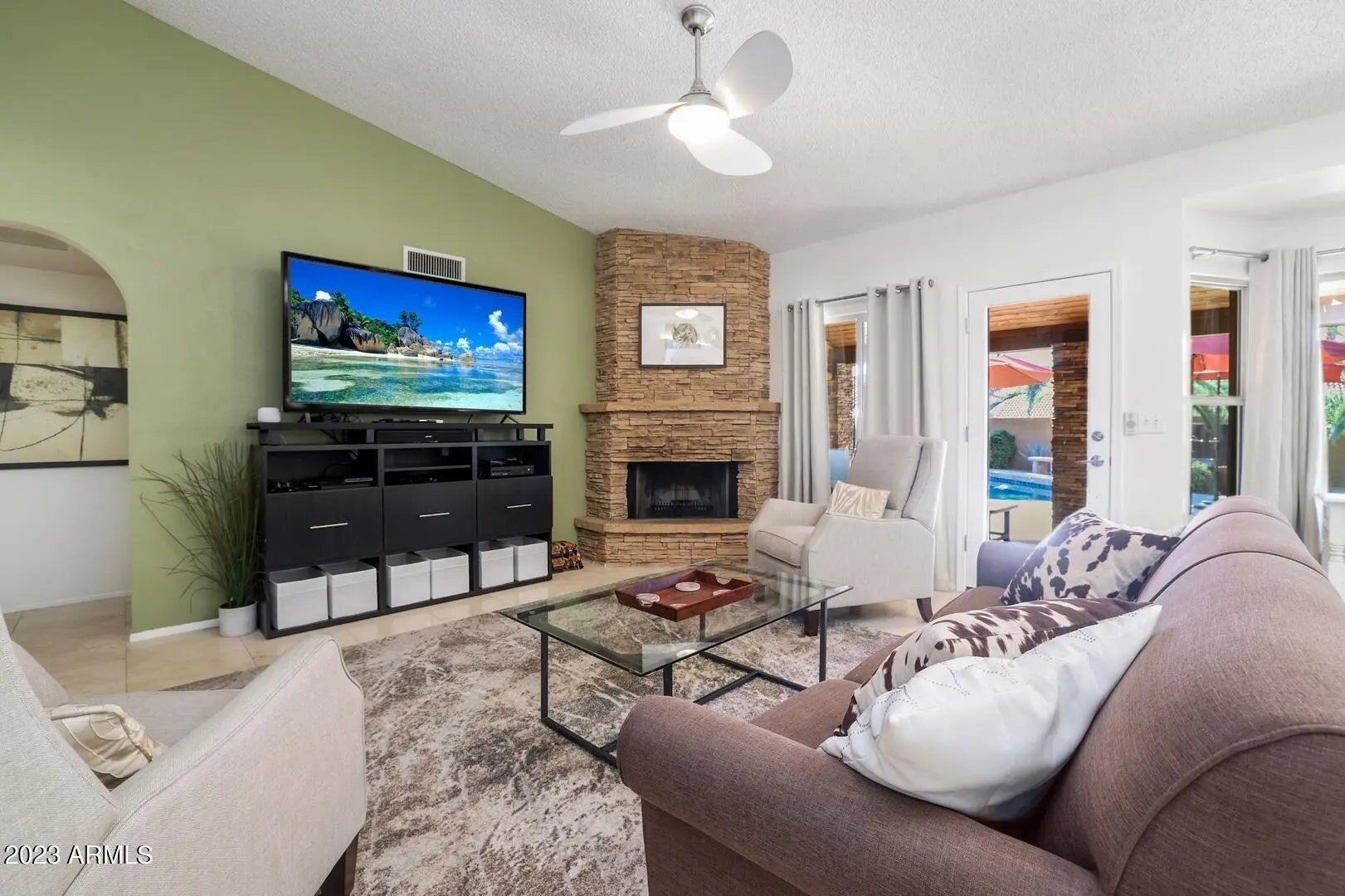 Looking for a beautiful, fully equipped home in a great location in sunny Scottsdale? Fun in the sun awaits you in this 2,336 sq. ft. getaway! Look no further, this tropical oasis awaits! Beautiful 4 bedroom, 2 bath home with a private pool and game room is the perfect getaway. Luxury awaits in both our indoor and outdoor entertainment areas! You're going to love it here.! This single-story home is ideal for families and groups, with sleeping space for up to 9 guests. . The living room with fireplace and comfortable couches open up to our backyard oasis which features beautiful backyard landscaping with lounge chairs, outdoor dining furniture (tables and chairs), TV, a sparkling private swimming pool, an outdoor shower, BBQ grill, and more. The perfect home base for your stay!