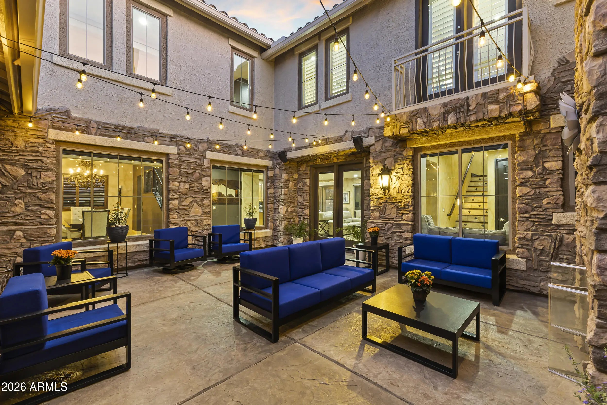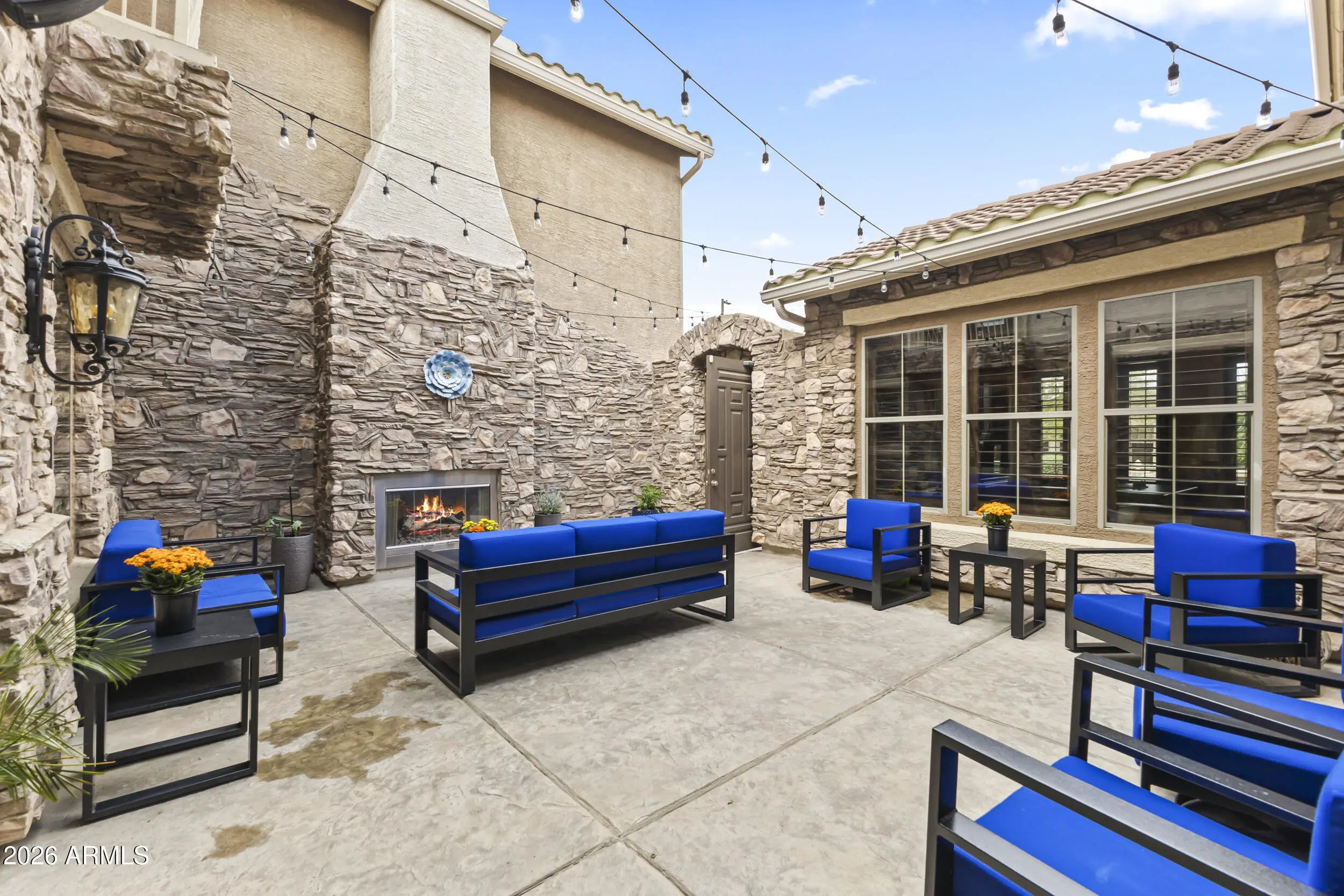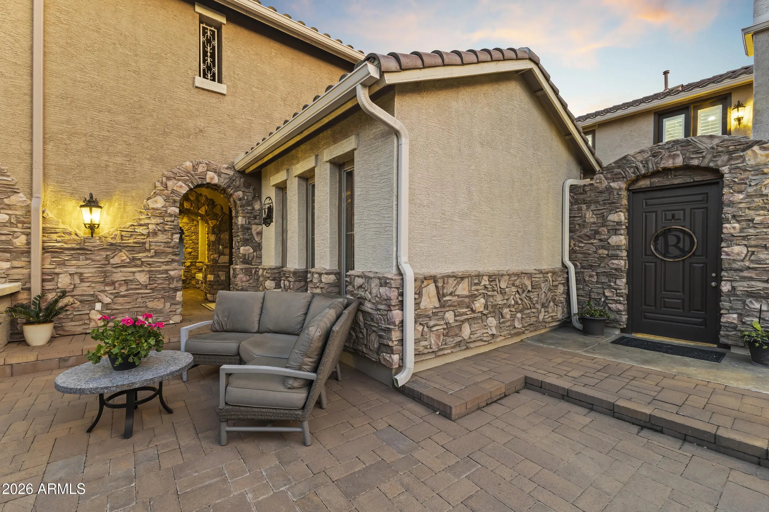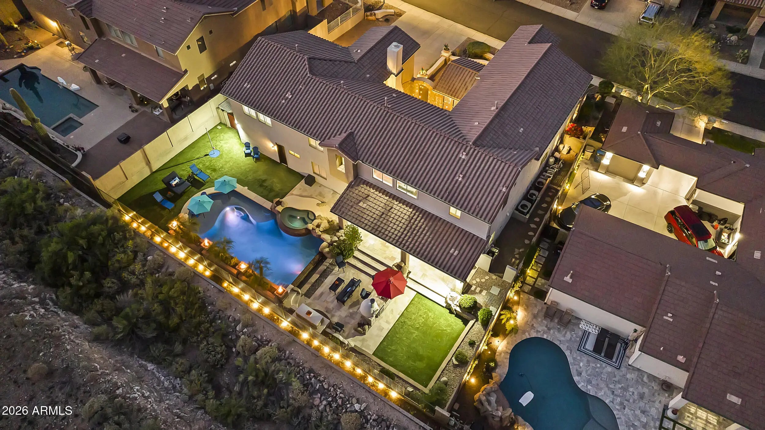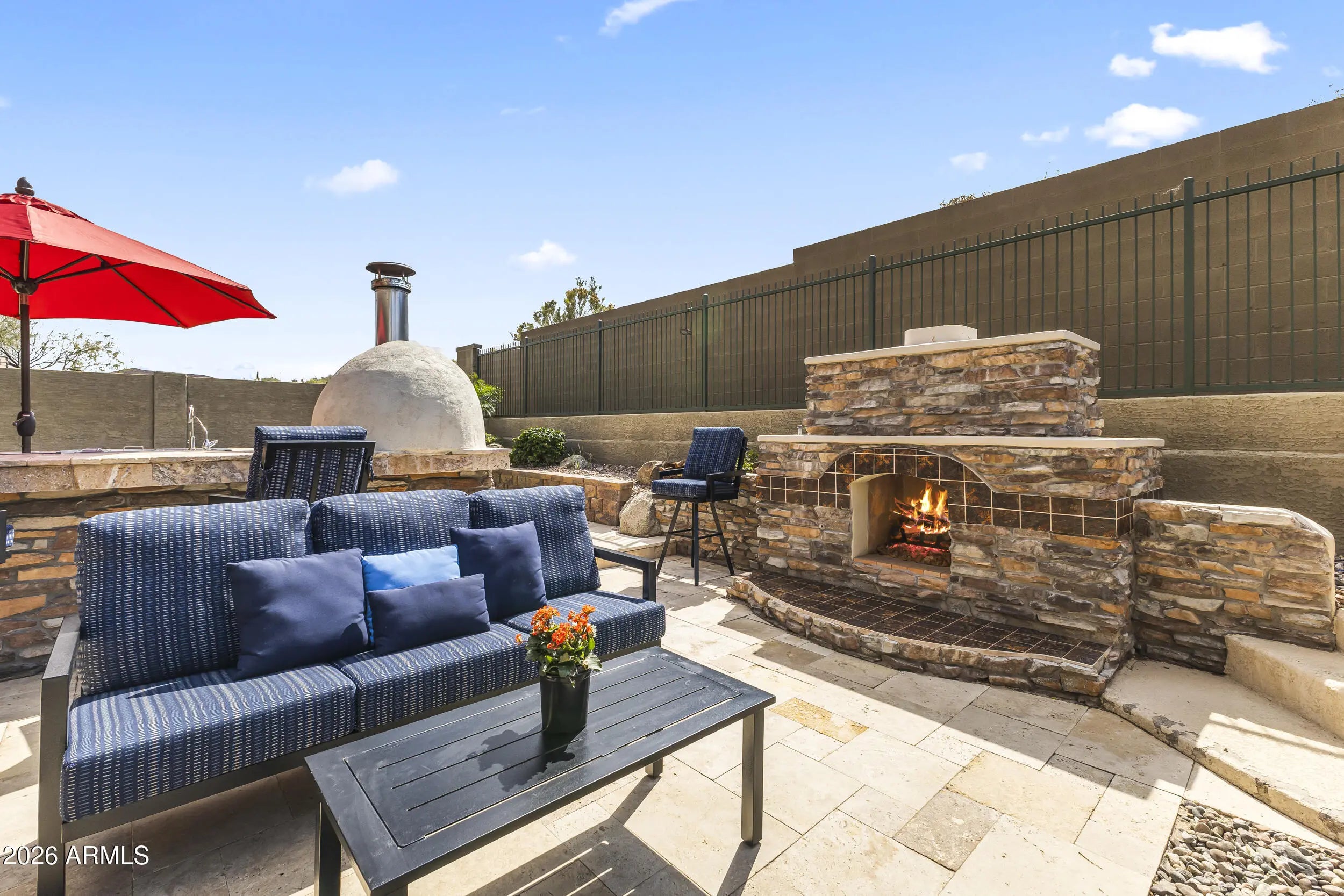 Introducing an exceptional Italian villa-inspired estate designed for elevated desert living, where timeless architecture meets modern next-generation functionality. Perfectly positioned to capture sweeping views of the Sonoran Desert, this residence offers privacy, elegance, and seamless indoor-outdoor living. From the moment you arrive, a dramatic stacked-stone entry sets the tone for the craftsmanship found throughout the home. Inside, rich textures and refined finishes frame expansive living spaces anchored by statement stacked-stone fireplaces, creating a warm yet sophisticated ambiance ideal for both intimate gatherings and grand entertaining. Designed with next-generation living in mind, the floor plan offers a main floor bedroom with en-suite bathroom perfect for multigenerationa living or executive work-from-home environments--blending independence with connection. Step outside to a true resort-style backyard retreat, the private setting includes artificial turf, stacked stone fireplace & the resort-inspired pool & spa invite relaxation under Arizona skies, while the custom outdoor kitchen elevates entertaining with a handcrafted pizza oven, perfect for unforgettable evenings with family and friends.Car enthusiasts will appreciate the generous parking for up to eight vehicles, offering both practicality & prestige. Recent improvements inside include: new kitchen appliances, new hot water heater & new plank flooring in downstairs bedroom; primary shower & closet remodeled. Exterior improvements include converting the pool to a salt water system, new pool pumps, new heat pump & self cleaning system. Outdoor roller shades provide another opportunity for a private space outside while also providing shade & security.