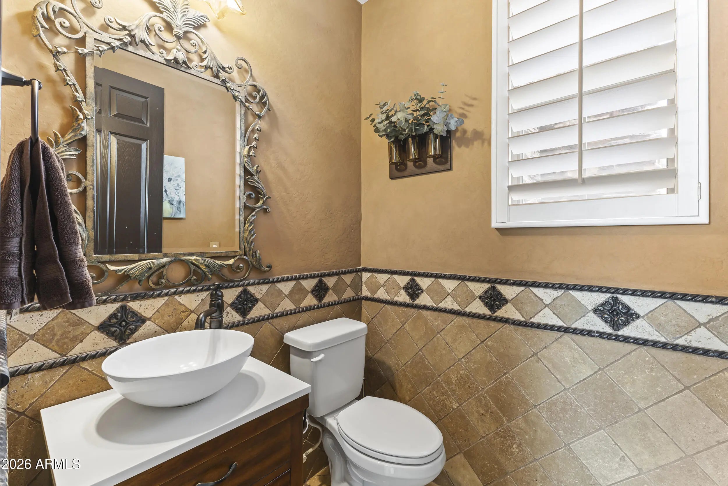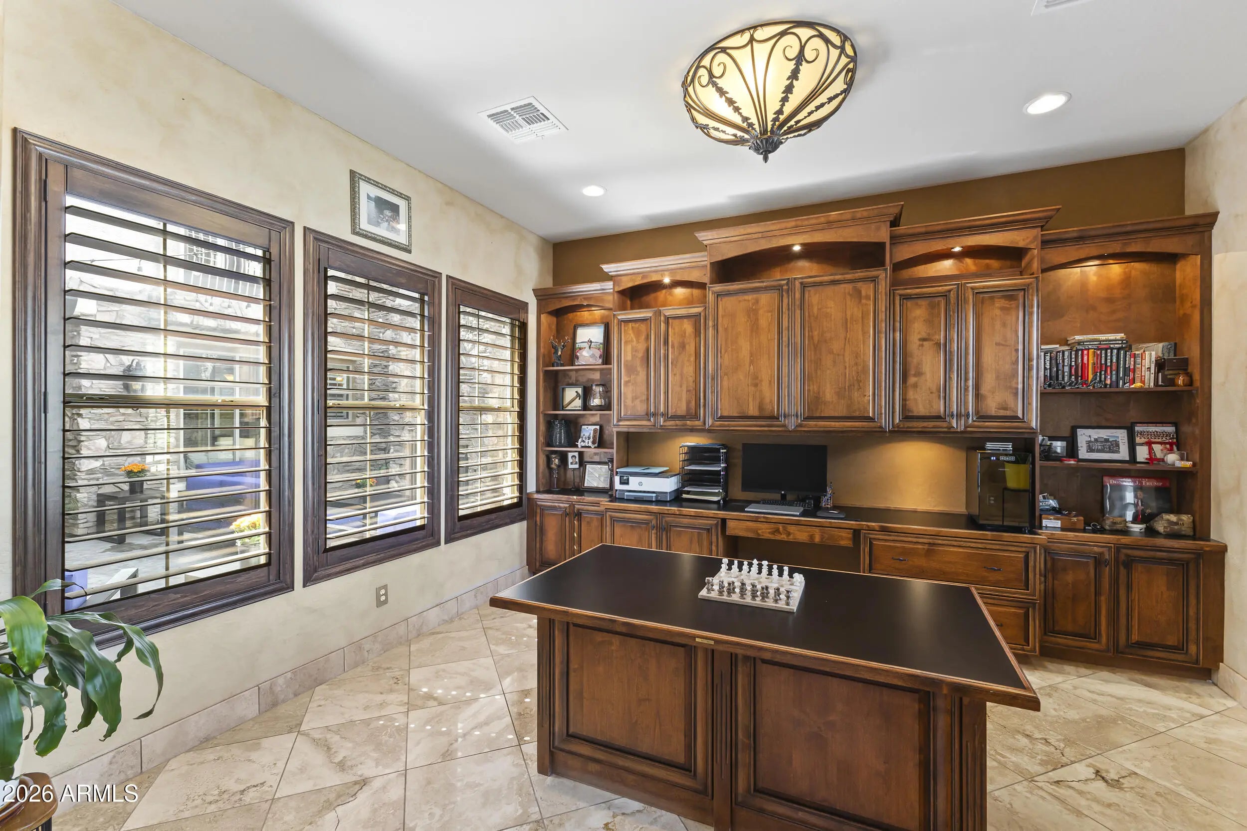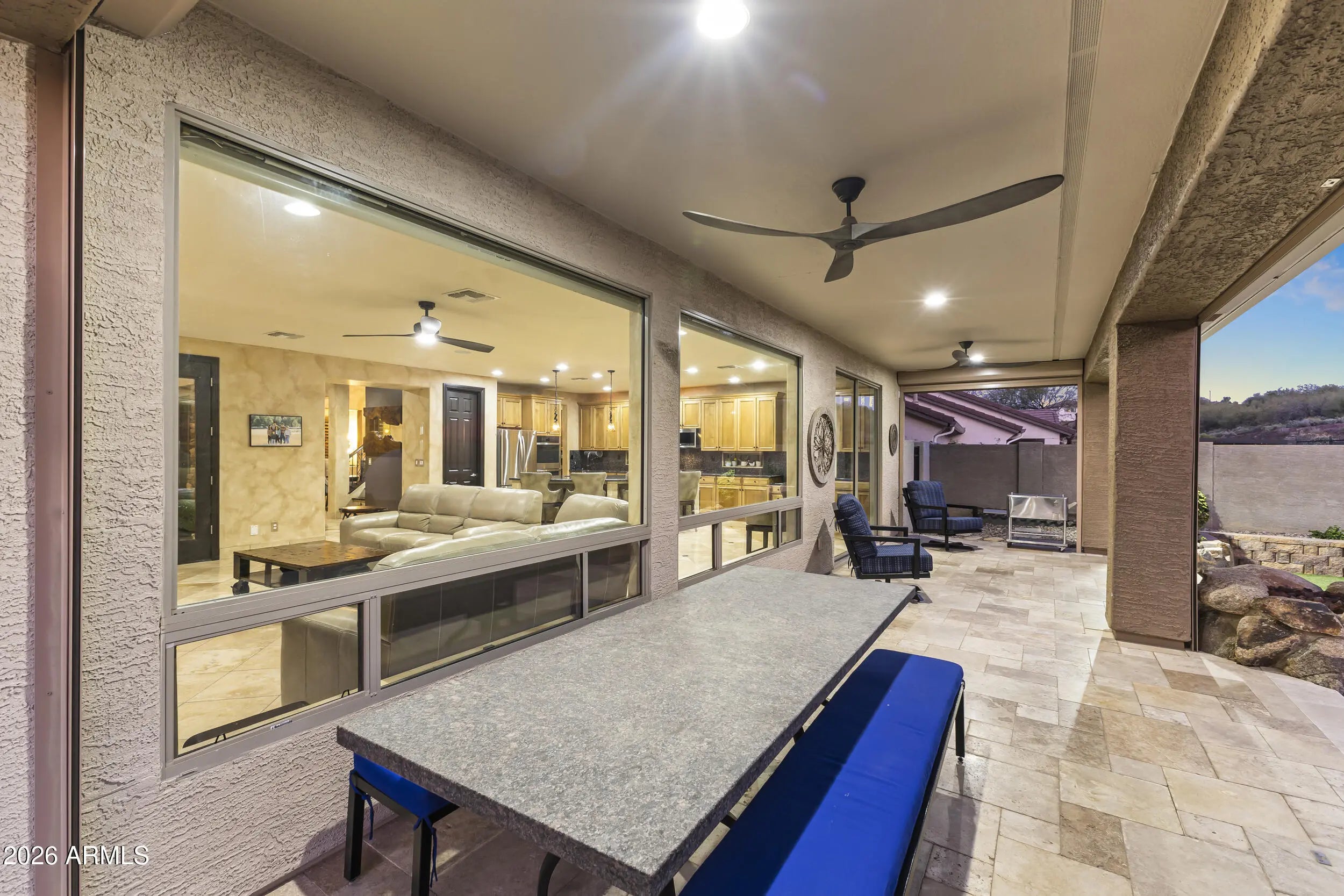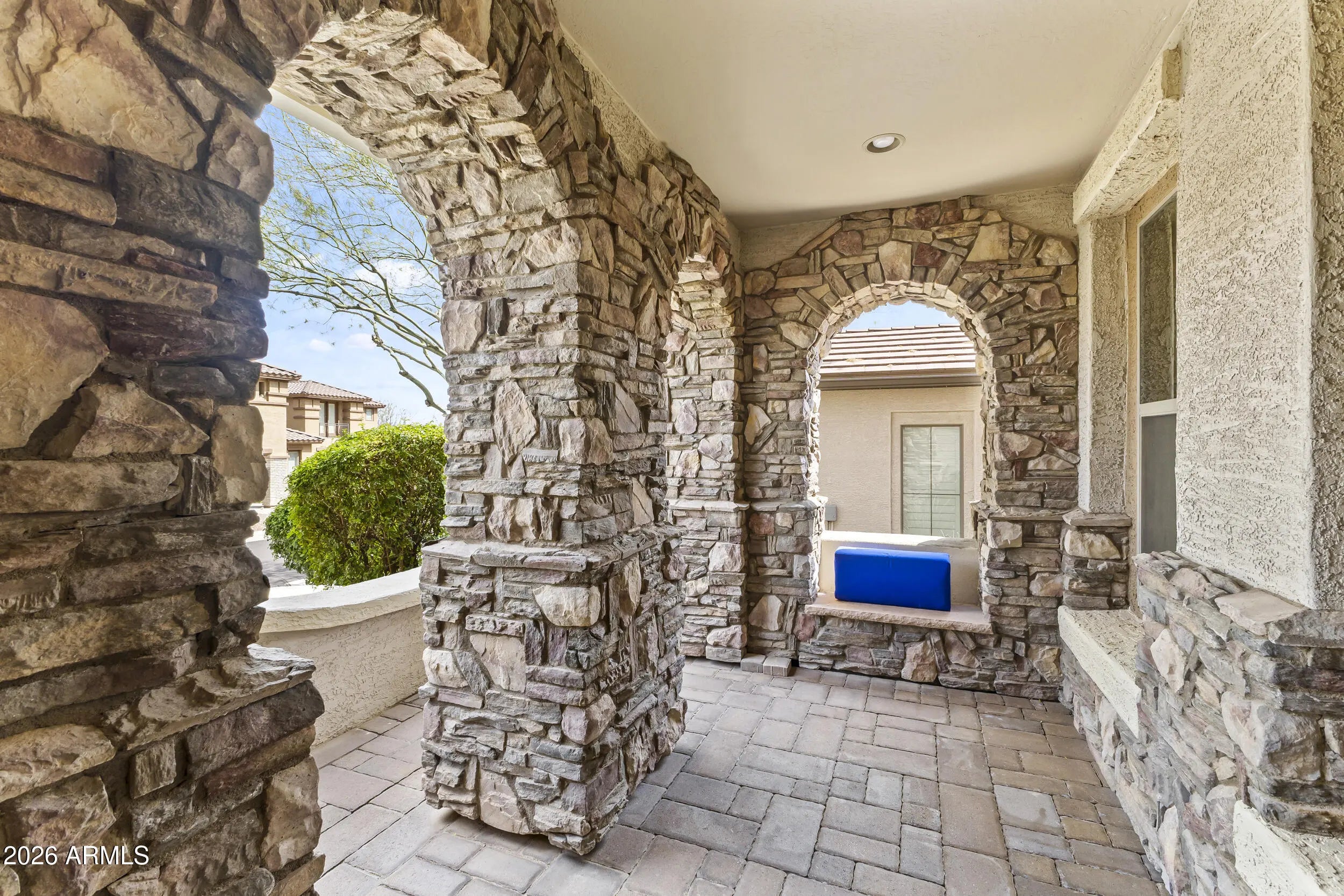 Introducing an exceptional Italian villa-inspired estate designed for elevated desert living, where timeless architecture meets modern next-generation functionality. Perfectly positioned to capture sweeping views of the Sonoran Desert, this residence offers privacy, elegance, and seamless indoor-outdoor living. From the moment you arrive, a dramatic stacked-stone entry sets the tone for the craftsmanship found throughout the home. Inside, rich textures and refined finishes frame expansive living spaces anchored by statement stacked-stone fireplaces, creating a warm yet sophisticated ambiance ideal for both intimate gatherings and grand entertaining. Designed with next-generation living in mind, the floor plan offers a main floor bedroom with en-suite bathroom perfect for multigenerationa living or executive work-from-home environments--blending independence with connection. Step outside to a true resort-style backyard retreat, the private setting includes artificial turf, stacked stone fireplace & the resort-inspired pool & spa invite relaxation under Arizona skies, while the custom outdoor kitchen elevates entertaining with a handcrafted pizza oven, perfect for unforgettable evenings with family and friends.Car enthusiasts will appreciate the generous parking for up to eight vehicles, offering both practicality & prestige. Recent improvements inside include: new kitchen appliances, new hot water heater & new plank flooring in downstairs bedroom; primary shower & closet remodeled. Exterior improvements include converting the pool to a salt water system, new pool pumps, new heat pump & self cleaning system. Outdoor roller shades provide another opportunity for a private space outside while also providing shade & security.