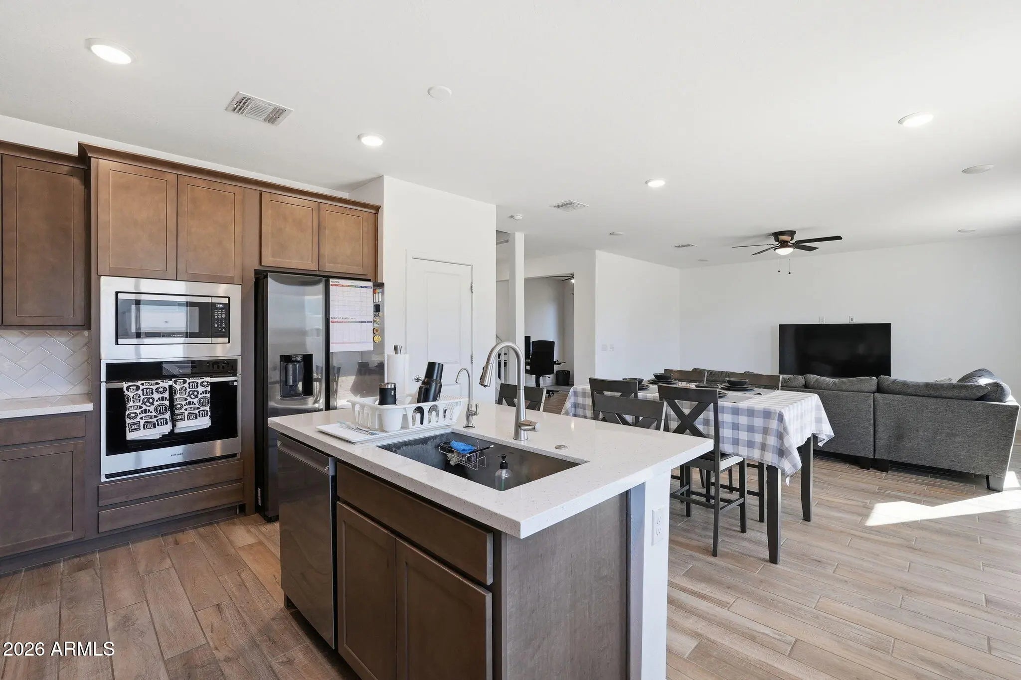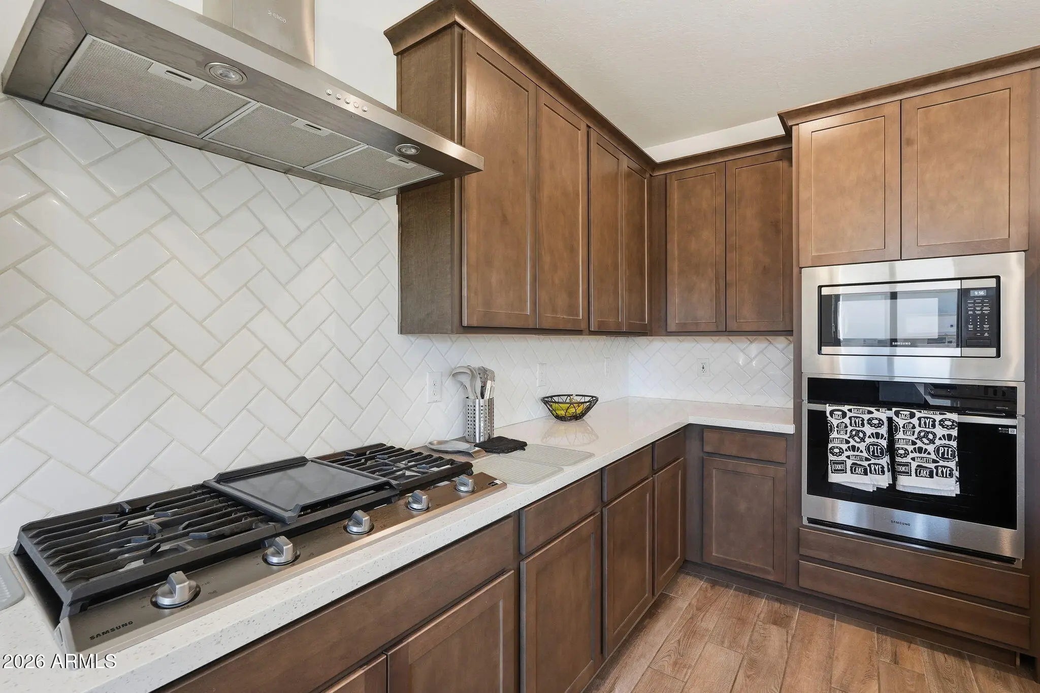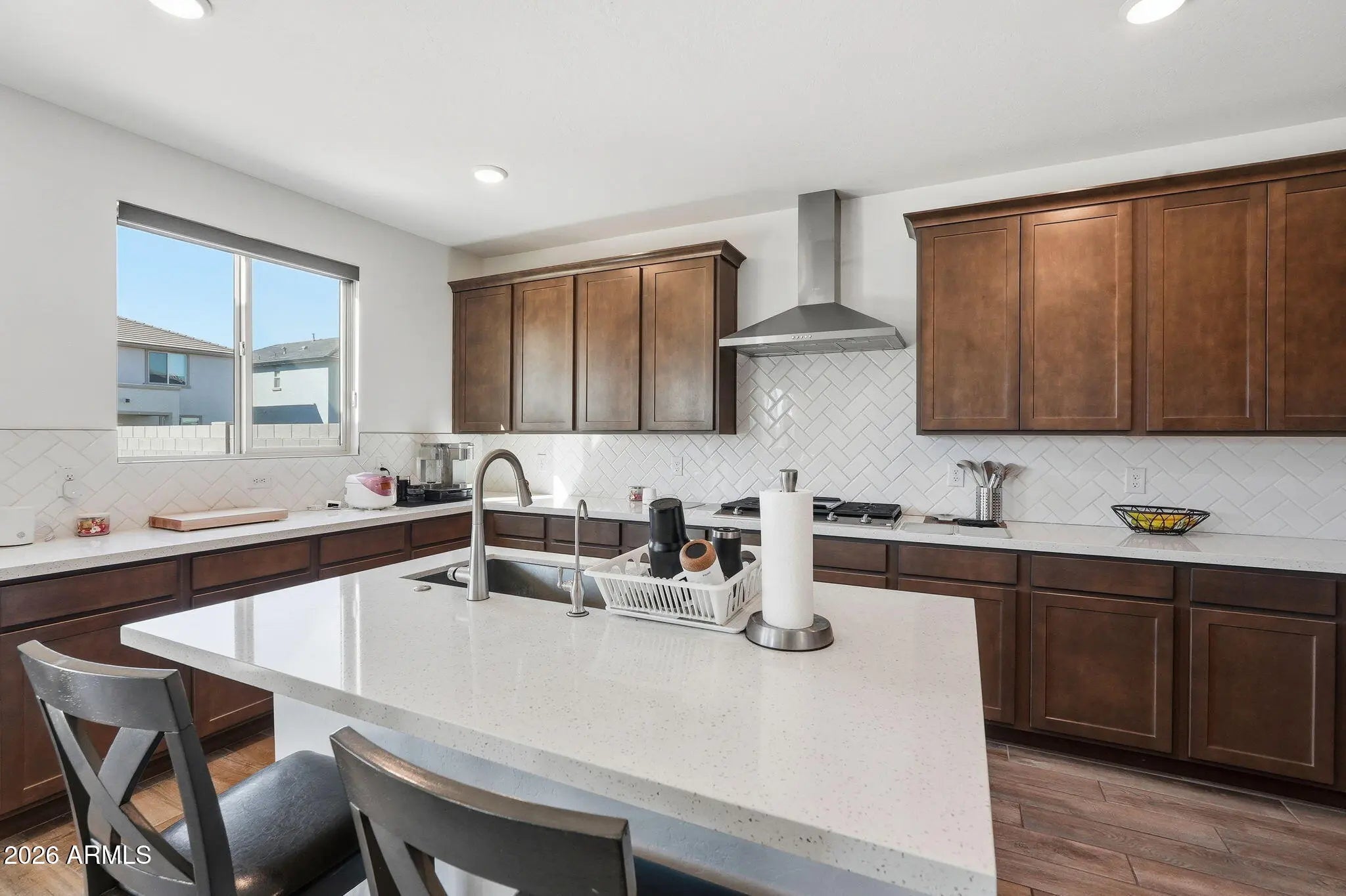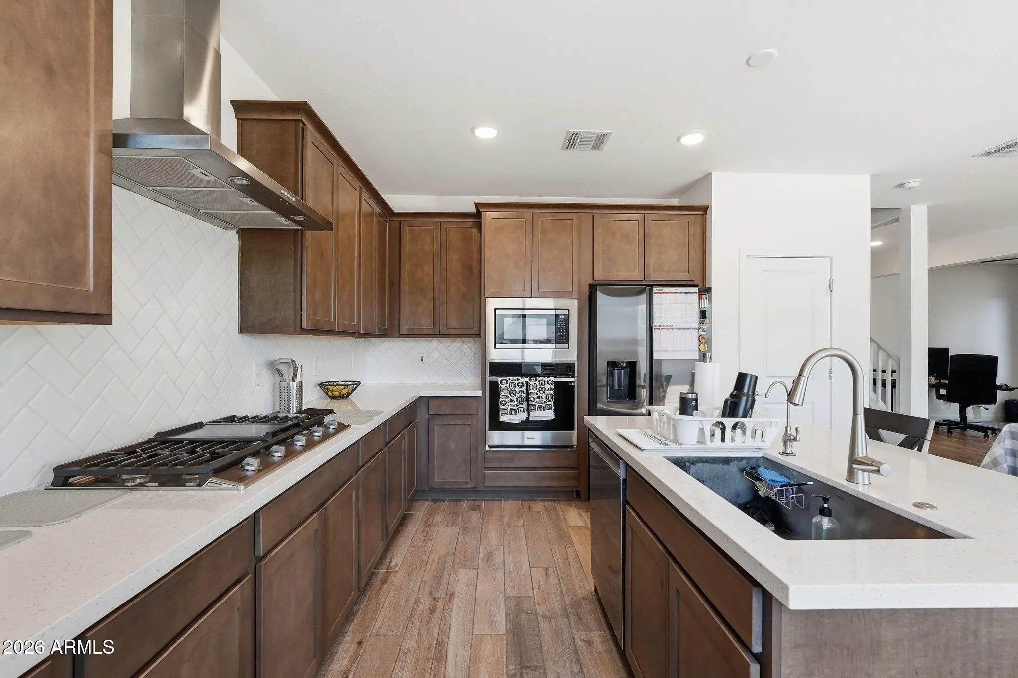 5.25% ASSUMABLE VA LOAN! Why wait for a new build when you can have this 2024 build. Save monthly with a 5.25% Assumable VA Loan! The Highlights: Chef's Dream: Gourmet kitchen w/ gas range & stainless hood. Luxury Upgrades: Wood-look tile & a owned $10k water softener system. Flex Living: Bedroom + full bath on the MAIN floor for guests or multi-generational living. Prime Location: Minutes from Loop 303, Luke Air Force Base and Lake Pleasant. Walk to Desert Oasis Elementary School. This is the move-in-ready home you've been waiting for!