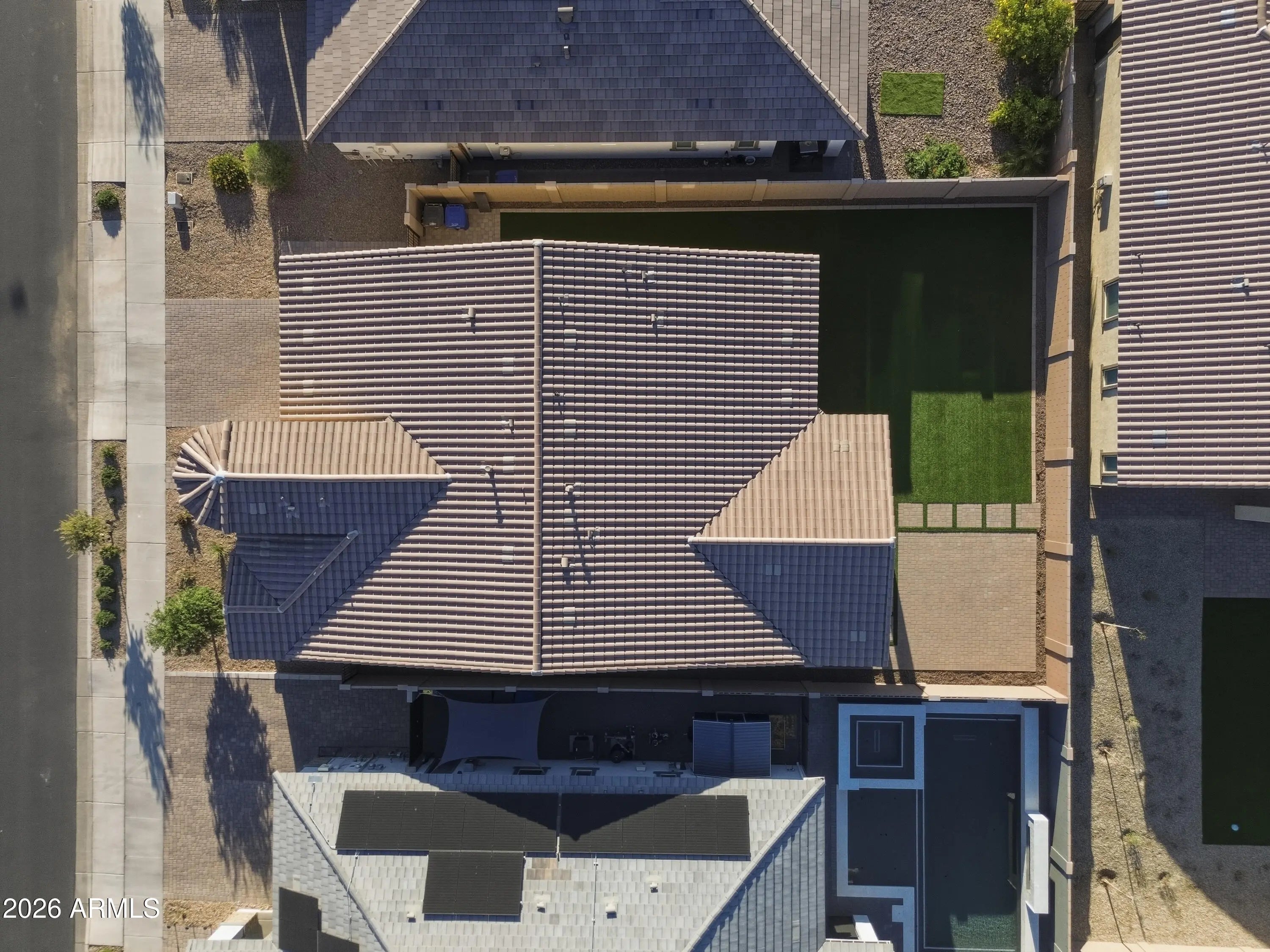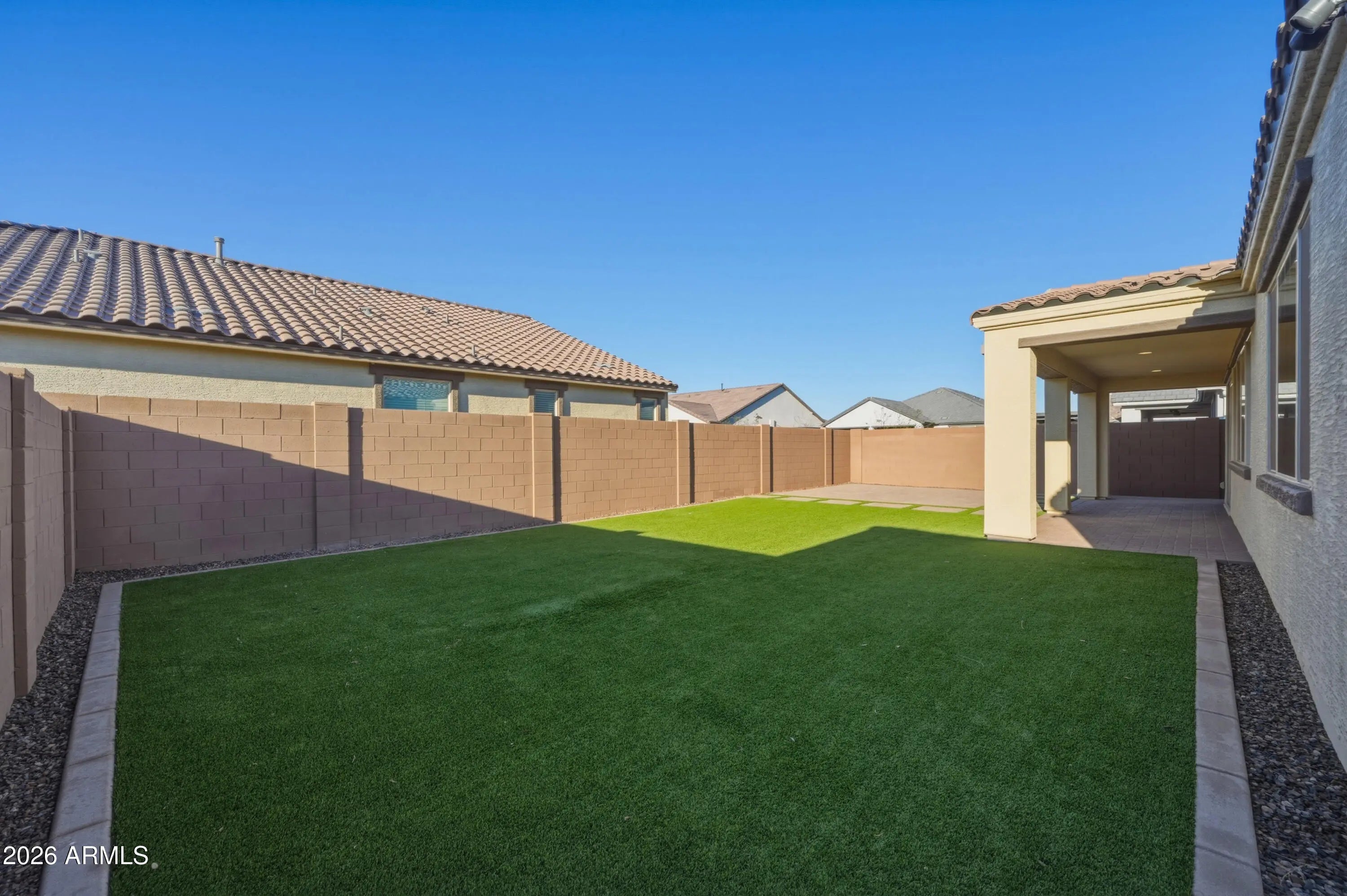 North/South Exposure, Sprinklers In Rear, Sprinklers In Front, Synthetic Grass Back, Natural Desert Front