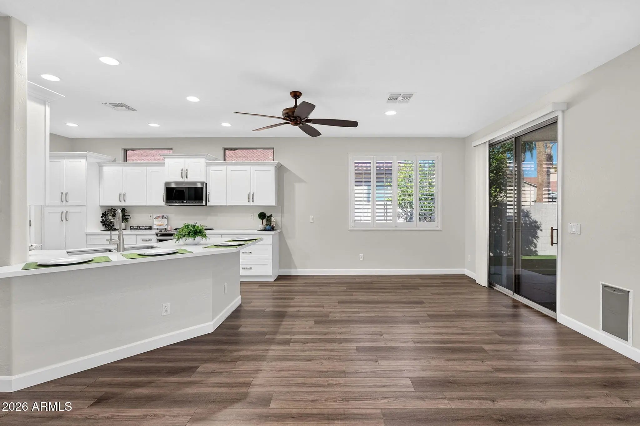 This well-appointed single story residence is situated within the gated community of Ironwood Vistas. The interior features an open-concept floor plan with a modern kitchen, fresh interior paint throughout, and an efficient layout comprising three bedrooms, a flexible space suitable for a 4th bedroom, den, playroom, or exercise room, and two full bathrooms. The expansive covered patio, finished with flagstone and overlooking artificial turf, offers a functional and low-maintenance outdoor area ideal for relaxation or entertaining. Community amenities include a pool, spa, and basketball courts. The property enjoys a prime Chandler location with close proximity to restaurants, shopping, highly rated schools, and convenient access to the 202 freeway.
