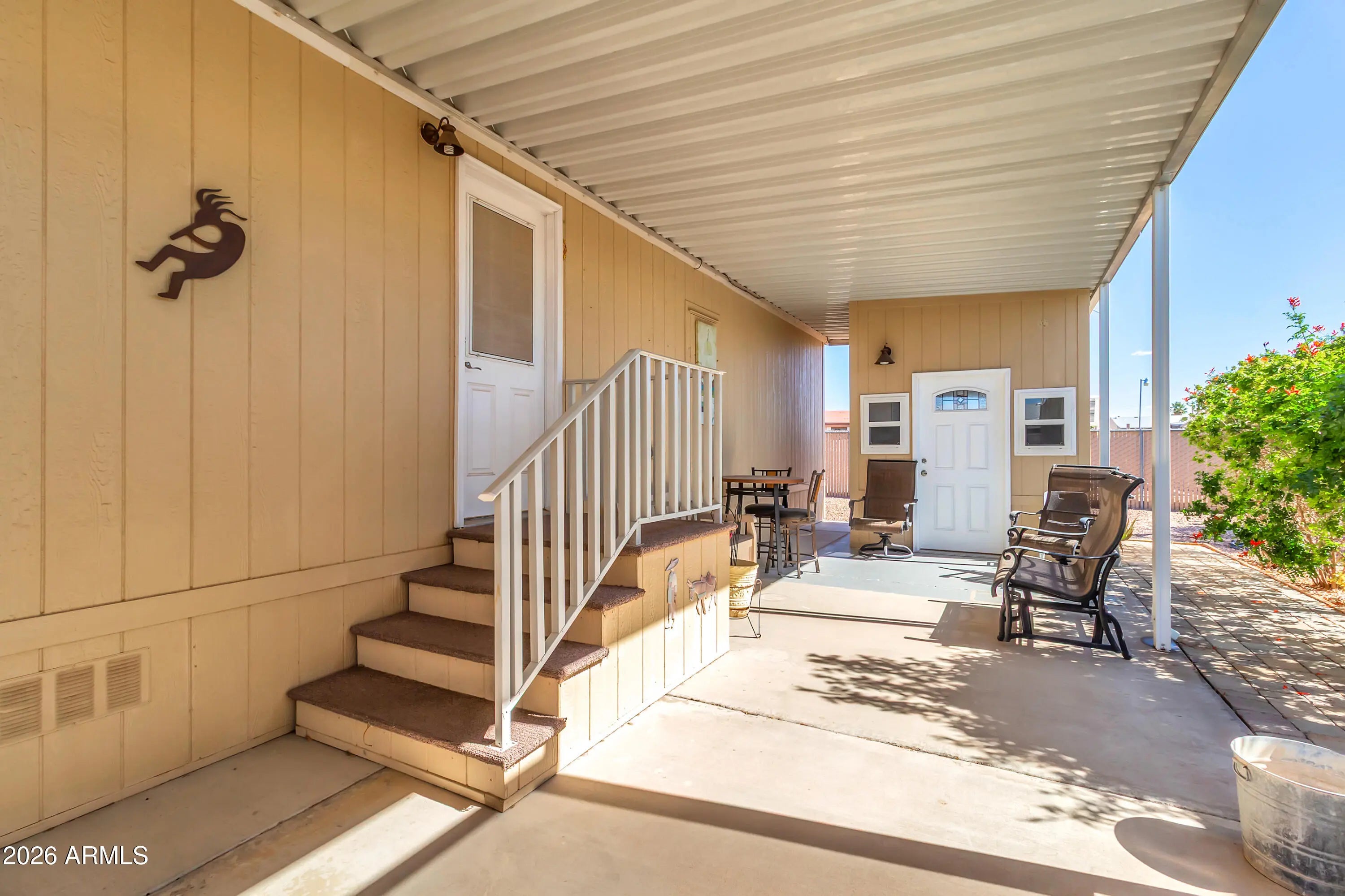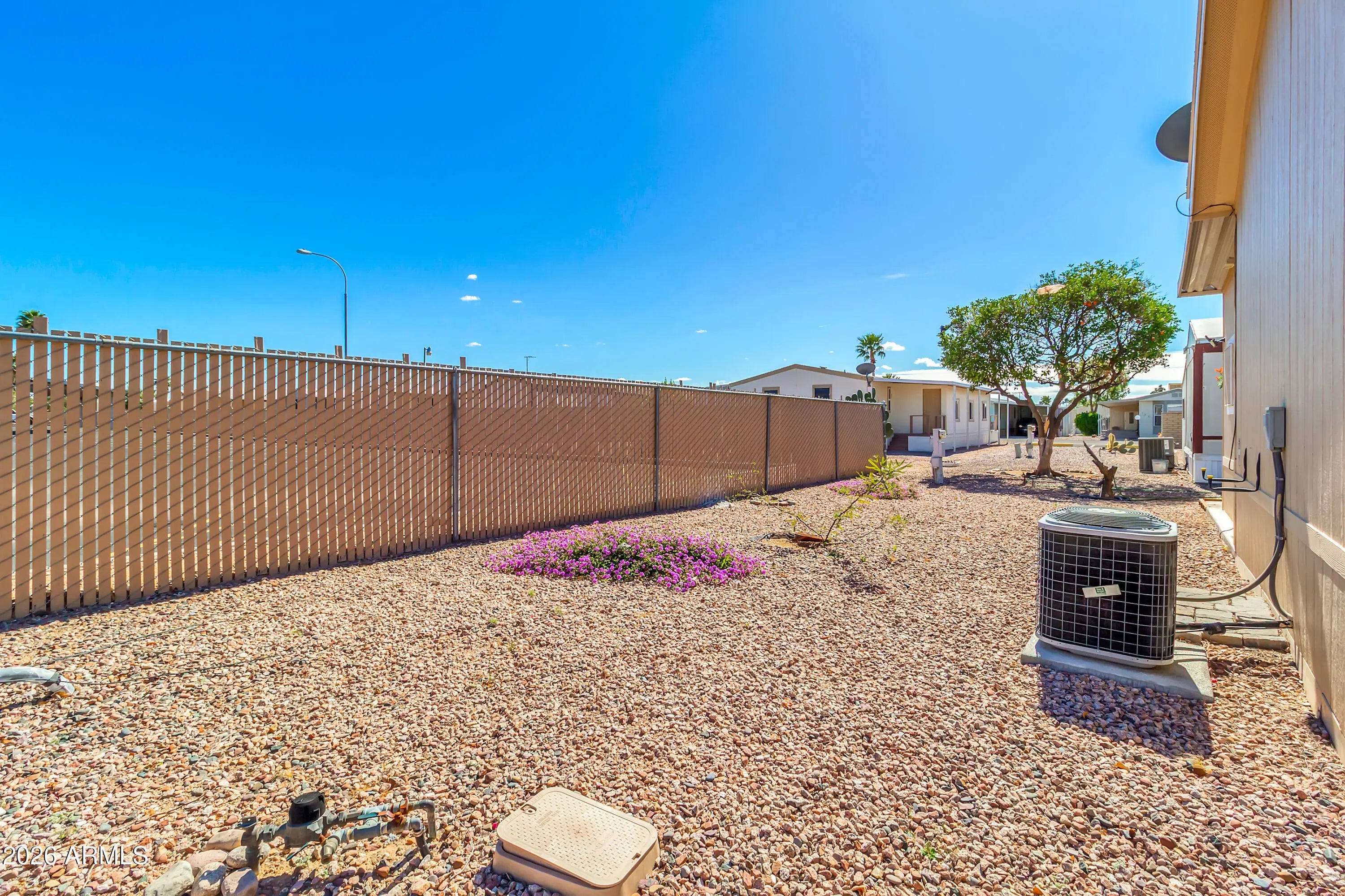 Welcome to this gently used 2015 2BR/2BA home in the popular Ellsworth Springs community, perfectly situated near shopping and medical facilities. This sheet-rocked unit features vaulted ceilings, dual-pane windows, and a private perimeter lot with a pet-friendly backyard where fencing is permitted. Relax on the front porch or enjoy the open living area and step-saver kitchen, complete with a tile backsplash, pantry, and full appliances. The primary suite offers a walk-in closet, built-in cabinets, and a barn door leading to a convenient walk-in shower. Highlights include a second patio with shade screens, 2-car tandem covered parking, a powered storage shed, and an included front-loading washer/dryer. With lot rent at $1,125, this move-in-ready gem is waiting for you. Welcome to your dream oasis! This stunning and meticulously maintained 2-bedroom, 2-full bath home perfectly blends cozy charm with a modern, airy feel that you have to see to believe. From the moment you pull up to the massive covered carport, you'll fall in love with the crisp curb appeal and low-maintenance desert landscaping. Step inside to an impressive open-concept kitchen featuring rich wood cabinetry, sleek white appliances, and a convenient breakfast bar that flows seamlessly into a bright, vaulted living area--perfect for entertaining or quiet nights under the glow of your elegant chandelier. The smart, split-bedroom floor plan ensures maximum privacy, while the dedicated laundry room with high-end front-loading appliances and extra storage makes chores a total breeze. Retreat to your spacious primary suite or head outdoors to the expansive covered patio, an incredible space for morning coffee or sunset dinners while enjoying the peace of this quiet, friendly community. Need extra space? The property includes a large storage shed to keep your life organized. Plus, you'll have full access to fantastic community amenities including a sparkling pool and an active clubhouse. This home isn't just a place to live; it's an upgraded lifestyle waiting for you to move right in!