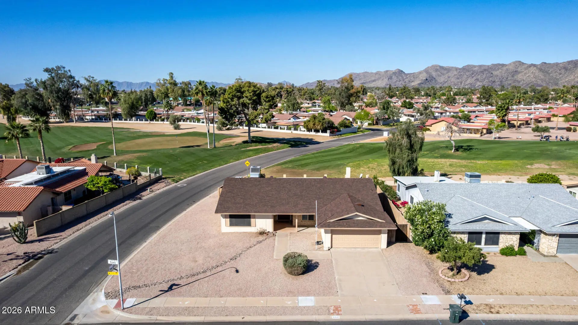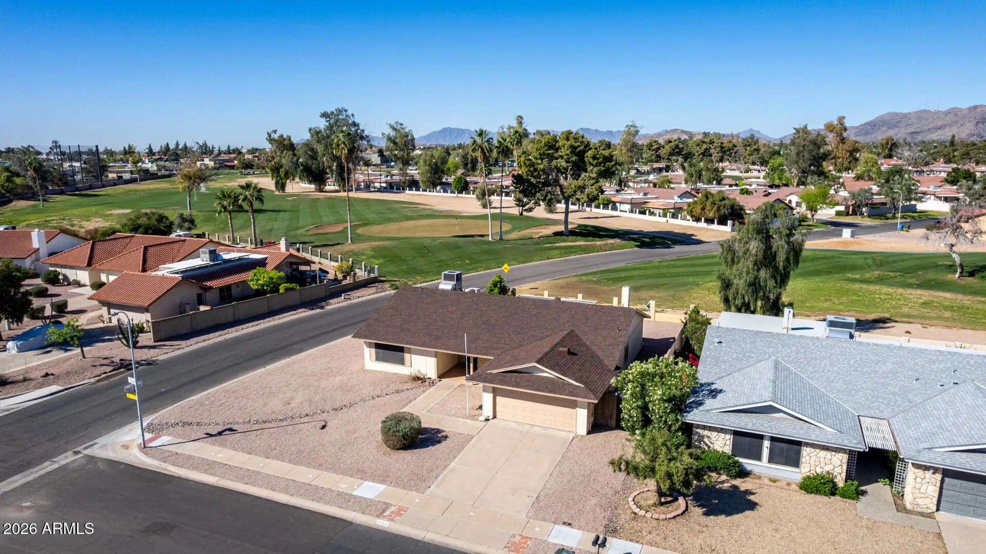 Premium corner lot in a popular 55+ community welcomes you to this single level gem that backs to the Ahwatukee Country Club golf course! Walk in the front door and enjoy the expansive views right from the living room! This inviting home features an open layout, plantation shutters, lots of natural light, fresh paint inside and out, a kitchen with granite counters, updated cabinetry, stainless steel appliances and a huge breakfast bar! There's also a den for hobbies, an office or a 3rd bedroom! Washer and dryer stay in the huge laundry room, along with an extra refrigerator! Two-car garage with built in cabinets offer so much storage space! Enjoy tranquil mountain & golf course views and a favorite beverage right from your backyard's extended covered patio! This one will WOW you!