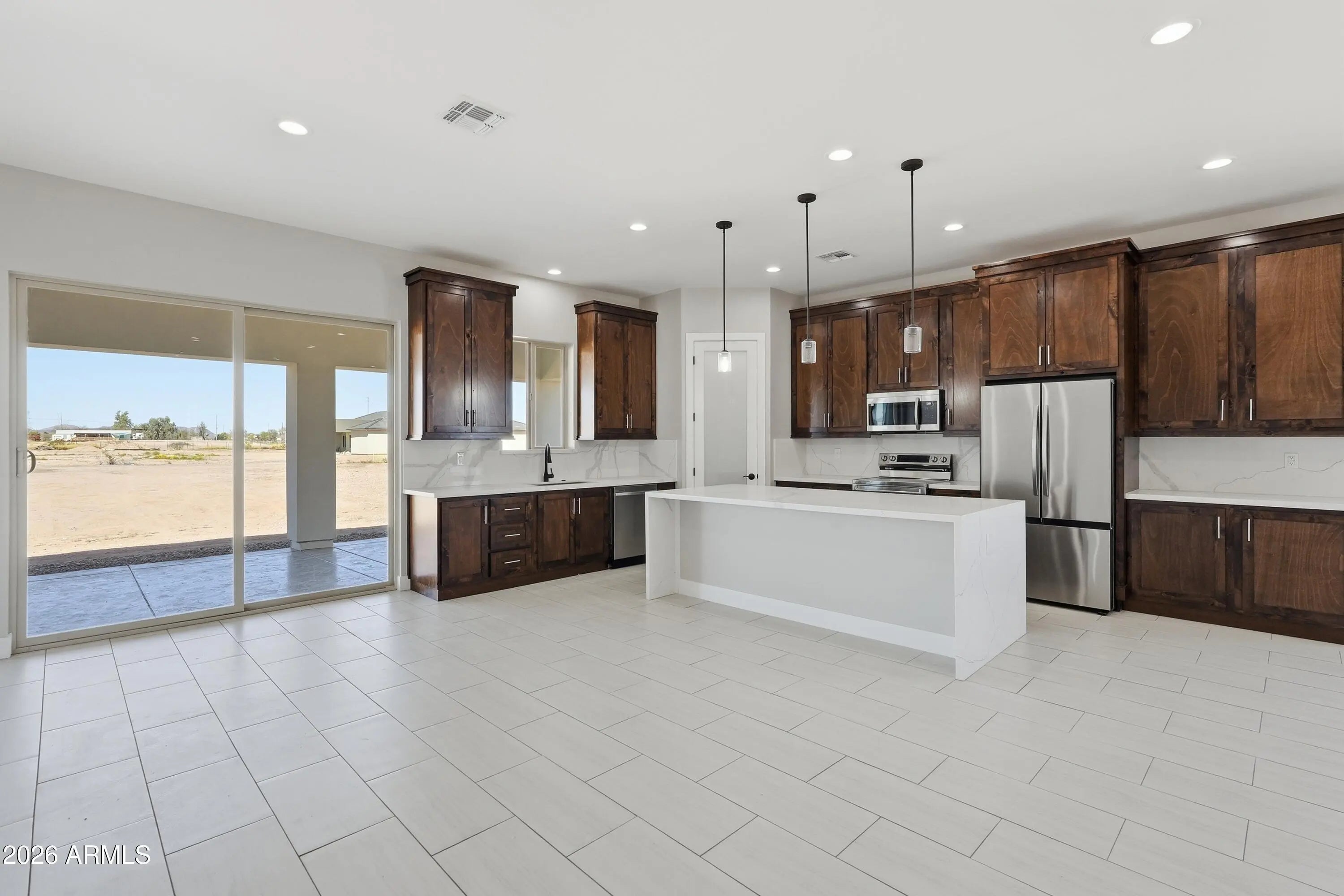 Stunning Custom Home on Over an Acre in Tonopah - No HOA & Horse Privileges! Discover this beautiful 4 bedroom, 3 bathroom, 3 car garage custom home situated on over an acre of land in Tonopah, AZ, offering space, privacy, and endless possibilities. With no HOA and horse privileges, this property is perfect for those looking for freedom and room to grow. The heart of the home features stunning custom-made alder wood kitchen cabinets, a spacious kitchen island, quartz countertops, and stainless steel appliances, creating the perfect chef's kitchen for cooking and entertaining. Inside, you'll find tile flooring throughout the entire home, providing both durability and elegance. The bathrooms showcase exquisite tile work and beautiful finishes. The spacious primary bedroom offers comfort an privacy, along with a huge walk-in closet. A junior suite with its own private bathroom makes an ideal space for guests or multi-generational living. Enjoy Arizona living with front and back porches finished with epoxy, perfect for relaxing and taking in the surrounding desert views. The 3-car garage also features epoxy flooring, adding both style and durability. All of this sits on over an acre of land, giving you plenty of space for horses, toys, workshops, or future additions.