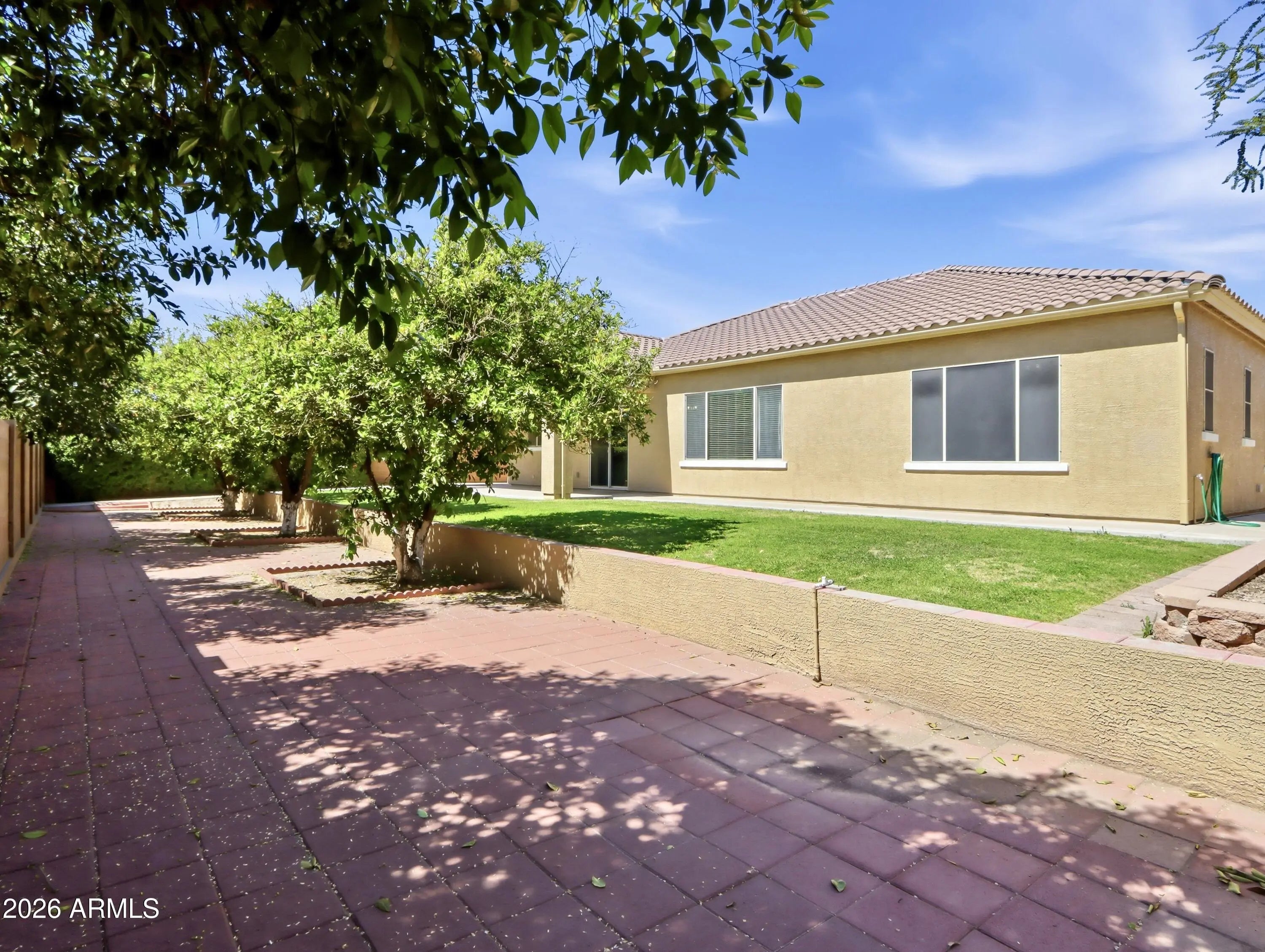 WONDERFUL 5-BEDROOM, 3.5-BATH HOME IN GATED TROVITA ESTATES IN MESA'S GROVE CORRIDOR - Located on a north/south corner lot, this single-level Stowe model includes a bonus 5th bedroom. Open, split floor plan with great room, dining area and den. One of the secondary bedrooms is en suite with its own full bath. Gourmet kitchen with island, granite countertops, wall ovens and stainless-steel appliances. Large walk-in pantry. No interior steps. Extended-length 3-car garage with cabinets. Sinks in laundry room and garage. Orange trees in backyard maintained by HOA. Larger HVAC system replaced in 2021 with Trane gas split system. Interior repainted in 2026; exterior repainted in 2024. Park in the center of the neighborhood includes playground, gazebos, basketball court and volleyball court.