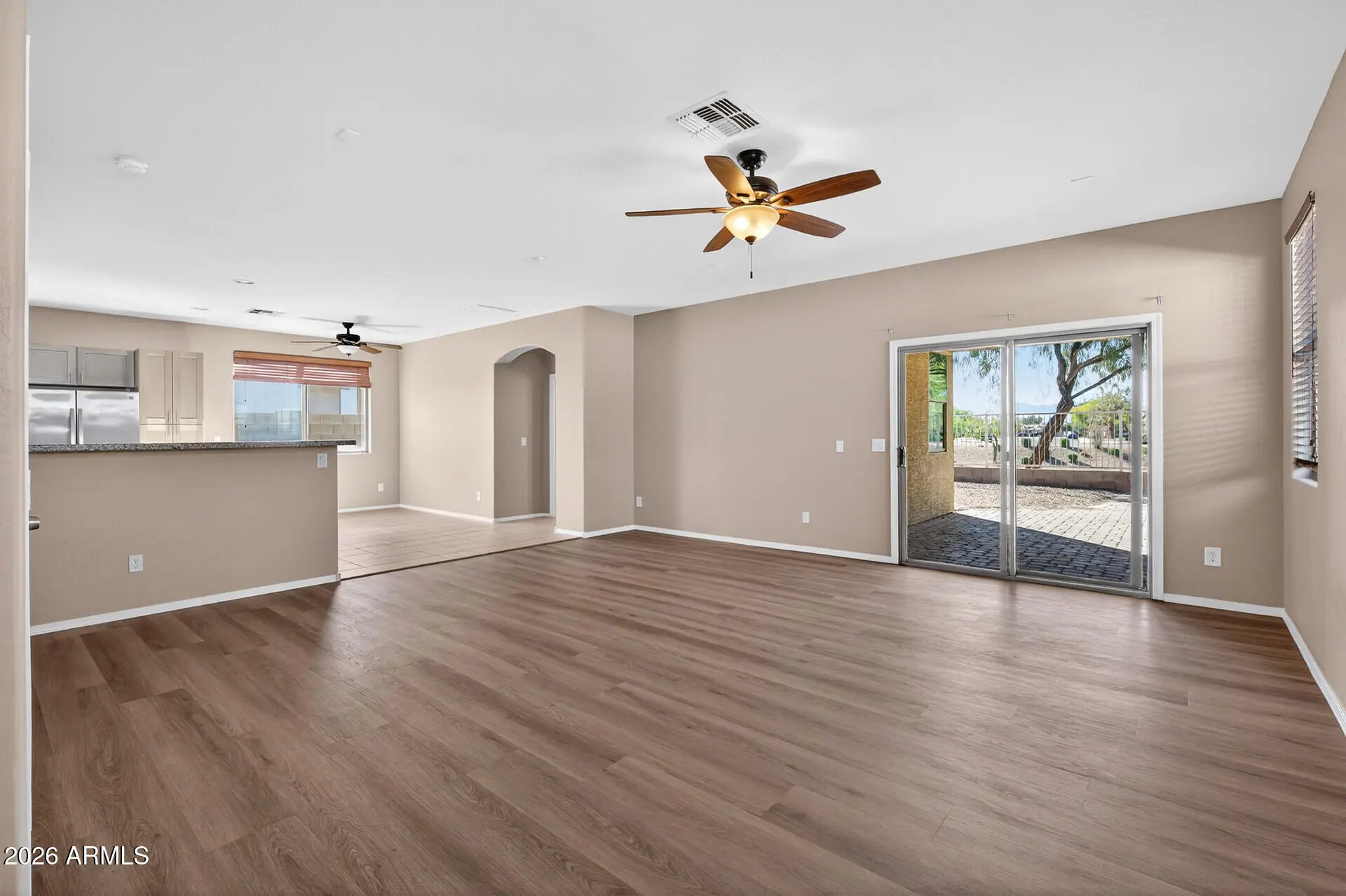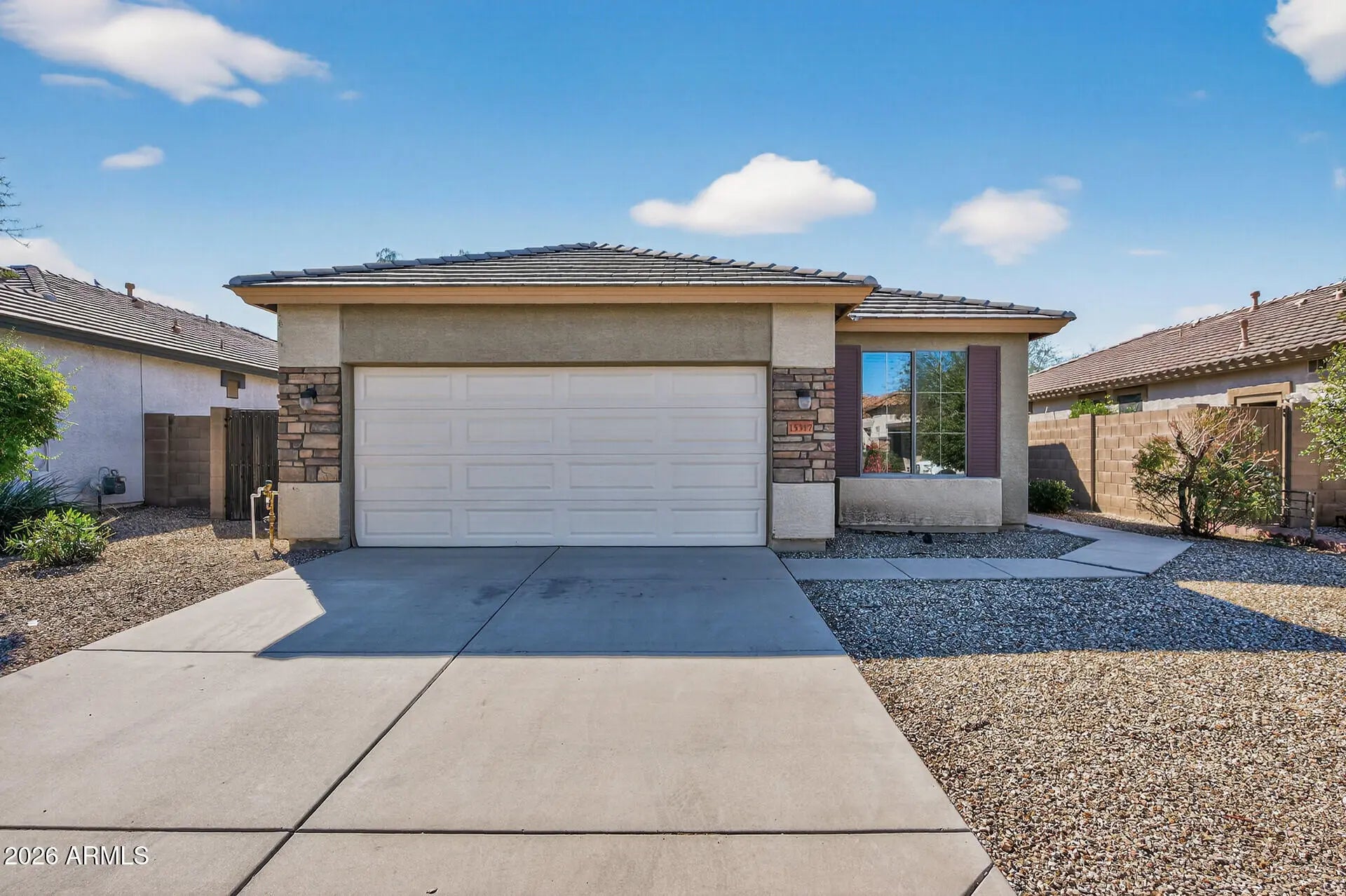 This move-in ready home offers updated style and a smart open floor plan. Newer luxury vinyl plank flooring runs through the common areas and bedrooms, plus an updated kitchen with granite countertops, newer stainless steel appliances, and refreshed cabinetry. Bathrooms feature newer cabinets and fixtures. Water heater was replaced in 2024. Flexible den makes a perfect home office, gym, or hobby space. Step outside to a pavered, covered back patio -- ideal for morning coffee or evening BBQs and no back neighbors for added privacy. Conveniently located near the Goodyear Recreation Campus and quick access to the I-10 and Loop 303 freeways for an easy commute.