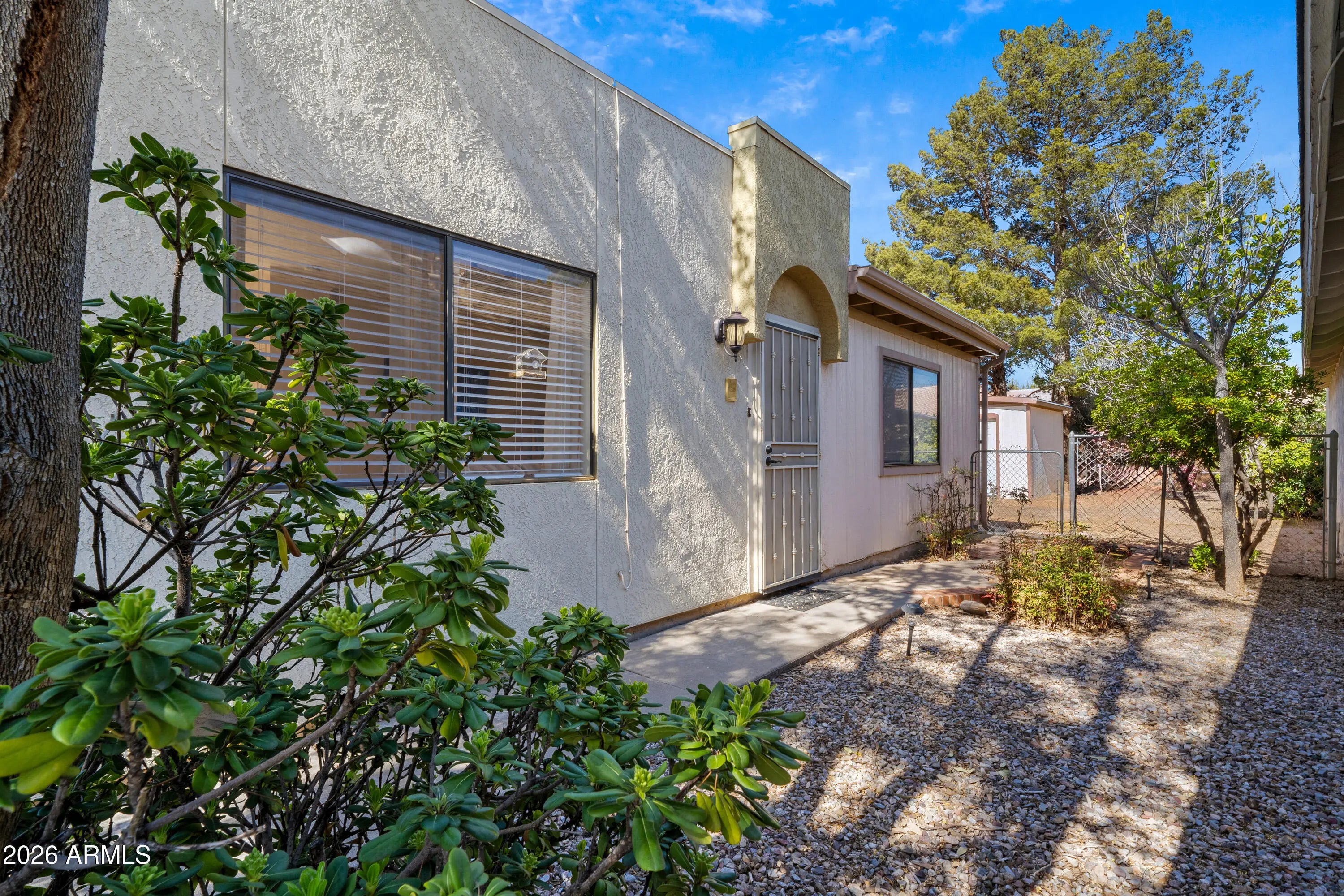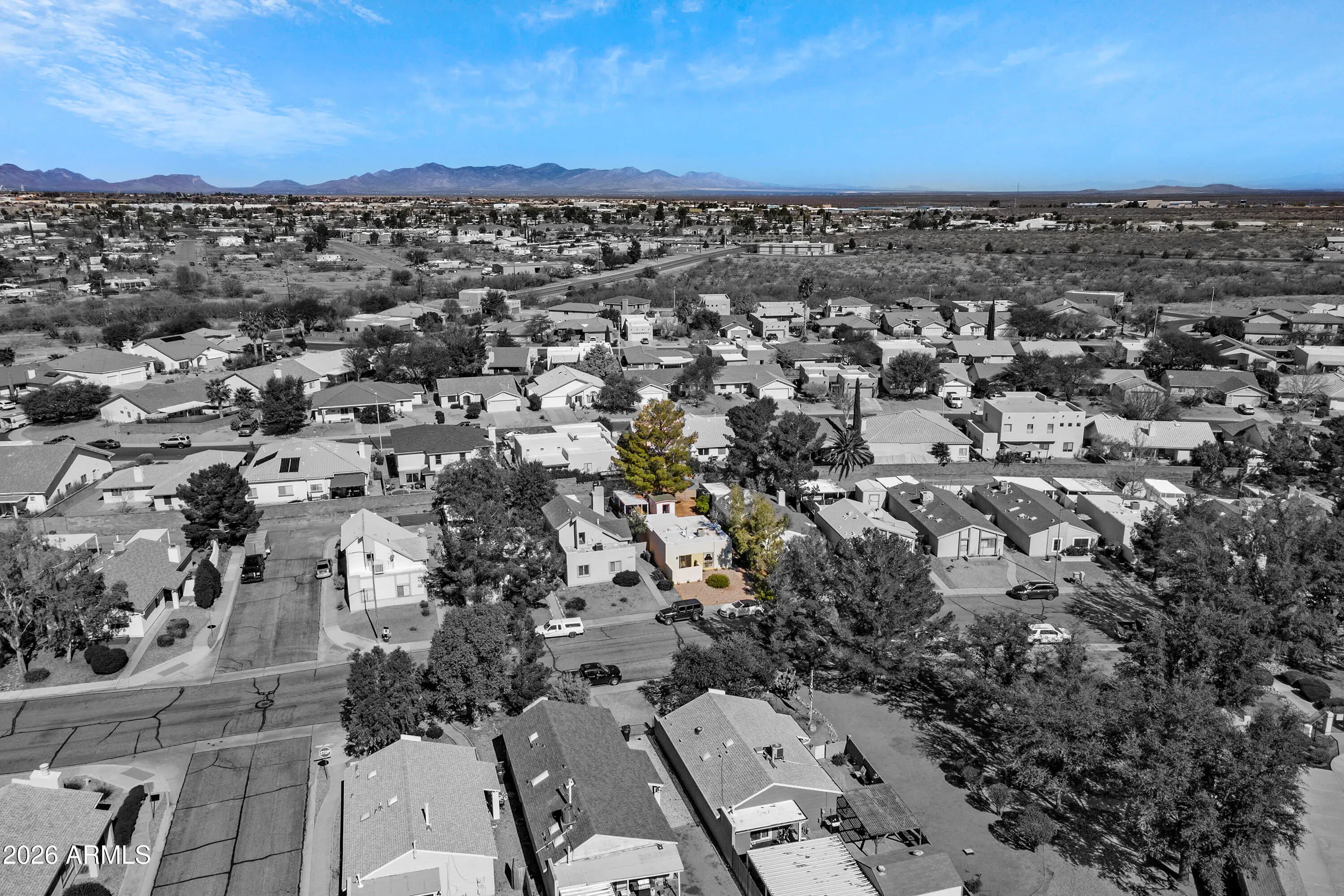 Charming single-story home in desirable Desert Shadows. 2 spacious bedrooms with custom closet shelving and 1 full bath. Step-free layout with a completely remodeled kitchen featuring new cabinets, countertops, stainless-steel gas range, dishwasher, refrigerator, farmhouse sink, and a pantry. Tile and hardwood floors throughout (no carpet). Additional highlights: new roof, newer HVAC, fully fenced yard with storage shed, low HOA, pet-friendly, and a well-maintained community. Conveniently located near the hospital and the Sierra Vista shopping corridor.