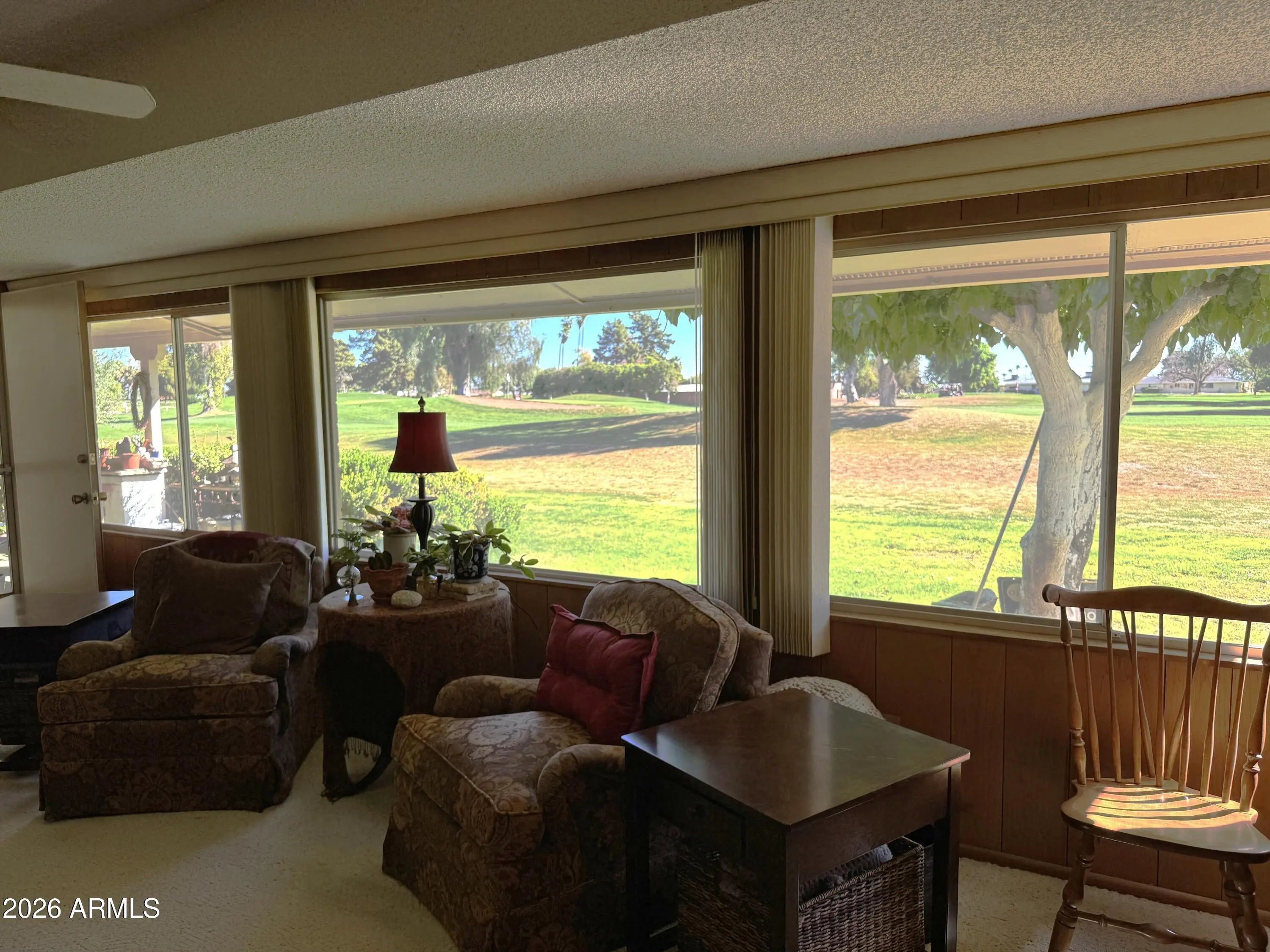 Spectacular views of the 12th fairway with just a chip shot to the green! Situated on the highly sought after Sun City Country Club golf course! Gemini twin home with amazing golf course views! Spacious open floor plan with an Arizona room that provides full view! Two bedrooms and 2 remodeled baths, spacious kitchen with breakfast nook as well as a separate dining area. Large laundry room with storage, 2 car garage with lots of cabinetry and a fenced front courtyard and backyard covered patio. Main sewer line replaced in 2023. Come enjoy all the amenities of Sun City living. Golf courses, bike & walking paths, heated pool & spa and so much more. This is retirement living at its best. Sun City is an age restricted community of 55+. See documents tab for HOA/Community Addendum fees.