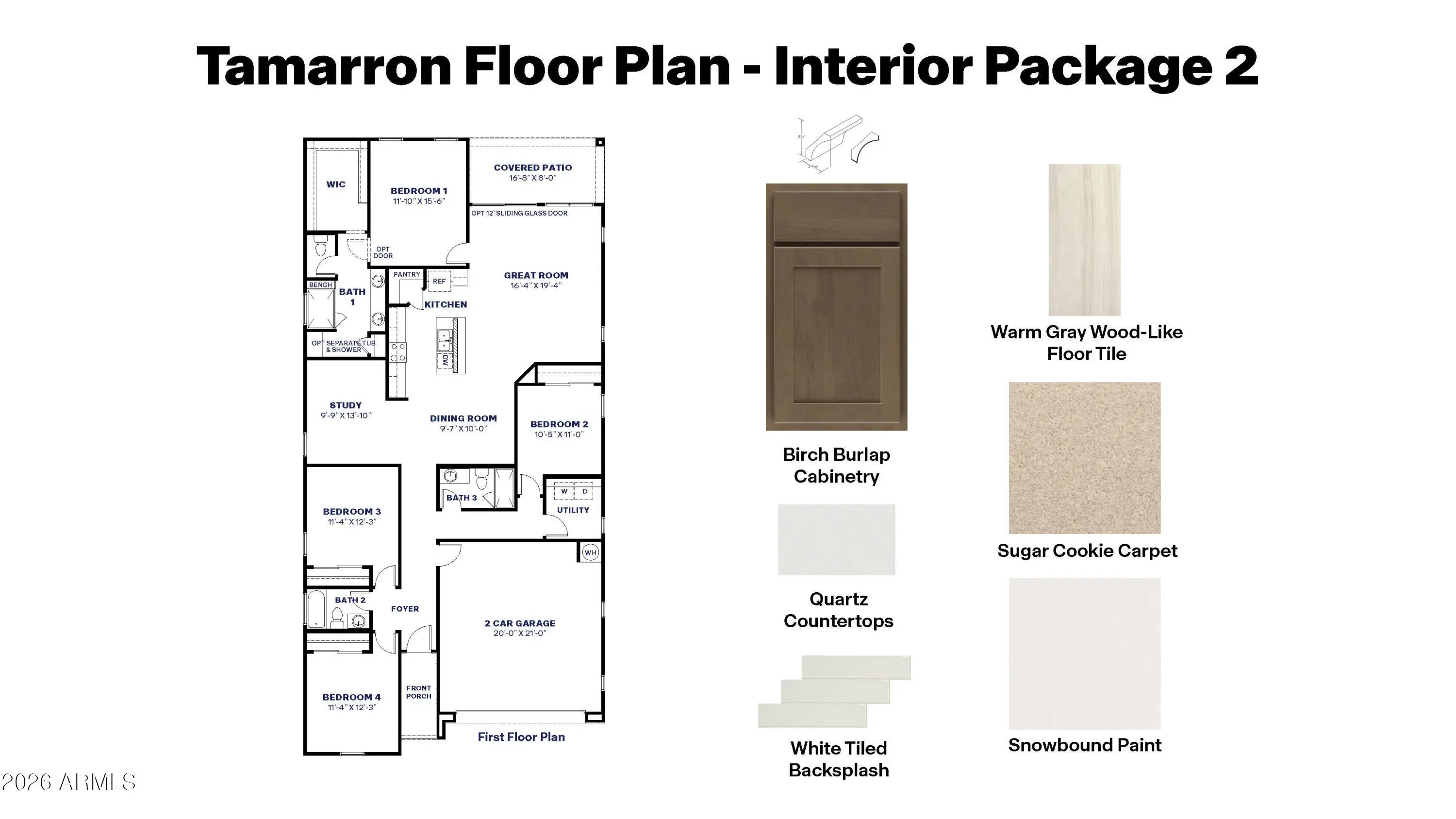 This community boasts breathtaking views and is conveniently located minutes away from shopping, dining, hiking trails and more! Our popular 'Tamarron' floorplan features 4 full bedrooms with a study, 3 bathrooms, 2 Car-Garage and a private yard. Designer selected finish includes Burlap Cabinetry, Quartz Kitchen Countertops, 12''x24'' Tile Throughout, and Plush Carpet in all the bedrooms. This beautiful home will have it all including 8' doors, Gourmet Gas Kitchen, Smudge Proof Stainless Steel Appliances, Blinds, Pre-Plumb for Soft Water, and Smart Home Technology. Photos of similar home, options may vary**