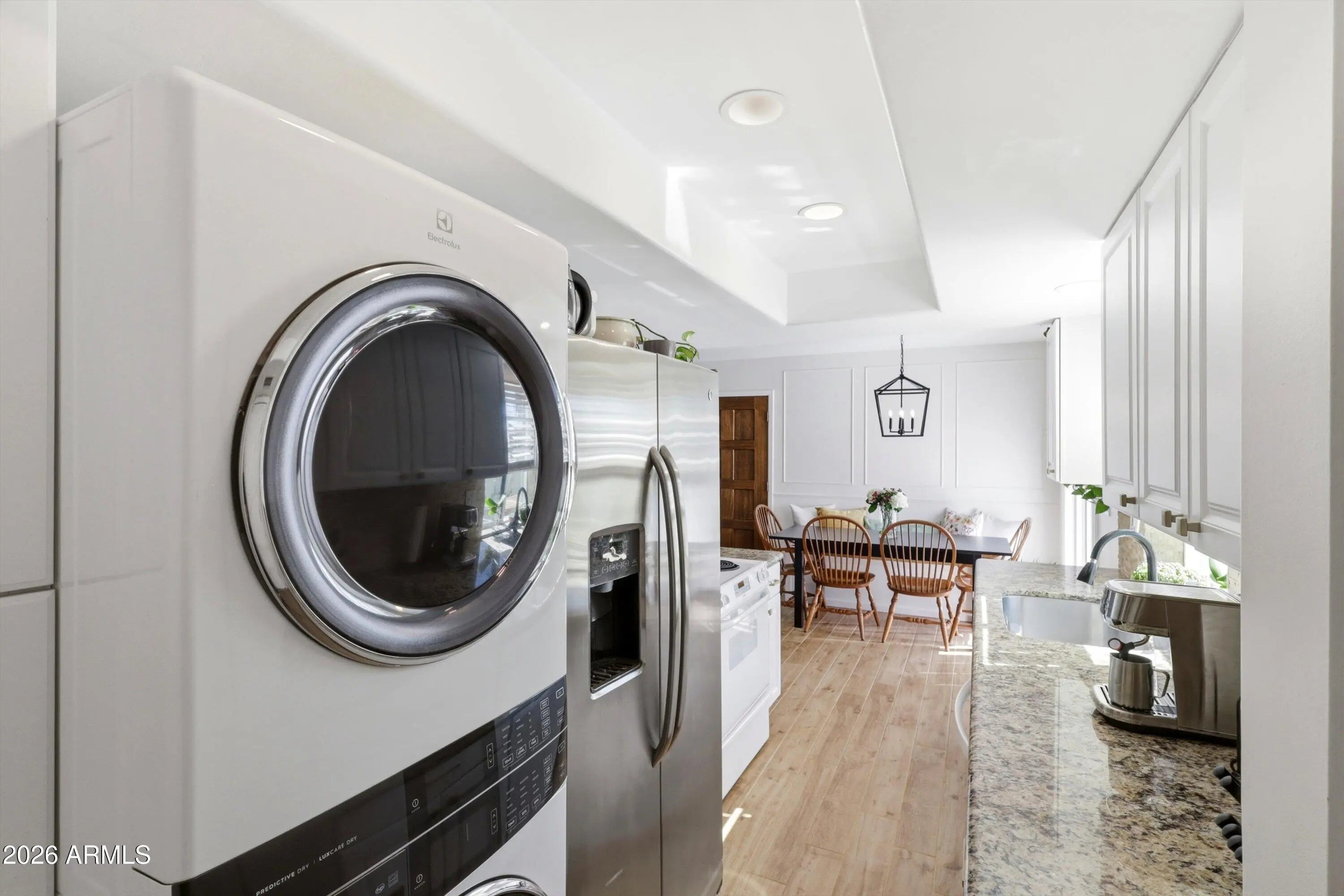 Stacked Washer/Dryer, Dryer, Washer, Refrigerator, Dishwasher