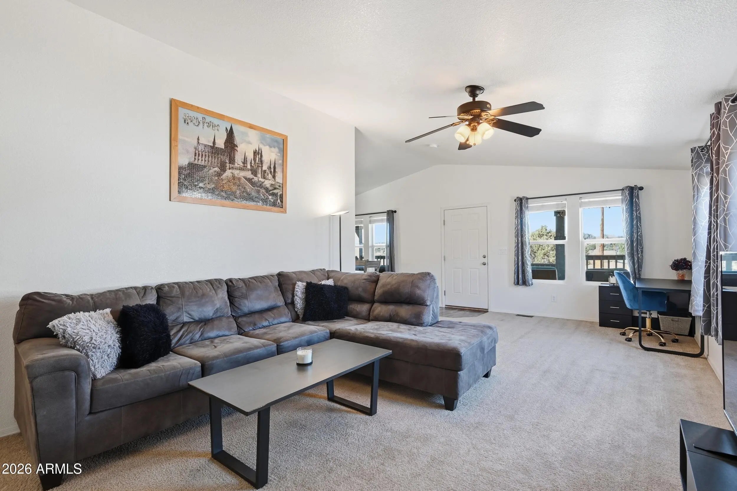 This well-appointed 2017 Cavco home features a meticulously maintained interior with a spacious open layout and vaulted ceilings. Durable laminate flooring runs through the kitchen, dining, and main living areas. The kitchen offers a central island, ample cabinetry, a large pantry, and upgraded appliances including a refrigerator, dishwasher, washer, and dryer. The standout feature is the outdoor living space--a maintenance-free covered front deck perfect for relaxing and taking in stunning, unobstructed views of the Mogollon Rim. Enjoy morning coffee or sunset views against a beautiful Arizona mountain backdrop. Fully electric, permitted, and equipped with installed tie-downs, this move-in ready home is ideally located to enjoy the best of Payson. Owner/Agent.