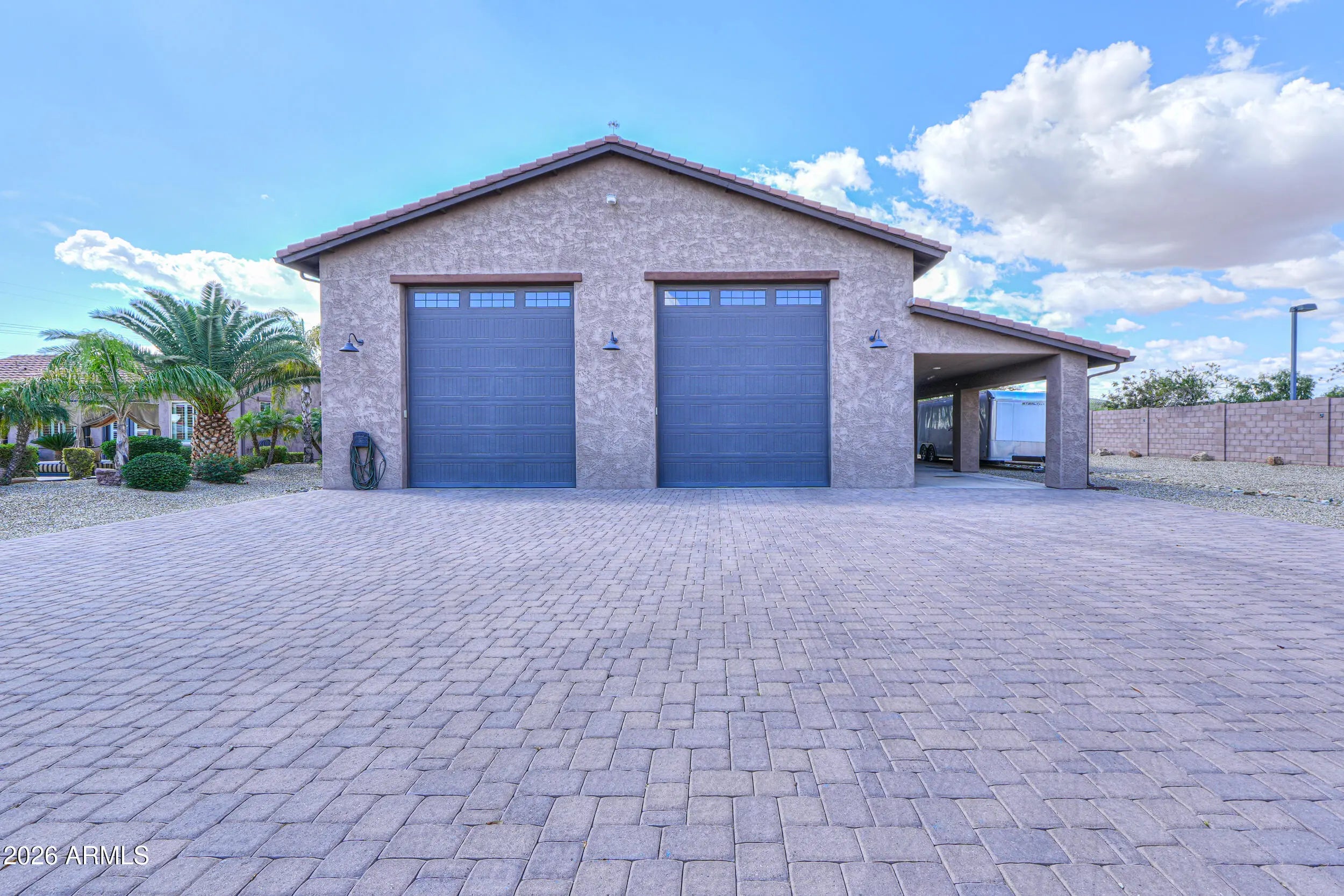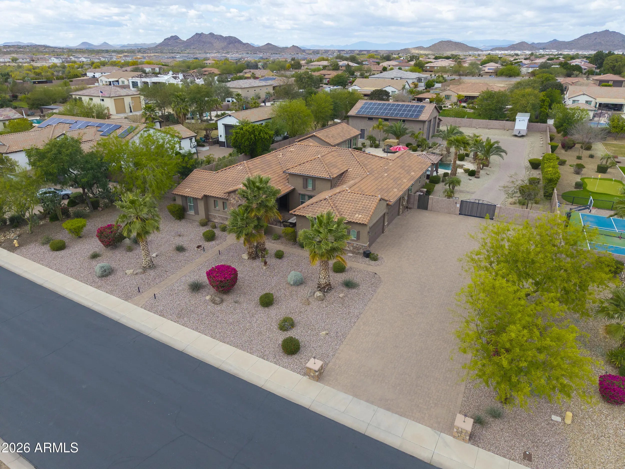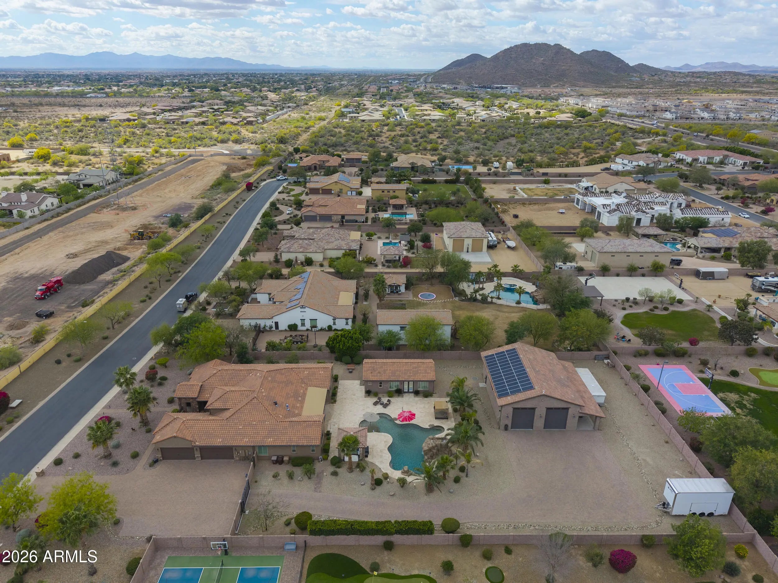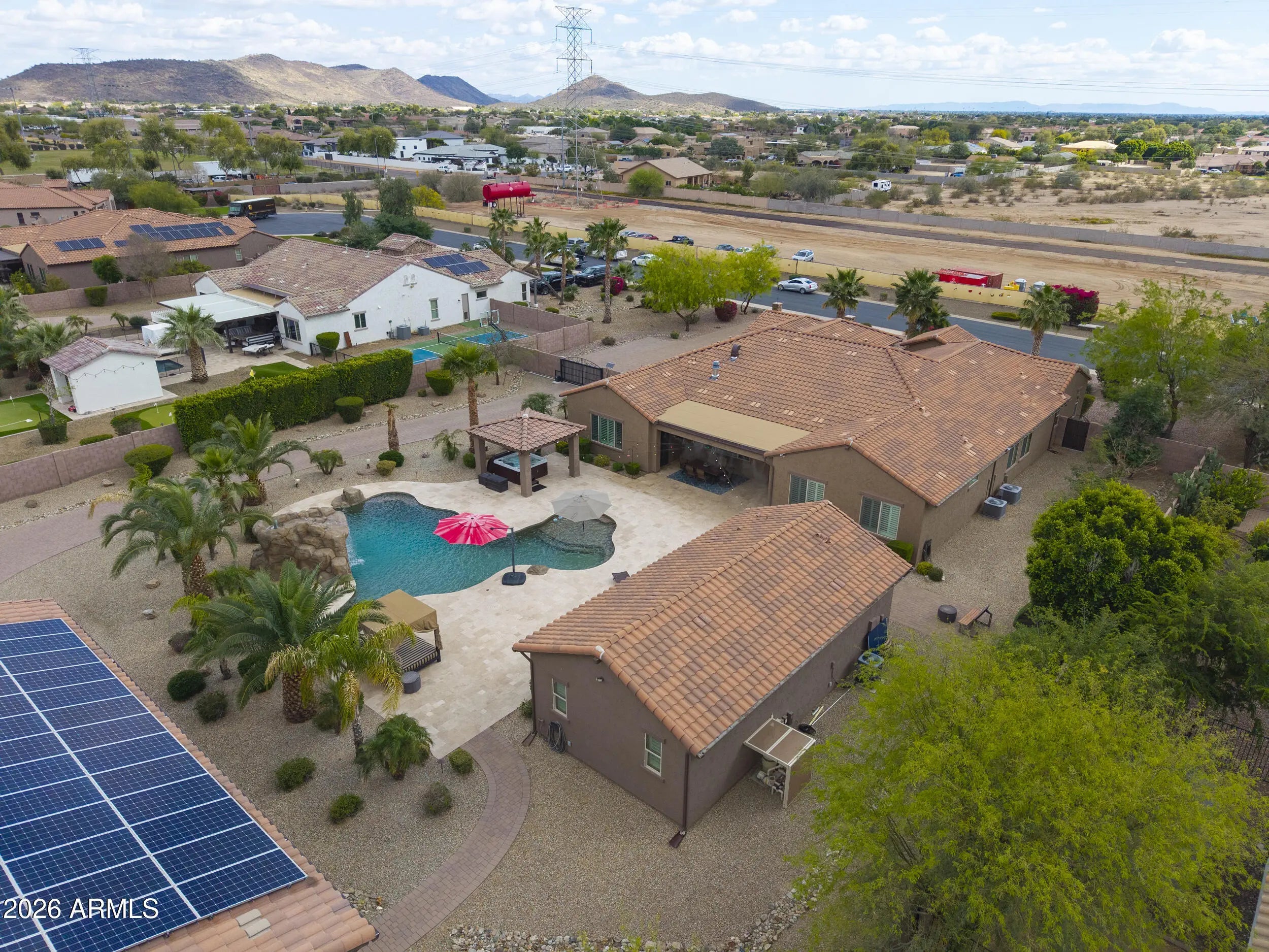 This home has it all! On over 1-acre in Highly desirable Estates At Happy Valley. This meticulously maintained home has space for all of your toys & entertaining needs. 3,796sqft Main House has an attached oversized 4-car garage, 5-Bedrooms, 4.5-Baths, Plus a Bonus/Game Room, Plus an Office/Den. Detached Casita is 800sqft, with it's own private bath. Massive 52' x 50' RV Garage has everything you can think of including it's own 1/2-bath, Wash Bay, epoxy flooring, 16'-ceilings, two 12'x14' Garage doors, RV dump station, 30A - 120v RV hookup, Hot & Cold water supply, Compressor Room w/copper plumbing to front & rear of shop, & even a floor drain to wash your cars inside! Additional features include inside gas fireplace, huge play pool w/grotto, Hot Tub, Massive 15-KW owned Solar & more!