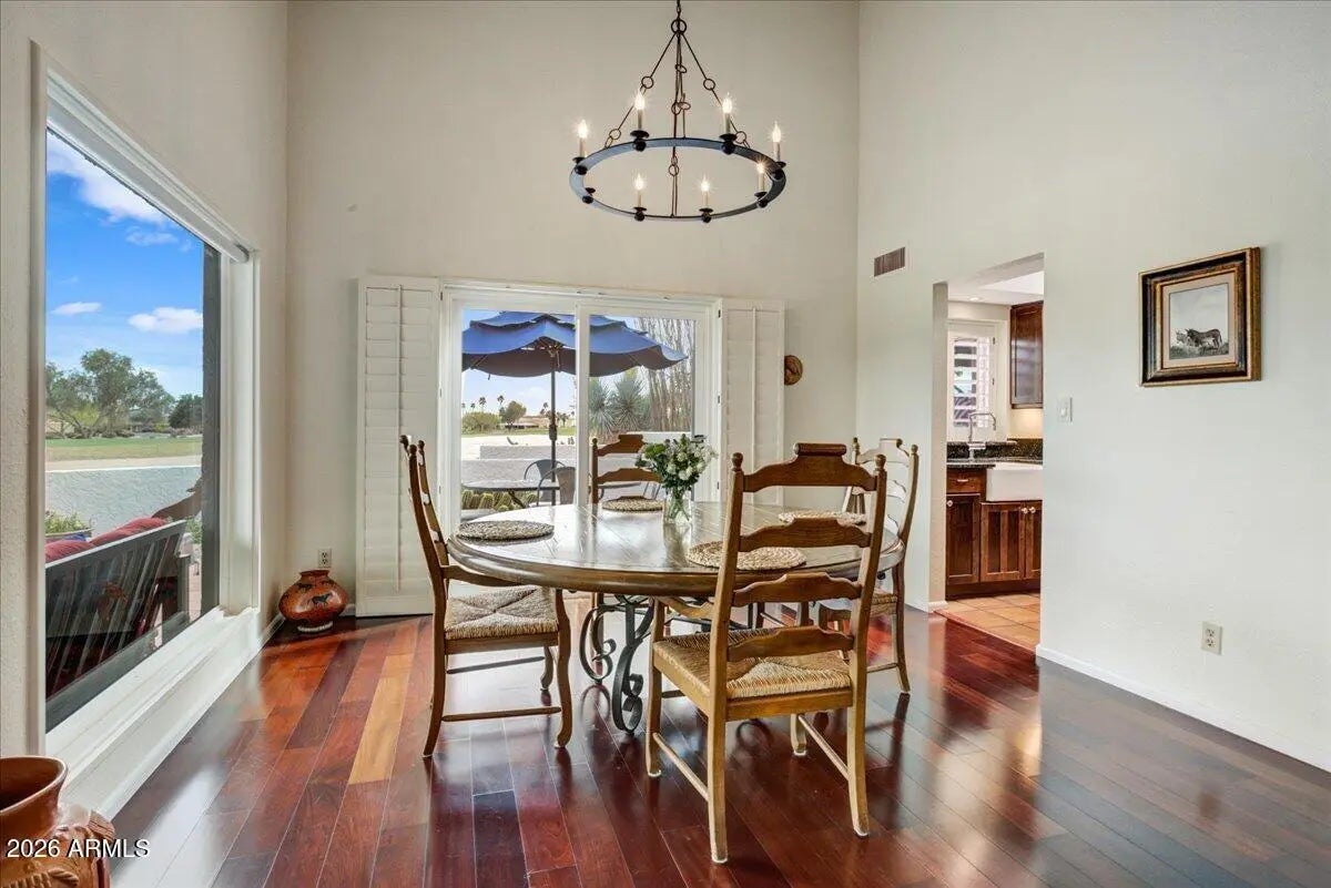Welcome to an extraordinary desert home in the heart of Rio Verde, where golf course living meets some of Arizona's most breathtaking mountain views. Located on the 18th hole of the Quail Course this beautiful 3 bedroom, 2 1/2 bath home offers approximately 2,150 square feet of comfortable Arizona living. This remarkable home overlooks 2 fairways. the East Mazatzal Mountains and the majestic Four Peaks Mountains. The thoughtfully designed floor plan provides ample living and entertaining areas filled with natural light. The open living spaces flow effortlessly toward the outdoor patio, creating the perfect setting to enjoy cool desert evenings, watch golfers finish their round, or take in the vibrant Arizona sunsets painting the mountains. Every East Facing Slider & Window has a view! All New Windows and Sliders in 2019, Custom Iron Door 2024, All new Kitchen Appliances 2023, North HVAC unit 2019, South HVAC unit 2025, Exterior Paint 2024, Interior Paint 2024/2025, Flat Roof Coating 2026, New Tile Roof and Underlayment 2019, Refuse Access Gate installed 2026, Programmable Garage Door Opener 2025, Led Can lighting throughout 2023 and Landscape Lighting 2025. The extended 2 car garage is outstanding! Located within the welcoming golf community of Rio Verde, residents enjoy an exceptional array of amenities designed for an active and social lifestyle. The community features two premier golf courses, a fully equipped fitness center, pickle ball, tennis courts, bocce ball, a resort-style community pool, two restaurants, library and so much more!