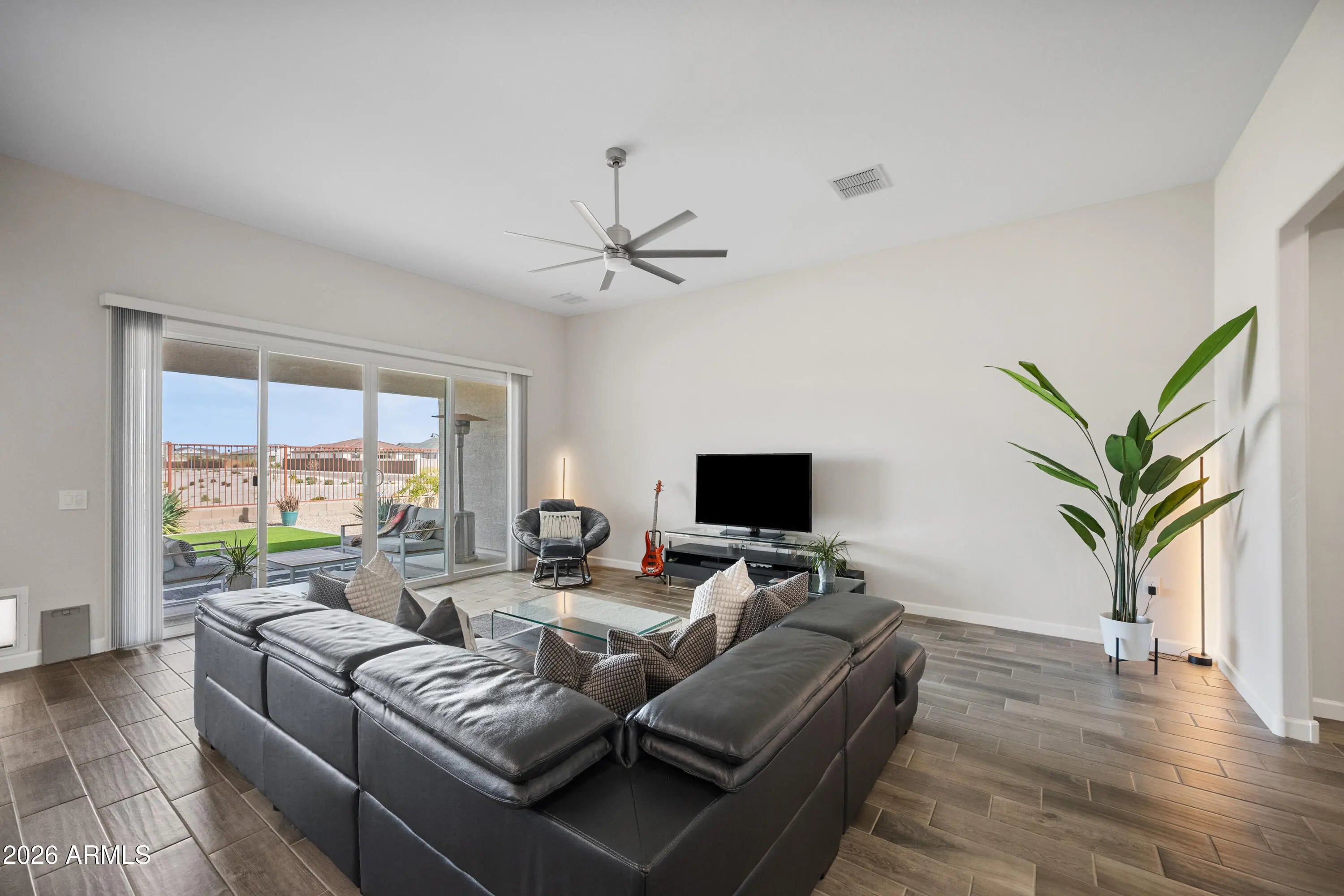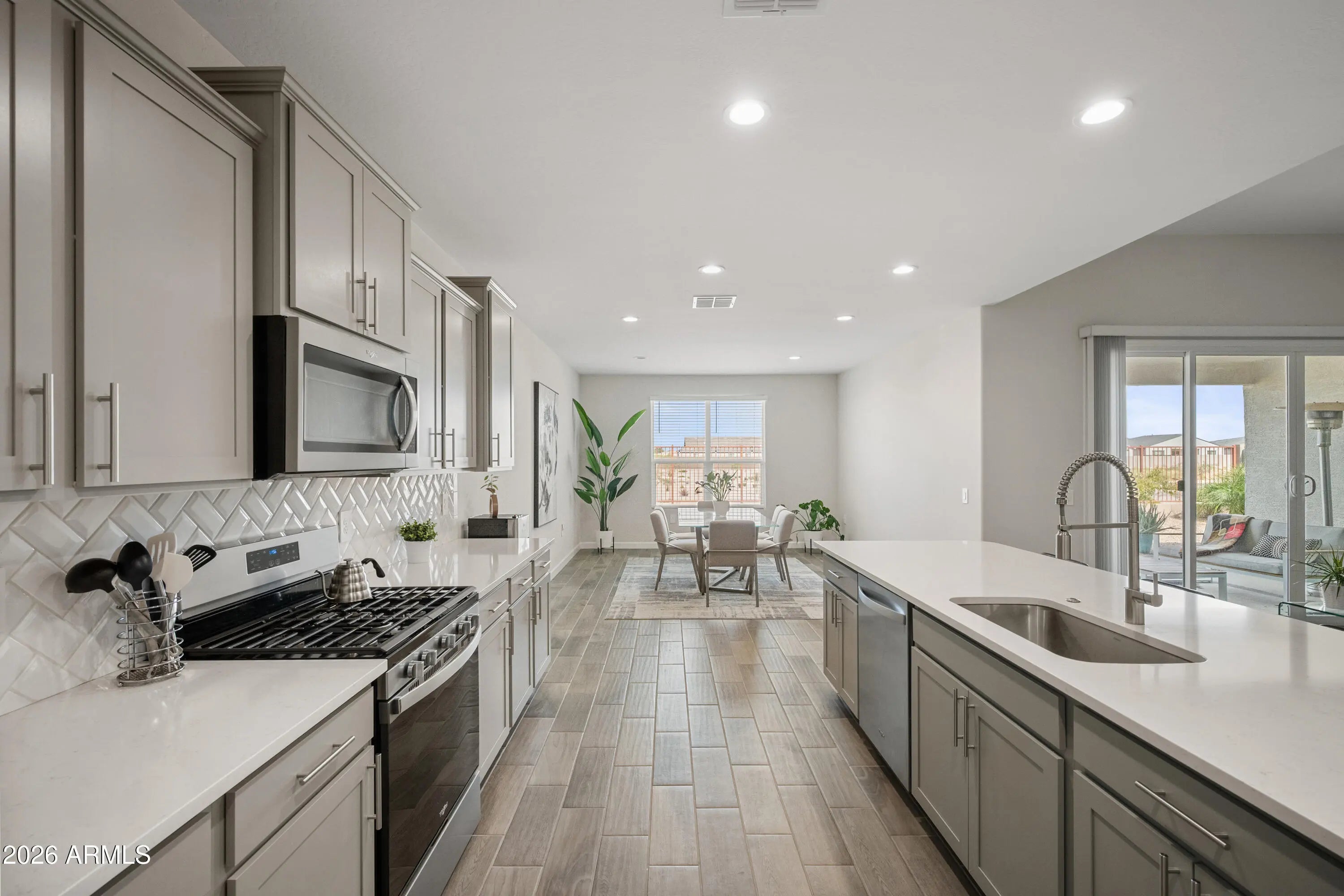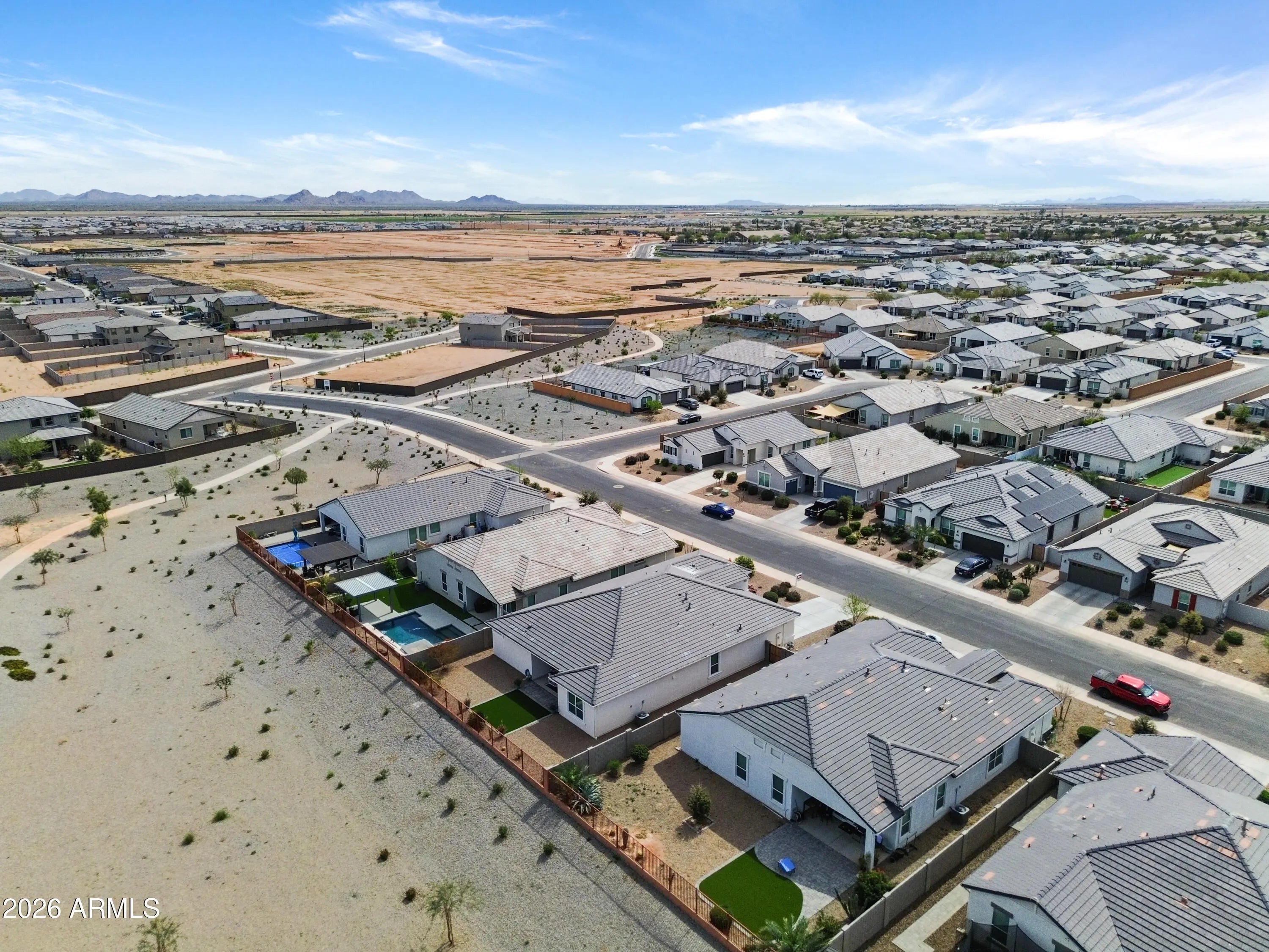 ASSUMABLE MORTGAGE VA loan. 5-bed/3-bath open-concept single-story home with true great room & 3-car garage. Nice VIEWS from inside & out with no neighbors behind and a park-like feel. Beautiful kitchen with oversized quartz island & stainless appliances. Great room boasts a bifold door to the large covered back patio. The finishes in the home are higher level than many of the surrounding new builds. Maricopa is a desirable city with many services and attractions. Nearby services include dining, shopping (Walmart, Fry's, Basha's, Walgreens), movies, arcades, golf, bowling, Harrah's Ask-Chin Casino & Hotel. Many parks nearby include Copper Sky Regional Park & neighborhood parks. Only 25 minutes to Chandler Fashion Center. Maricopa is a desirable city with many services and attractions. Nearby services include dining, shopping (Walmart, Fry's, Basha's, Walgreens), movies, arcades, golf, bowling, Harrah's Ask-Chin Casino & Hotel. Many parks nearby include Copper Sky Regional Park & neighborhood parks. Only 25 minutes to Chandler Fashion Center.