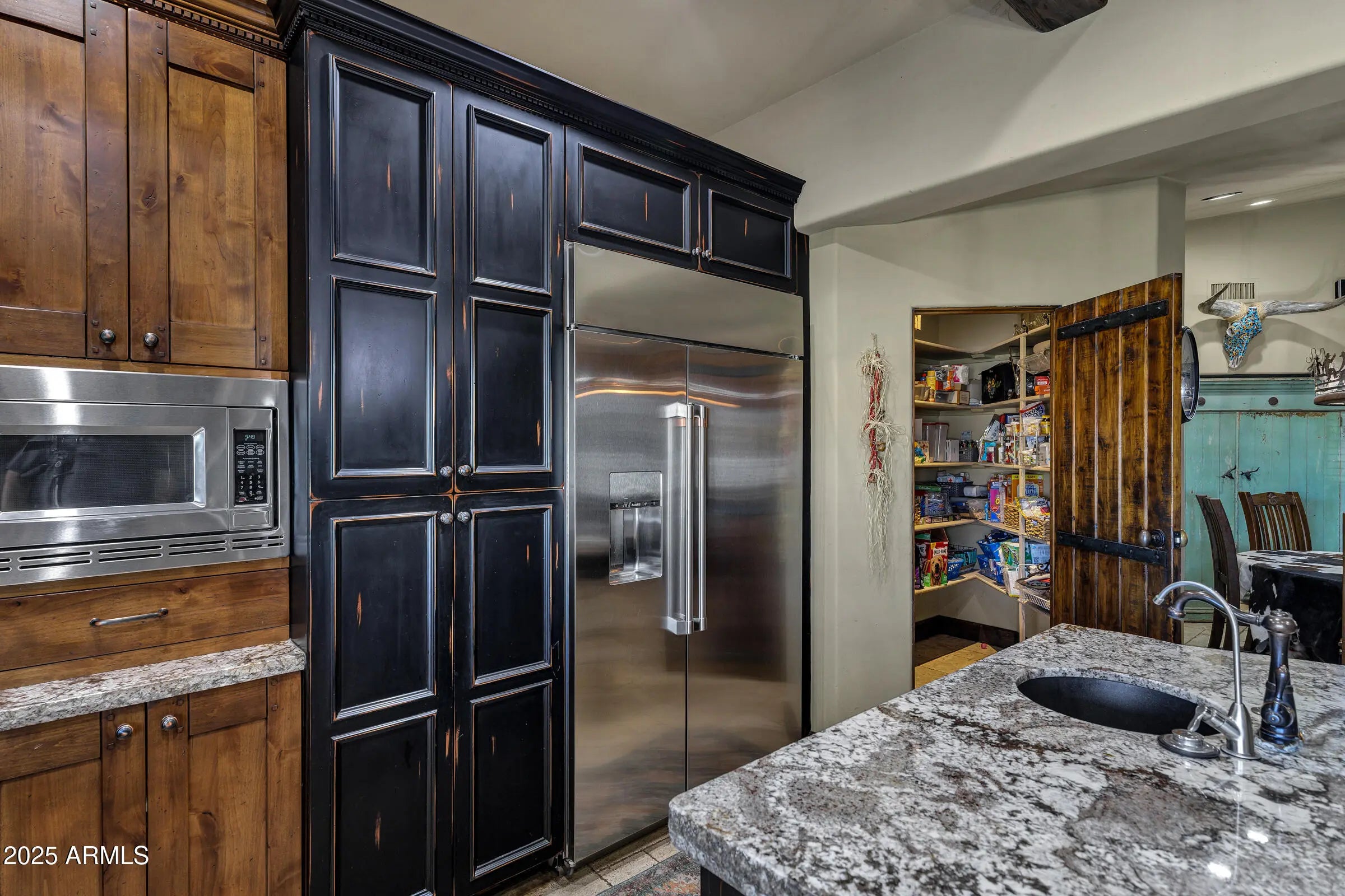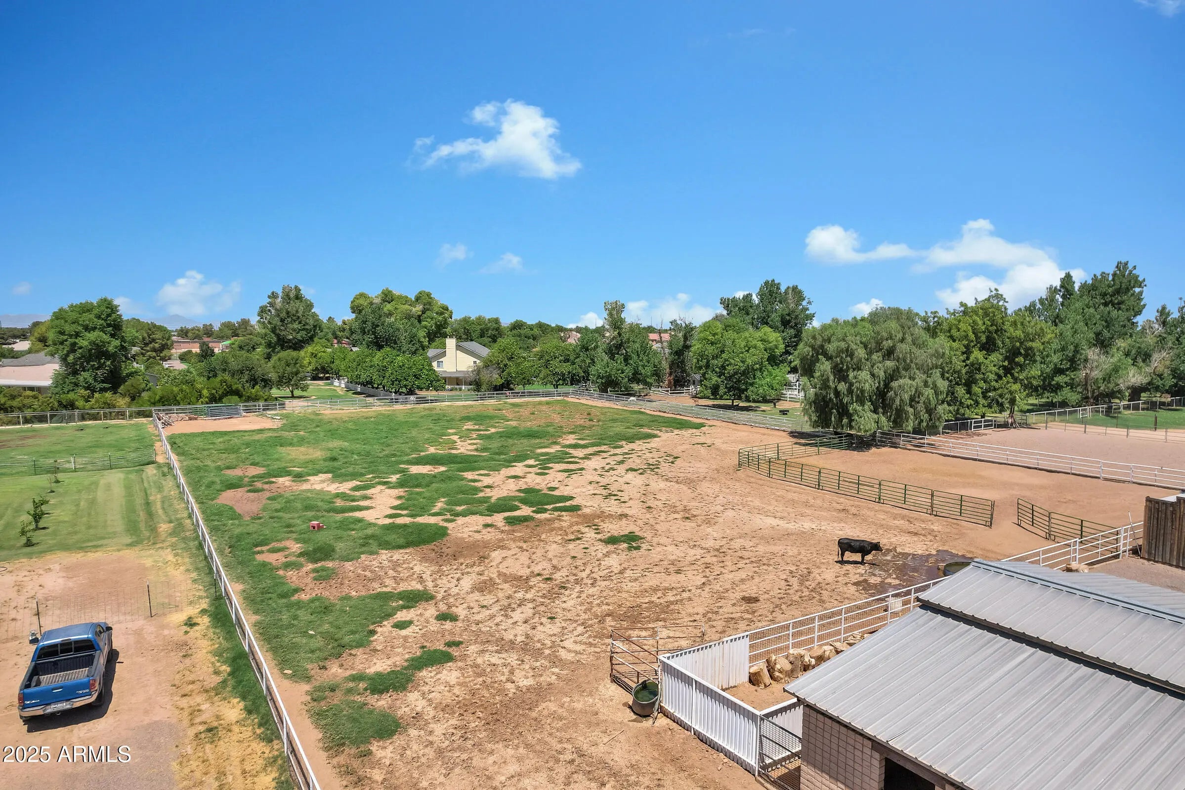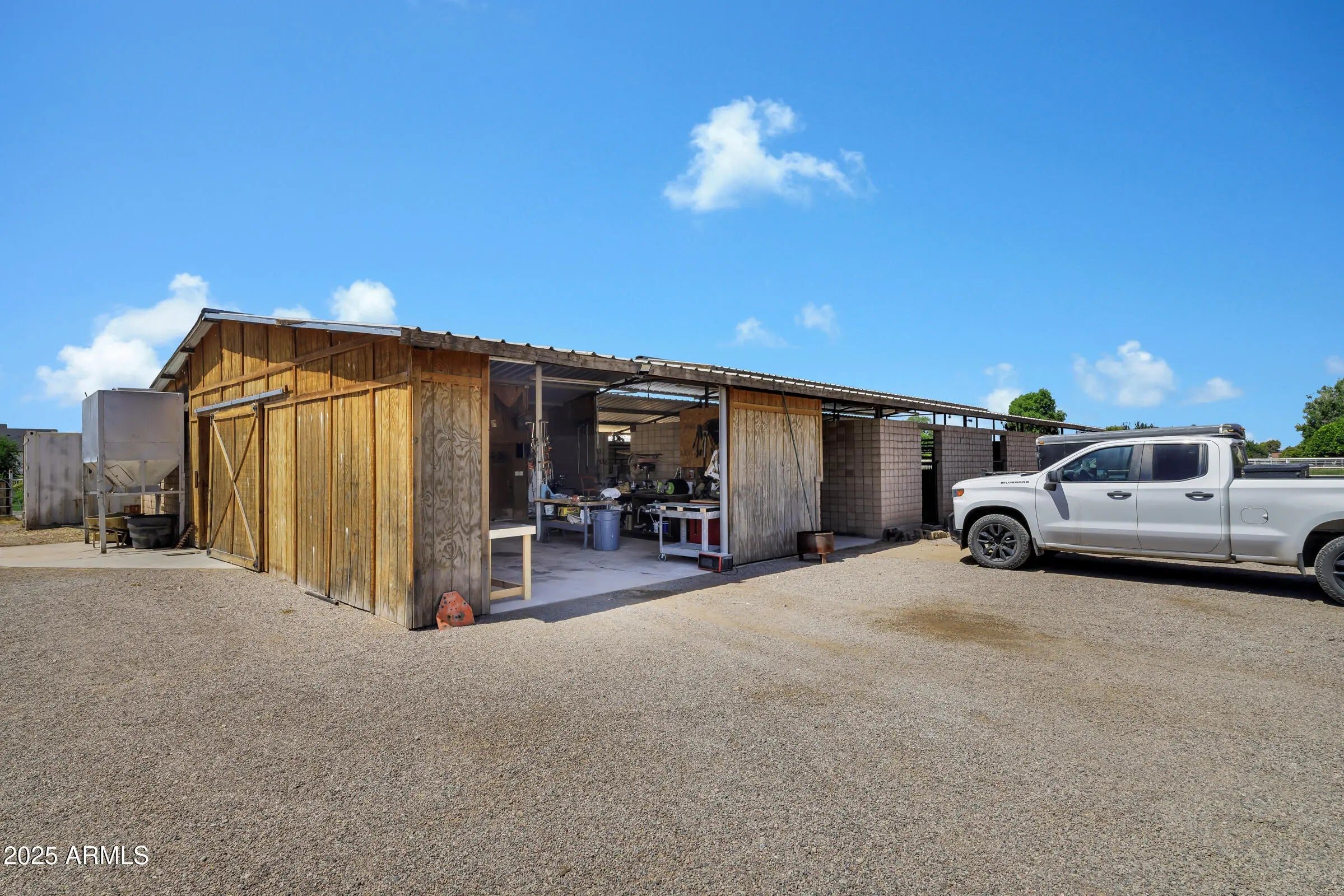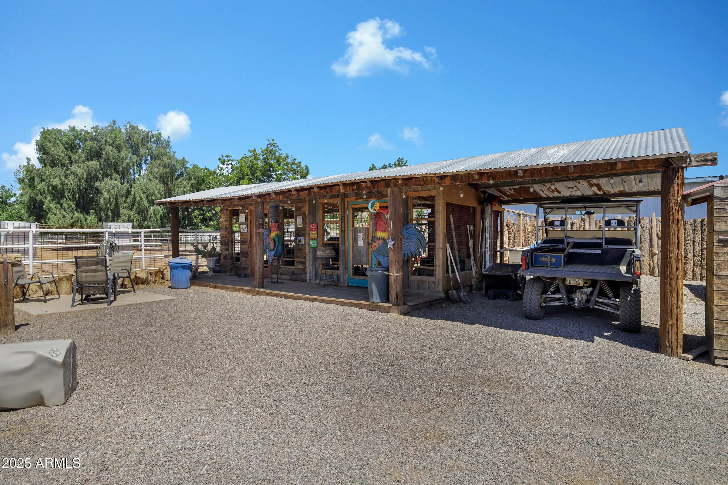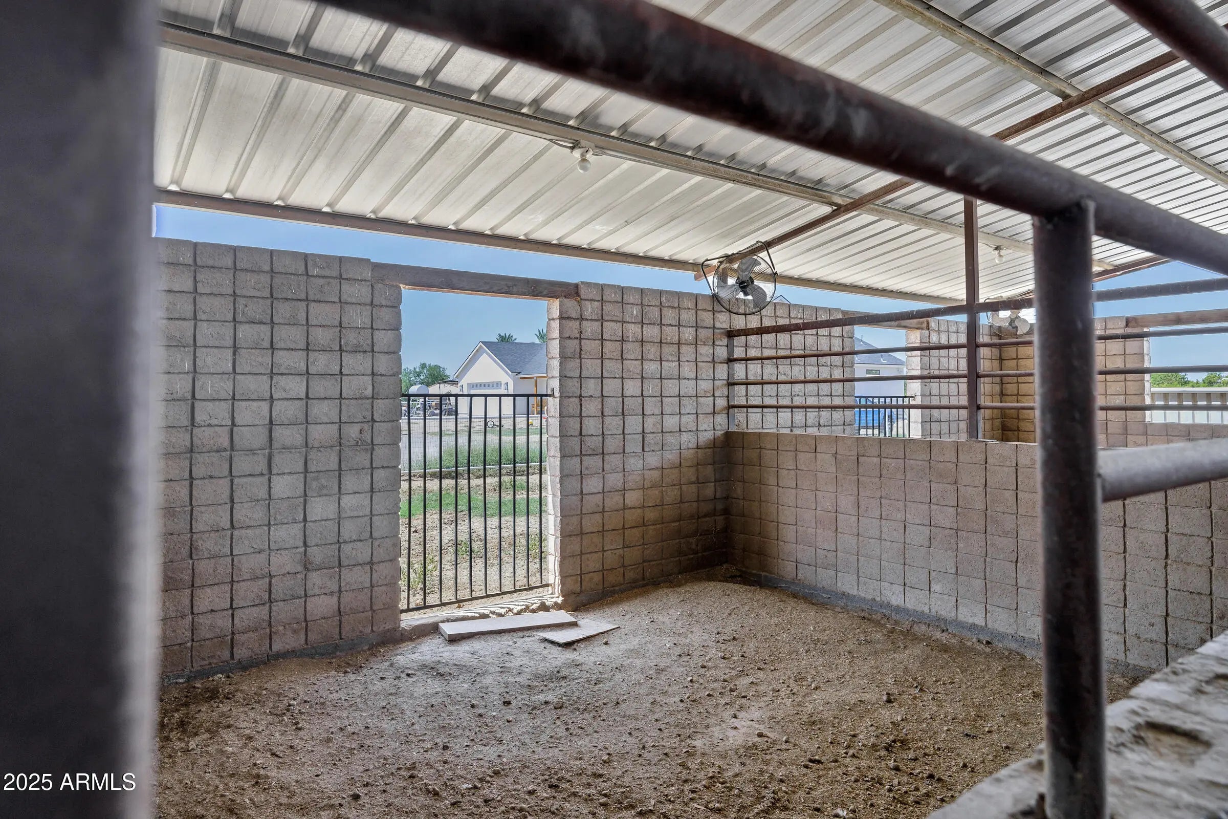 Custom Santa Fe home - No HOA! - Front property with house only -- 1.6 irrigated acres on a County Island. Entire 2.76 available per MLS #6982091 at $2,225,000. This beautifully custom home offers the perfect blend of luxury, comfort, and functionality. A charming courtyard entry welcomes you to this spacious property, featuring a 4-bedroom, 4-bathroom main house plus a detached casita with private entrance--ideal for hosting guests or operating a home business. Designed with the chef in mind, the gourmet kitchen boasts a large island with prep sink, high-end natural gas stove, Cafe refrigerator, built-in microwave, under-counter refrigerator drawers, and exquisite two-toned custom wood cabinetry. Granite countertops, a farmhouse sink, travertine backsplash, and a generous walk-in pantry complete this culinary masterpiece with beamed ceilings. The great room stuns with vaulted ceilings, stone fireplace, offering an open yet cozy ambiance. Enjoy both an eat-in nook and a formal dining area for gatherings. Travertine flooring flows throughout the home, adding elegance and durability. Retreat to the guest suite with its own full bath and private entrance for added convenience. Step outside to an entertainer's backyard complete with a diving pool featuring a water feature and in-pool seating with a table, an extended covered patio, and a built-in bar with grill and sink, all shaded under a beautiful pergola. Just beyond the main home lies a fully equipped 8-stall brick barn with automatic waterers, grooming bay, tack room with bathroom, and additional storage room. Toward the back of the property, you'll also find a second tack room, 60 x 25 foot covered RV parking with hookups. This unique property offers the ultimate in luxury, privacy, and space with all the amenities needed for horses, hobbies, and hosting. Come experience the best of living in this one-of-a-kind estate.