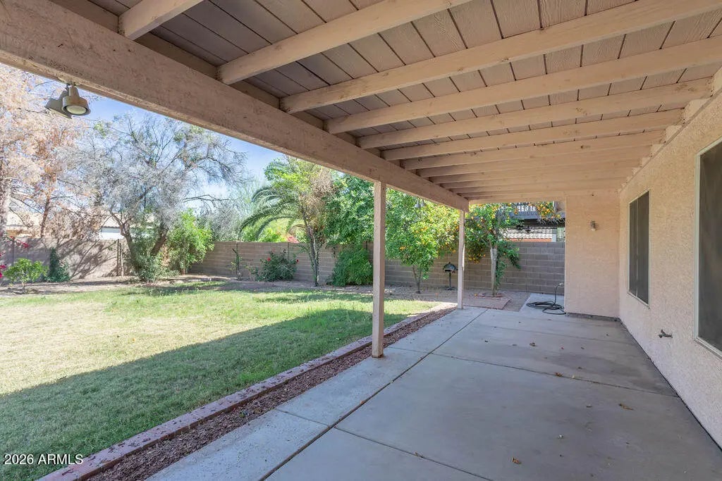 Charming single-level home on a desirable corner lot in the Dave Brown Autumn Hills community. Brand new full interior paint. This 3-bedroom home plus den/office offers a flexible floor plan with vaulted ceilings, tile and wood flooring. The spacious kitchen features breakfast bar, and eat-in dining, opening to multiple living and family spaces--perfect for everyday living or entertaining. The primary suite includes a full bath with double vanity, separate shower and tub. Conveniently located near Loop 101, Bell Road shopping, dining, and schools. Quiet neighborhood and move-in ready.