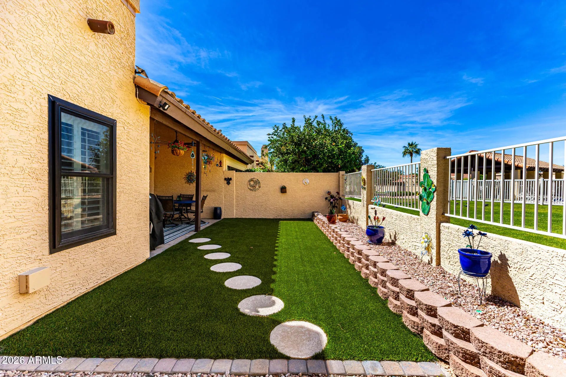 Borders Common Area, North/South Exposure, Sprinklers In Rear, Sprinklers In Front, Gravel/Stone Back, Grass Front