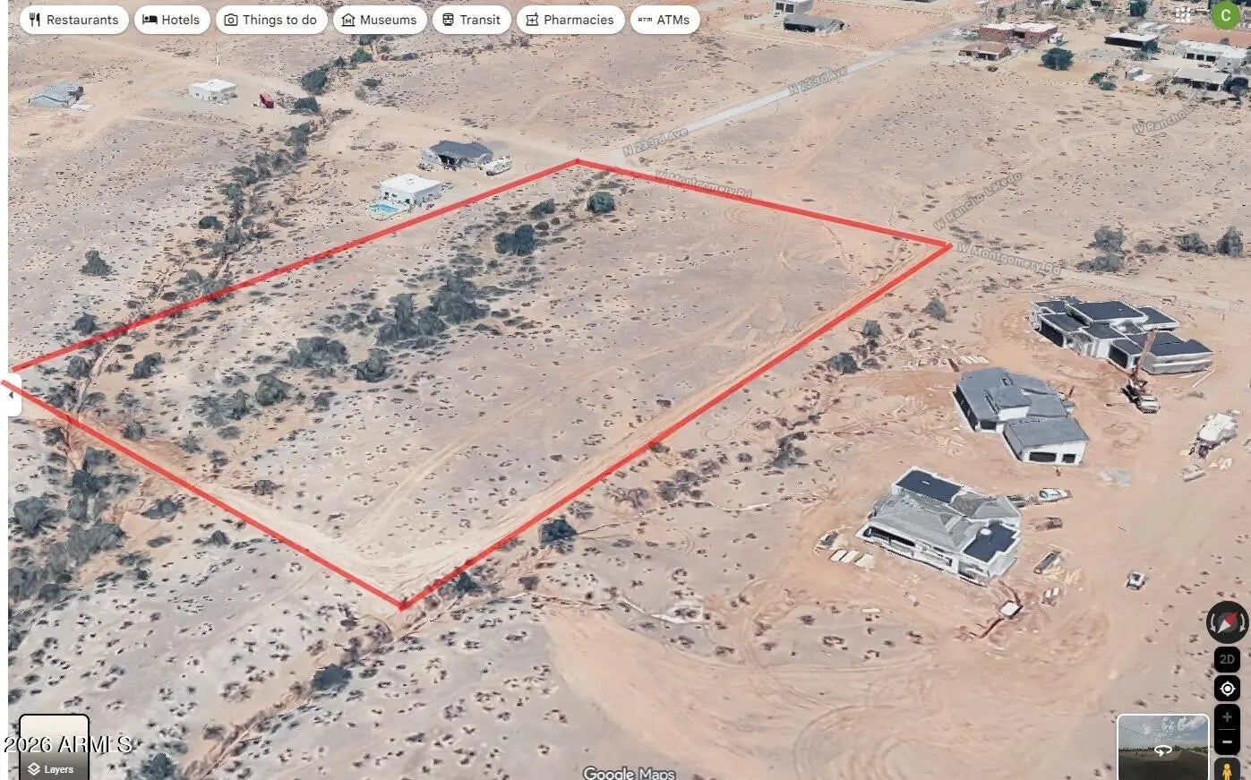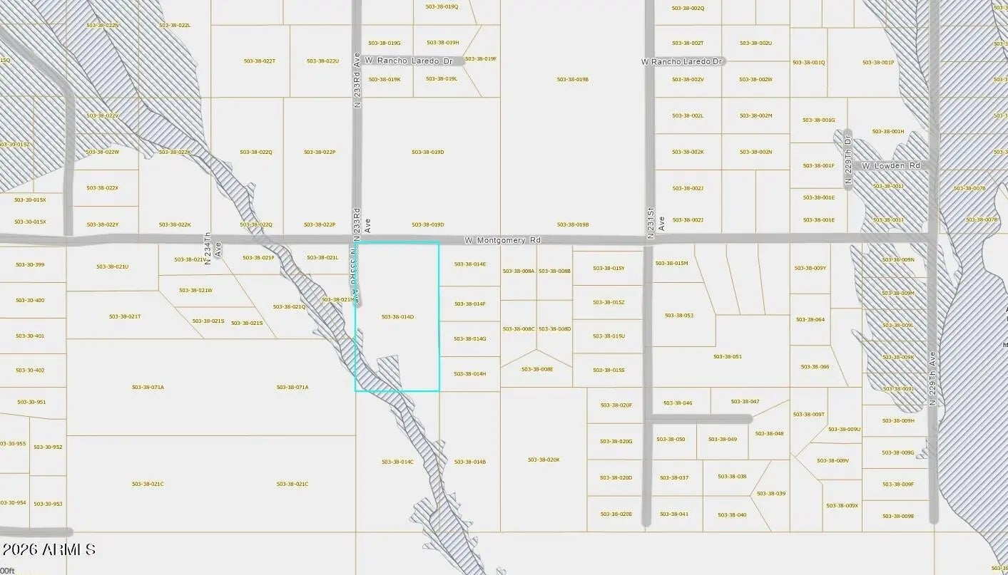 Really nice set up for a builder in a very hot area of Wittmann! Situated next to a development of particularly nice custom homes, this site will yield similarly distinctive lots with nice views and excellent access. Wash provides some character to potential lots. Some flood but plenty of room to build homes. This is an oversized lot at nearly 6 acres per county, but survey shows 5.6 as surveyor already subtracted Montgomery Rd roadway. This is a great opportunity for a builder with adjacent already having sold for $750K+! Its a nice area, with many homes going in, and alternate accesses getting better all the time. Don't miss out on this high character parcel!